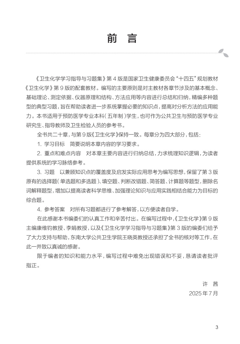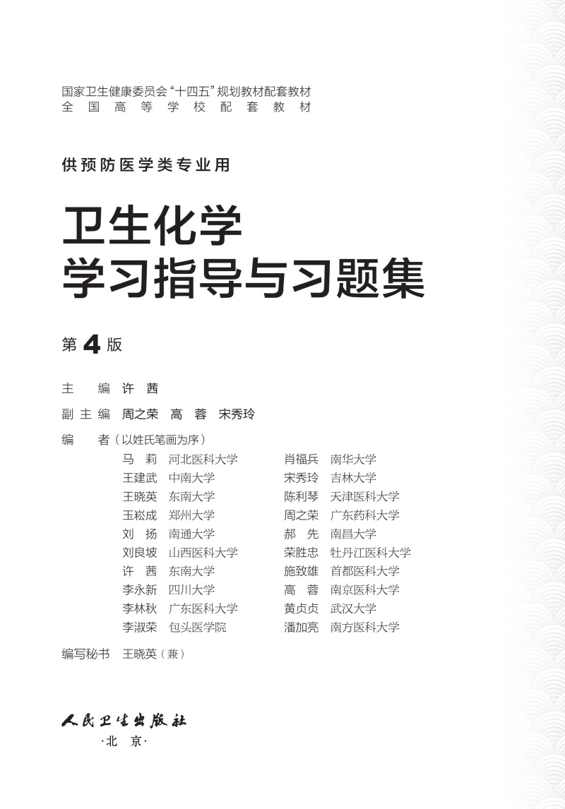 卫生化学学习指导与习题集 第4四版 十四五规划教材配套教材 全国高等学校配套教材 许茜 主编 供预防医学类专业用 人民卫生出版社