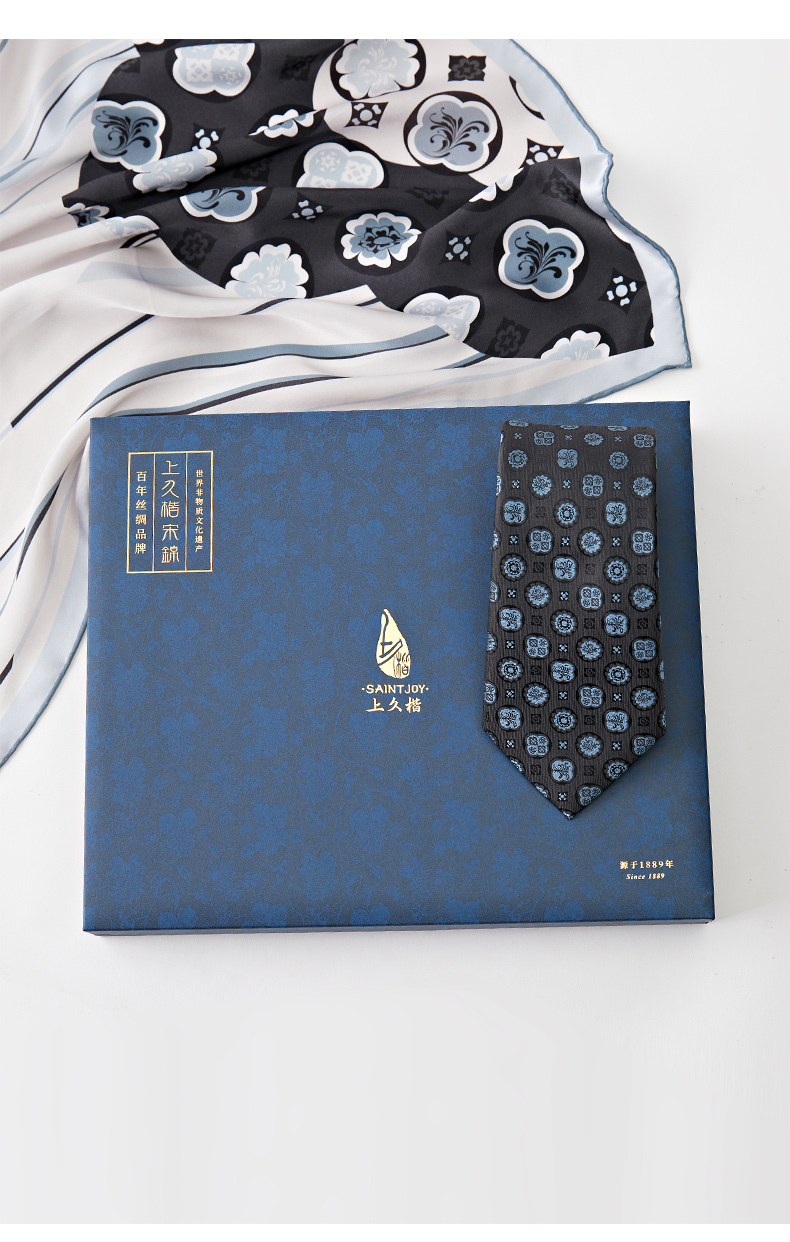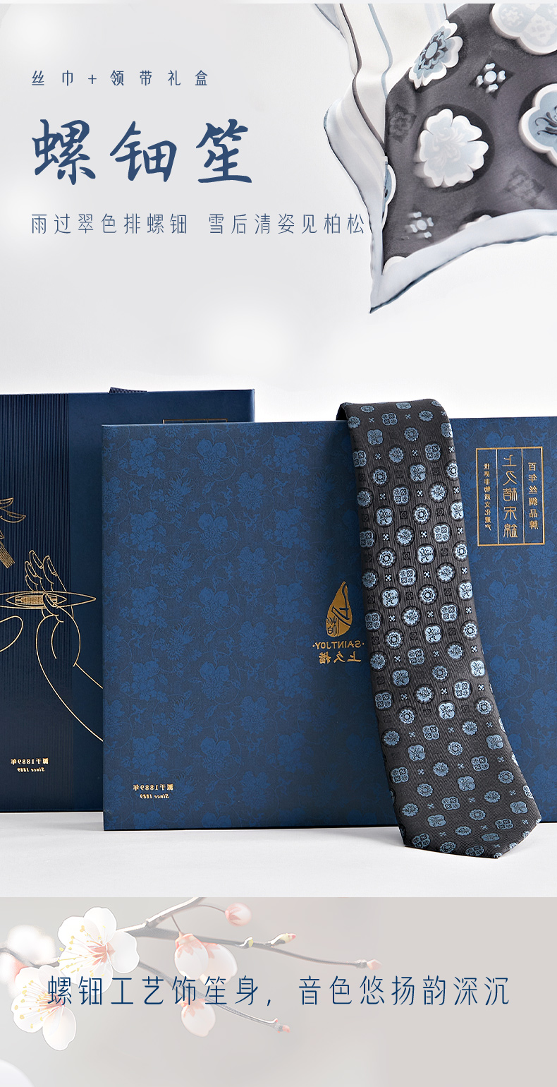 SAINTJOY/上久楷礼盒 螺钿笙 真丝方巾 FJS23054 真丝领带PZS23A01