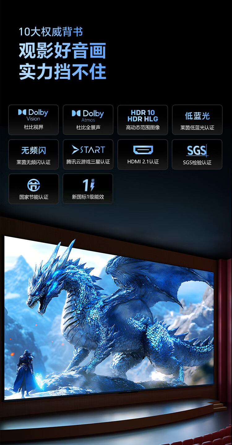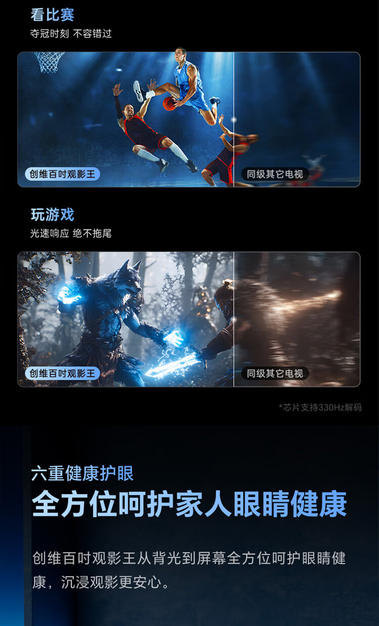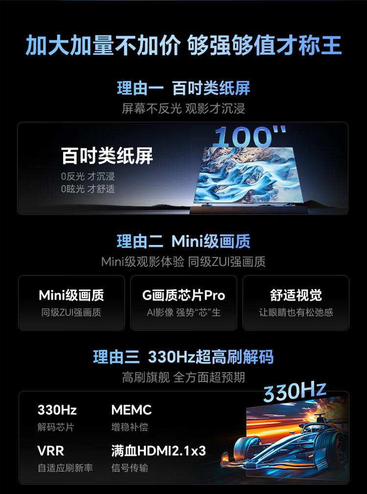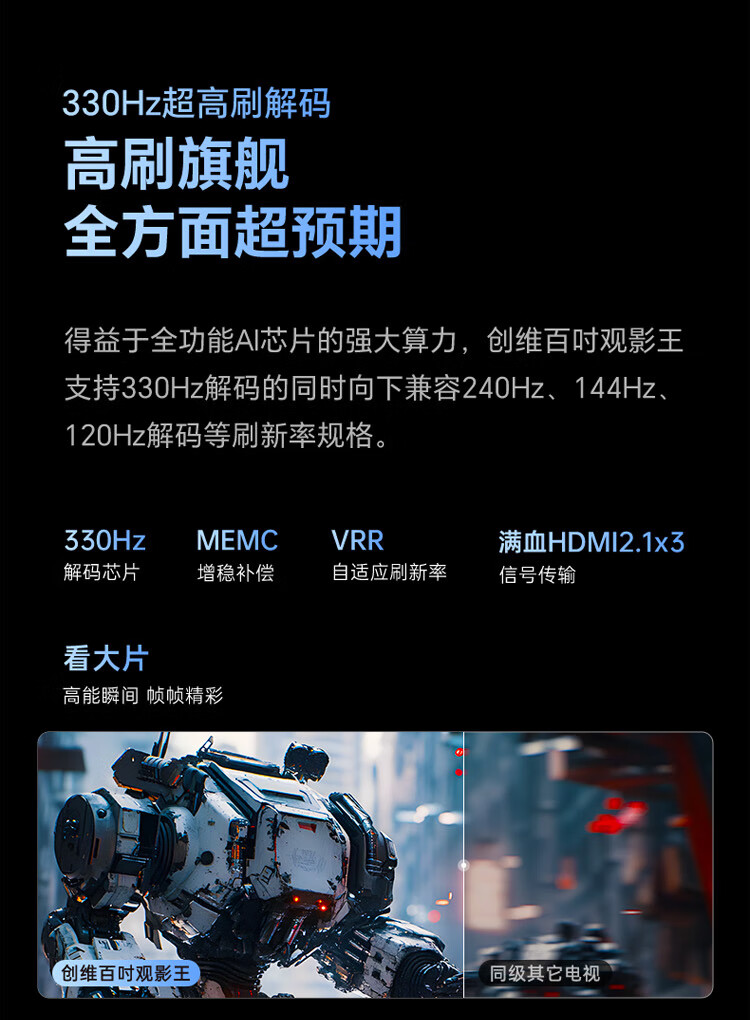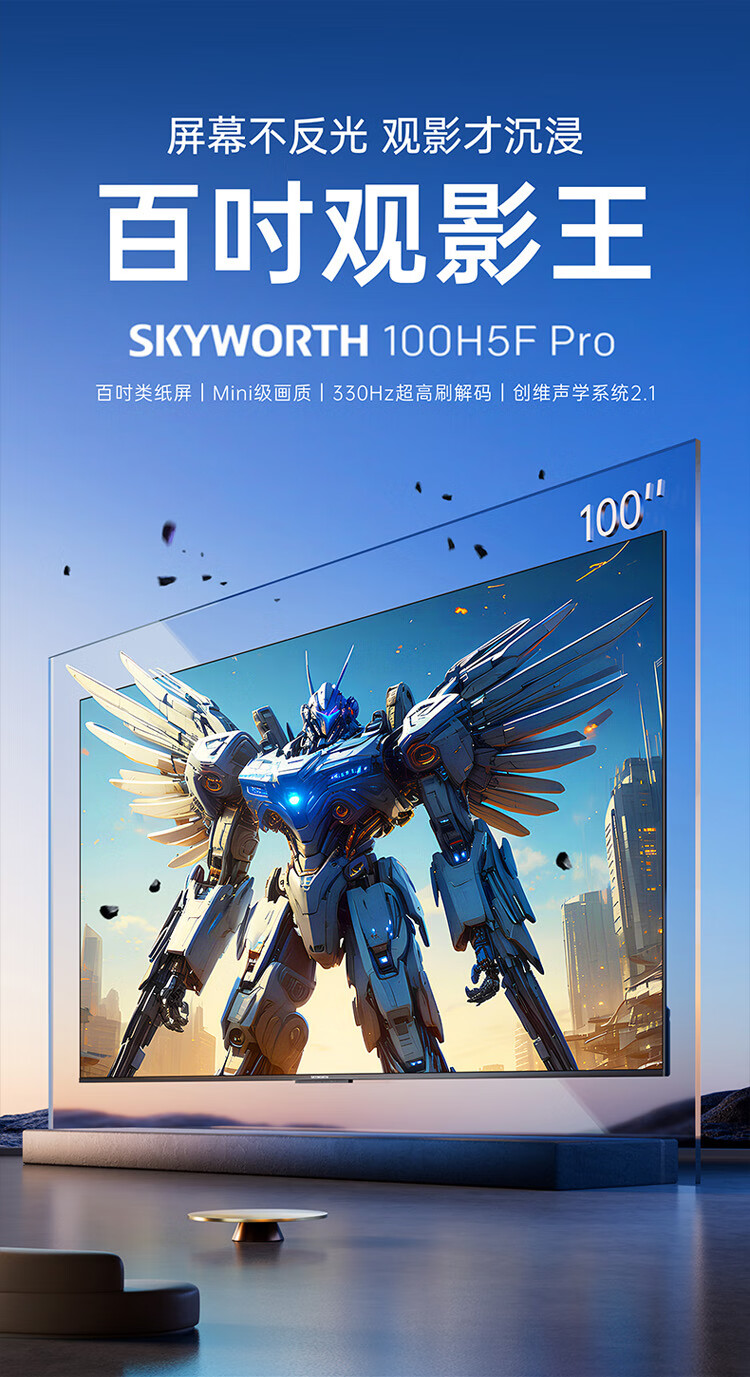 创维百吋观影王100H5F Pro 百吋类纸屏 Mini级画质 330Hz超高刷解码 4+64G 创维声学系统2.1 100英寸
