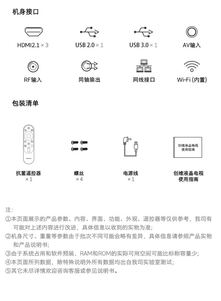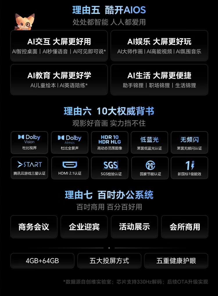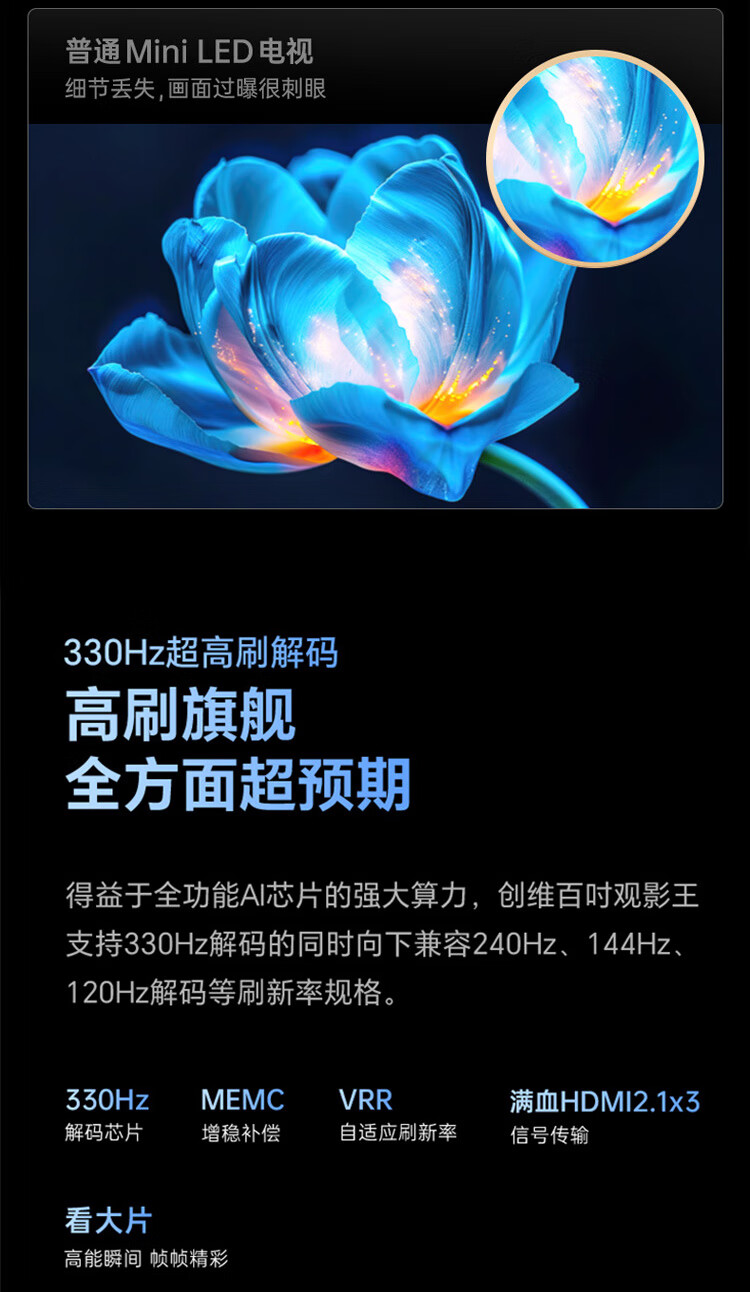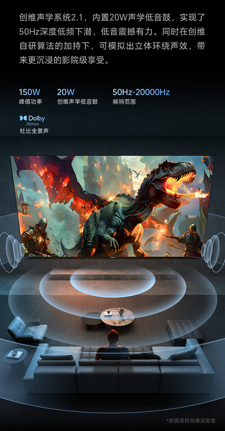 创维百吋观影王100H5F Pro 百吋类纸屏 Mini级画质 330Hz超高刷解码 4+64G 创维声学系统2.1 100英寸