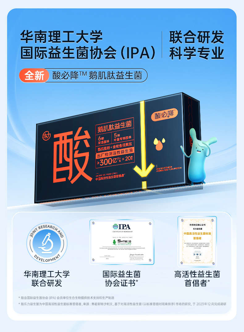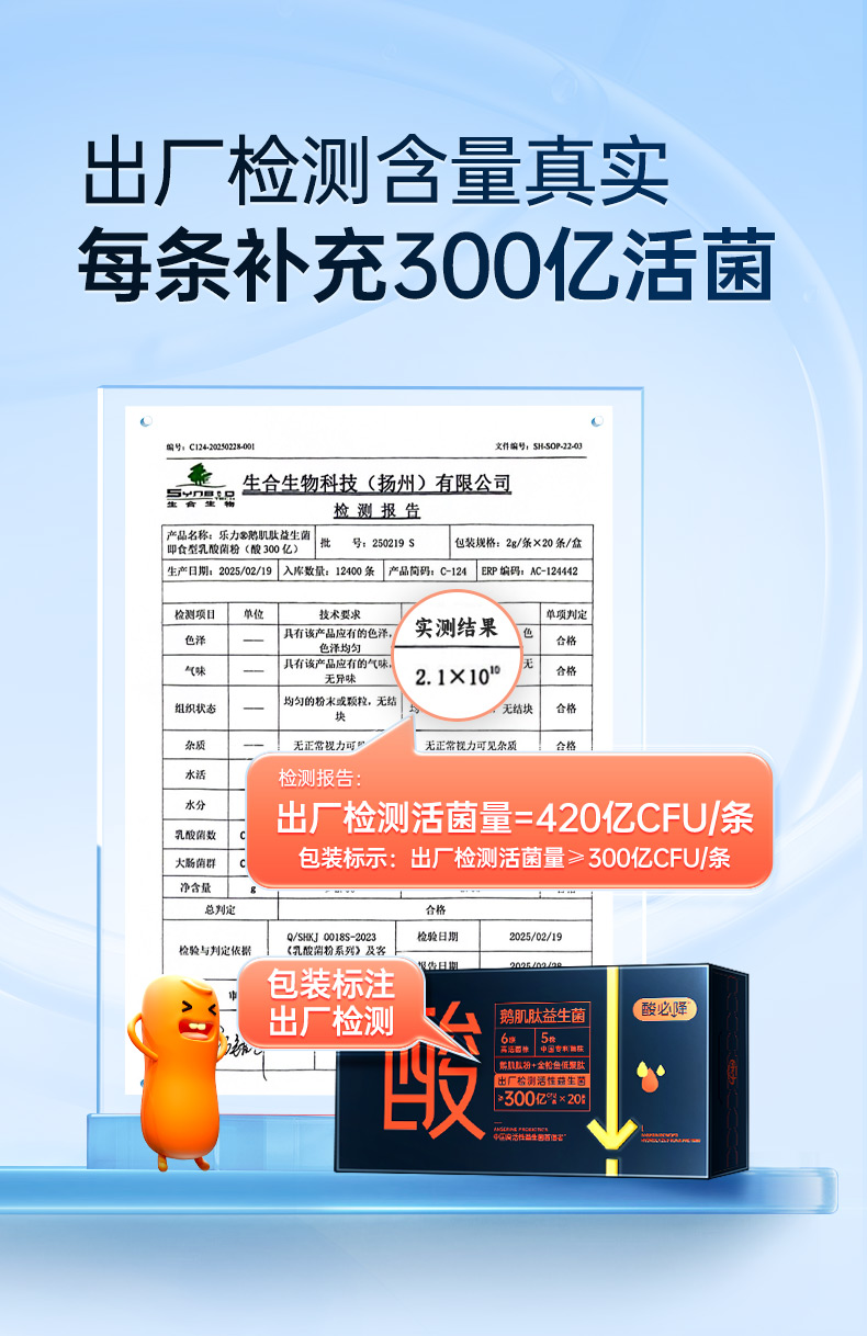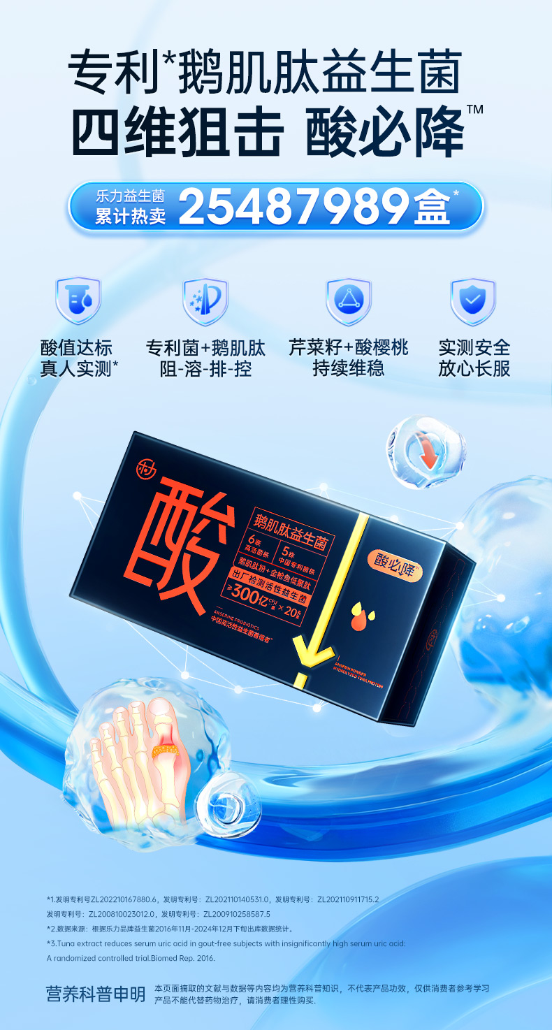 乐力鹅肌肽益生菌300亿活性菌酸必降肠胃调理20条