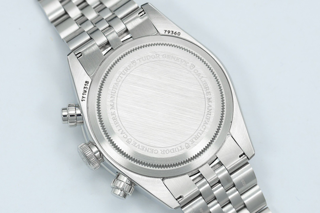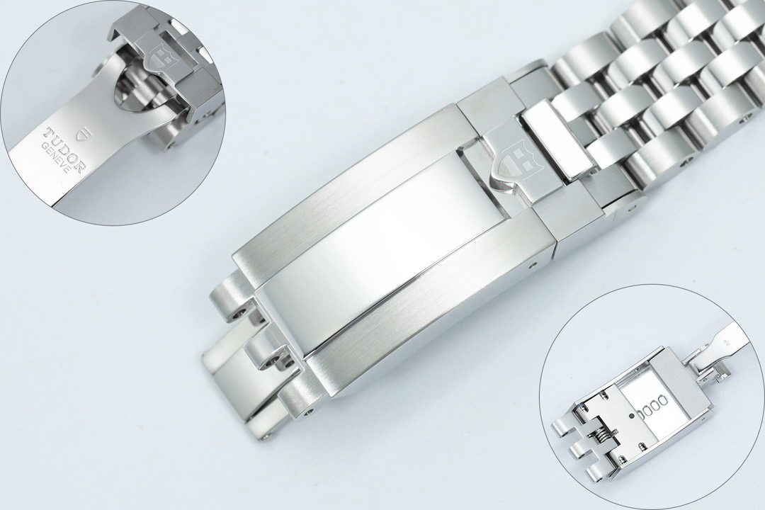 【表带】316L精钢五链节设计,精致细腻,舒适度高配备了帝舵独特的“T-fit”快速调节系统,无需工具便可快速精细调校,实现5毫米微调范围,适配不同腕围。