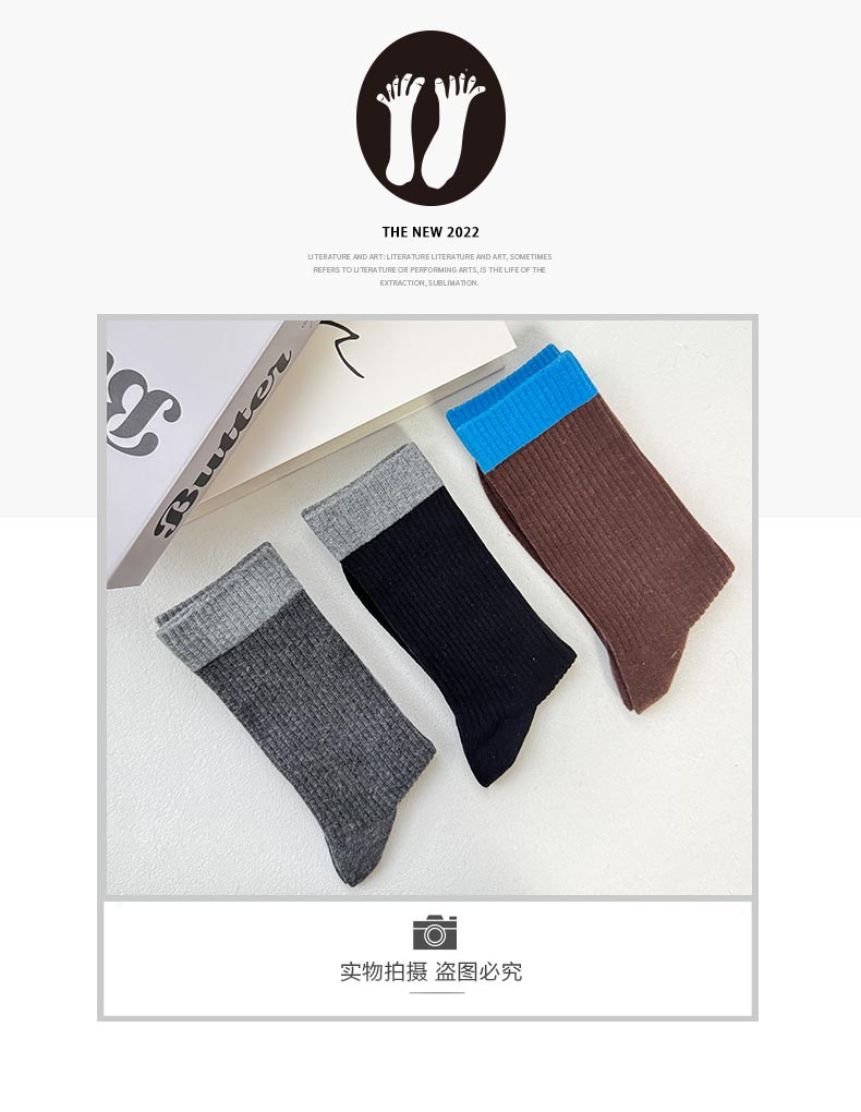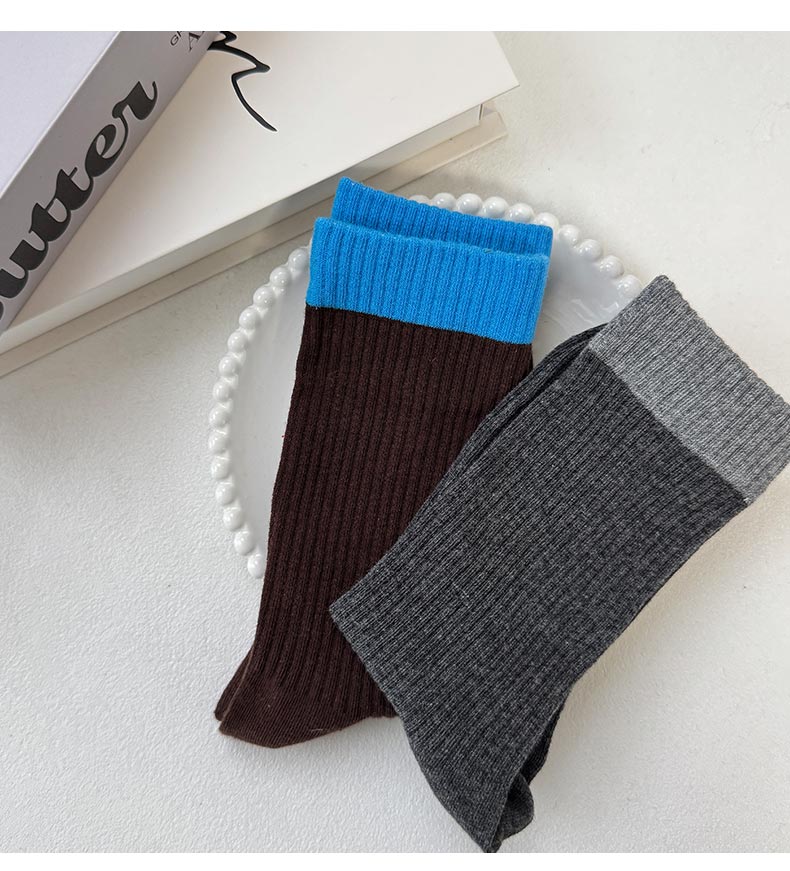简约韩系堆堆袜柔软撞色棉袜-纪念日百货门店同款167945217