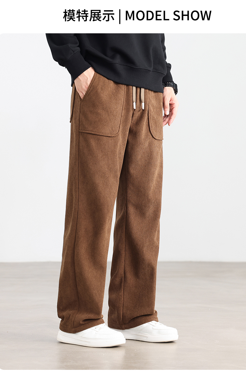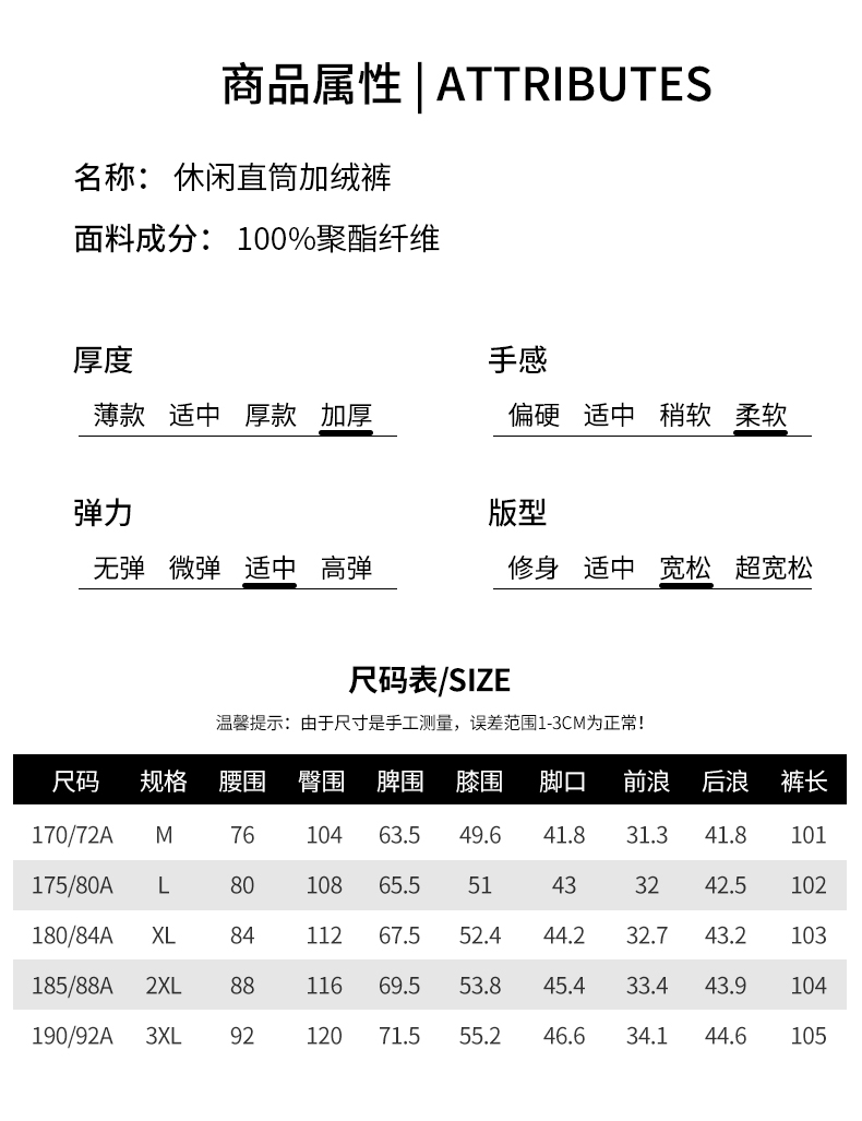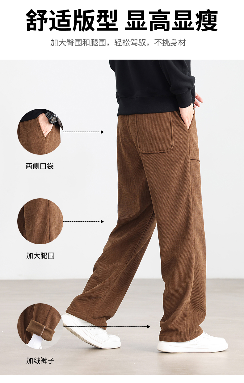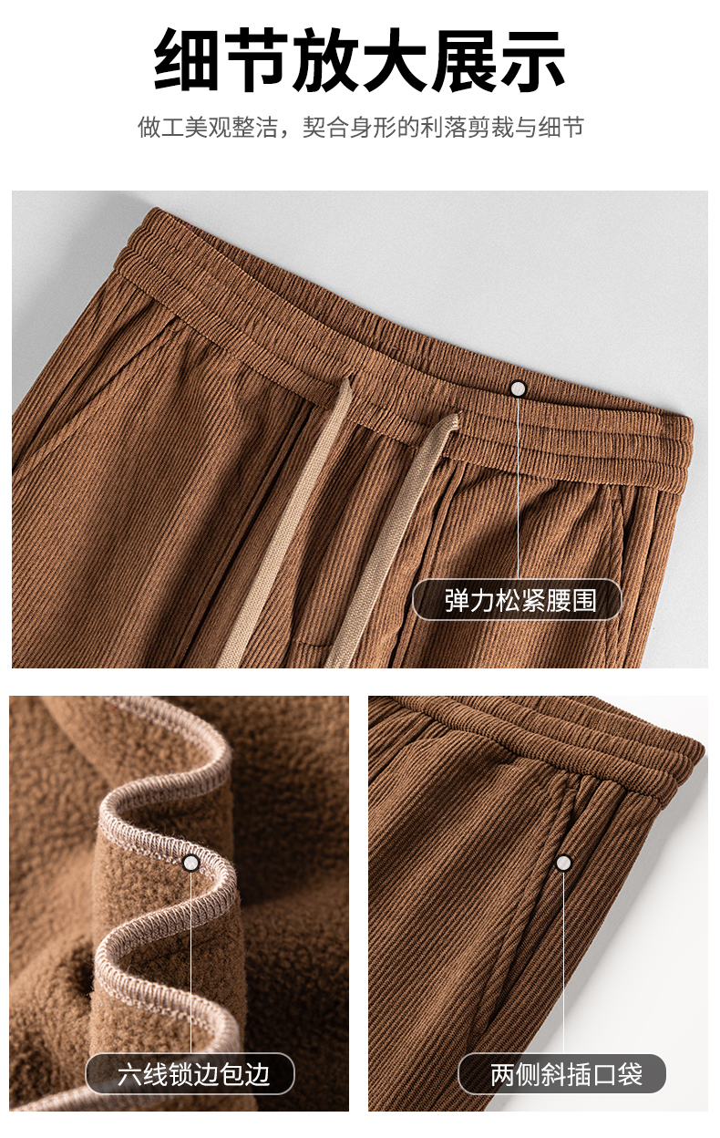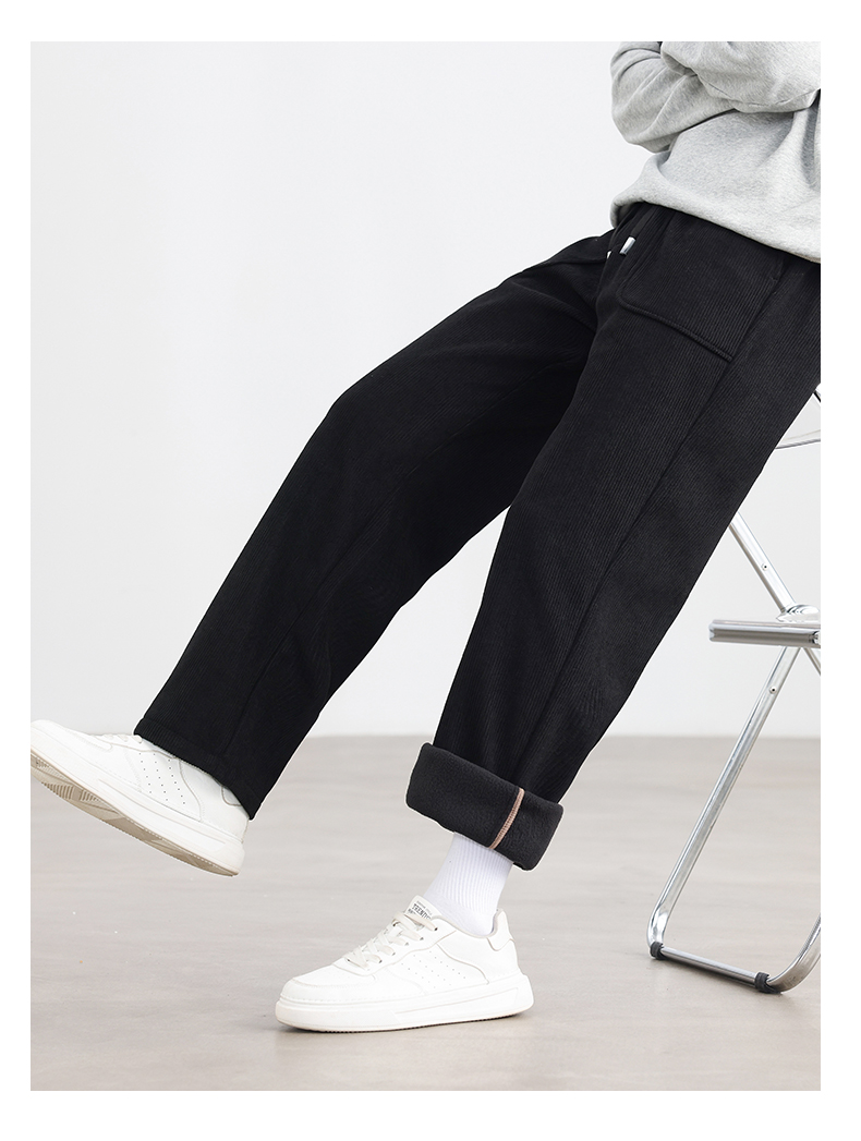 圣得西男士磨毛保暖加厚休闲裤冬季时尚修身直筒长裤男2042913030