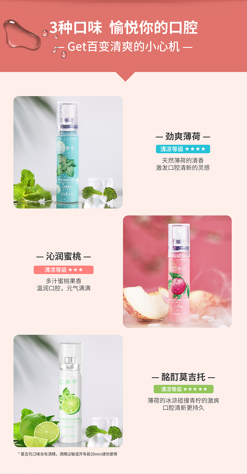 参半口气清新剂持久型口喷口腔喷雾20ml*3