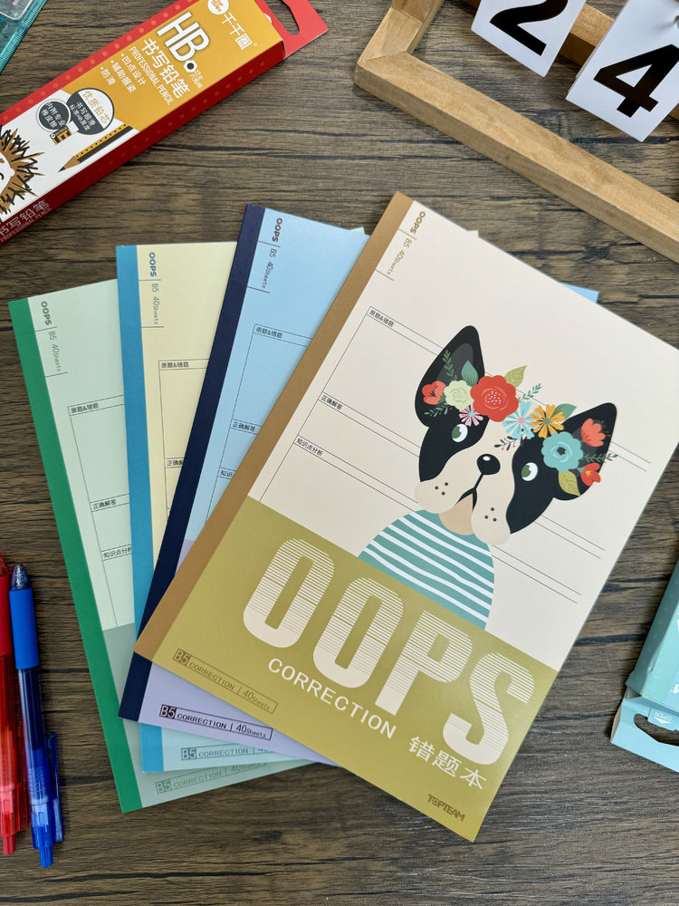 开学文具一站式备齐!【千千圈开学季文具系列 】学生笔记本+试卷夹+修正带+便签本+错题本等