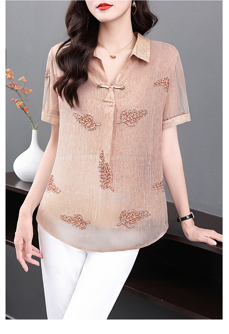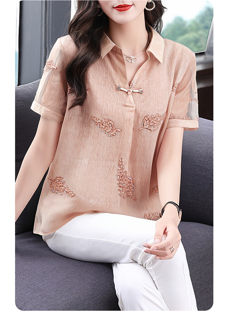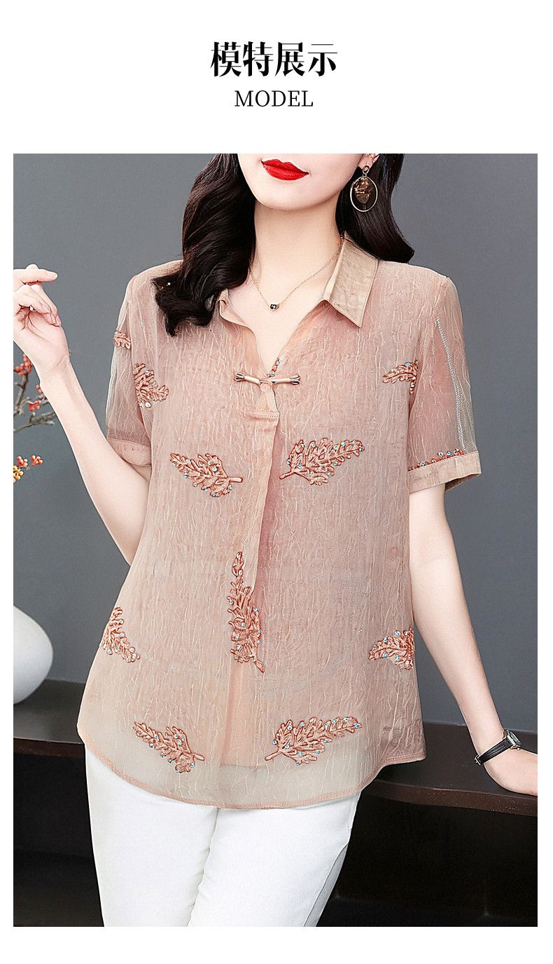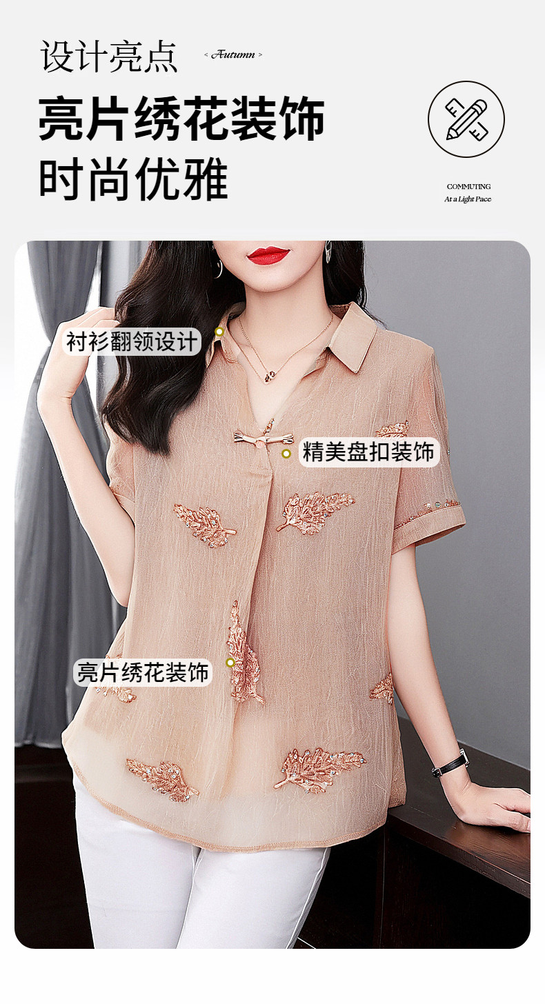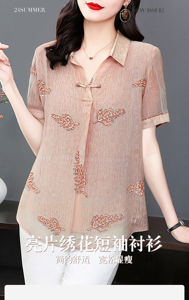 女士雪纺衫夏季大码女装减龄洋气小衫新款胖mm上衣妈妈短袖衬衫