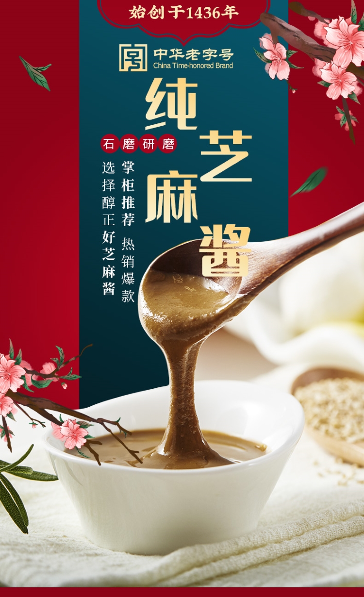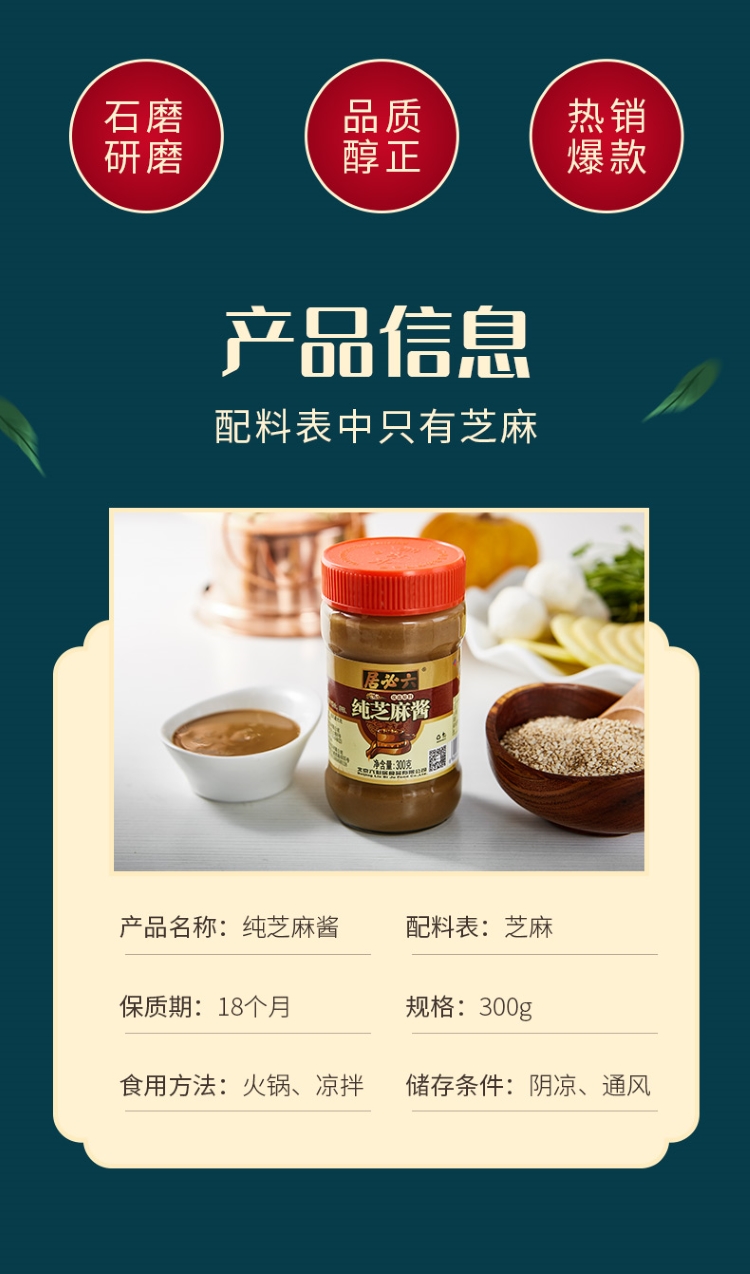 六必居 调味酱料 纯芝麻酱 凉拌面热干面酱火锅蘸料 300g 中华老字号