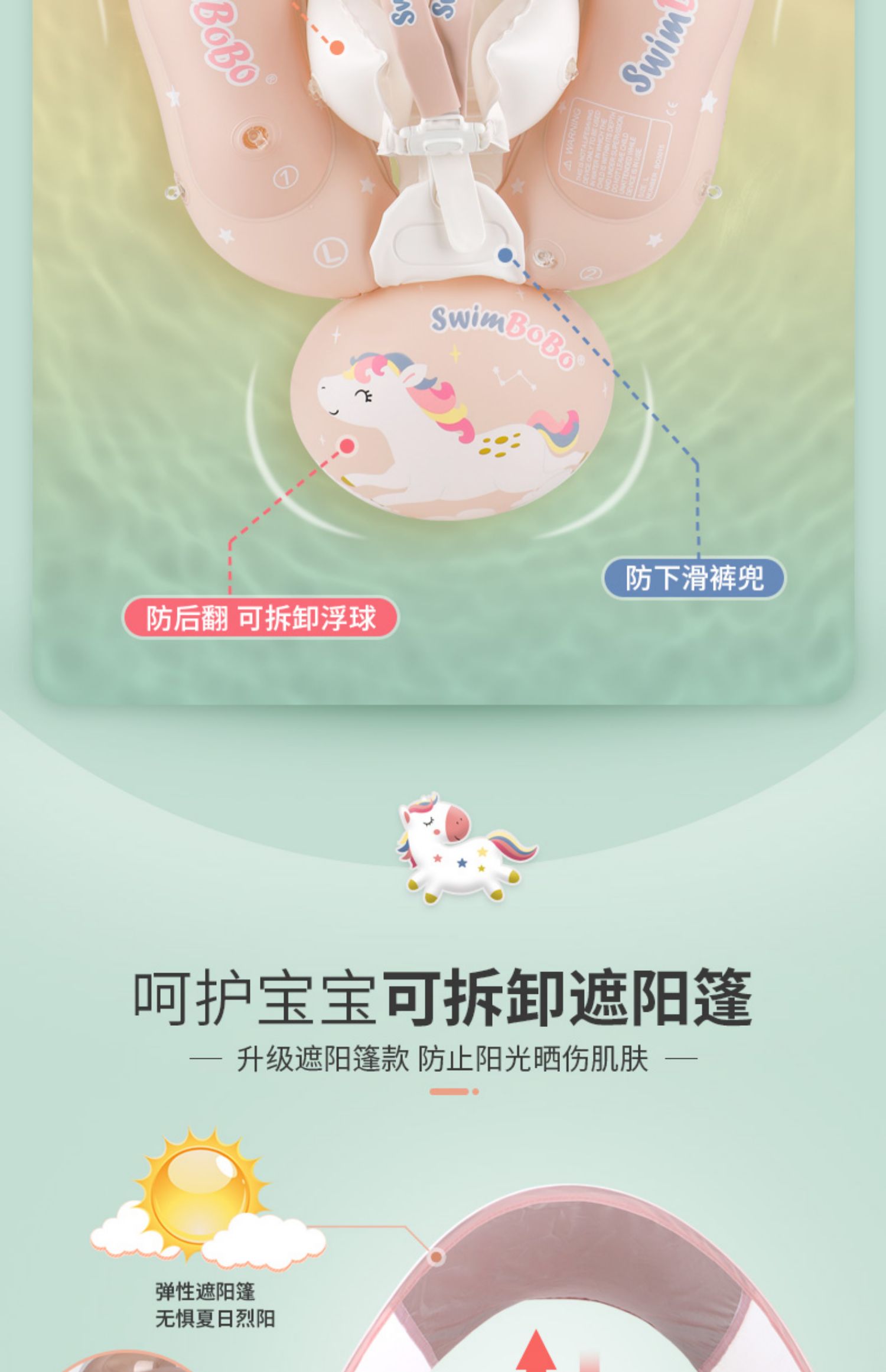 Swimbobo儿童泳圈集合!婴儿游泳圈 可拆卸遮阳篷 无惧烈日伤皮肤 激发宝宝游泳兴趣