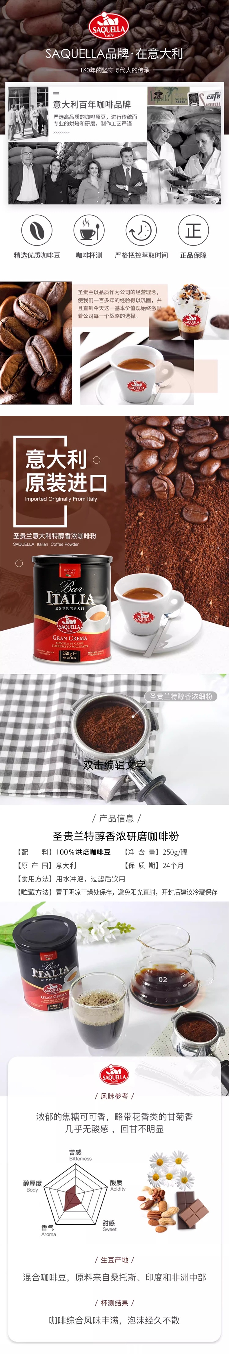 意大利进口圣贵兰金罐丨特醇香浓丨意式浓缩研磨咖啡粉250g