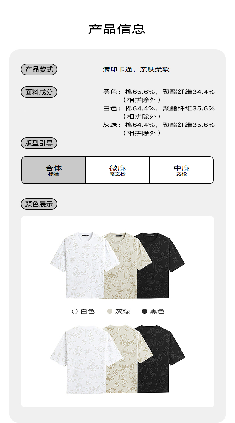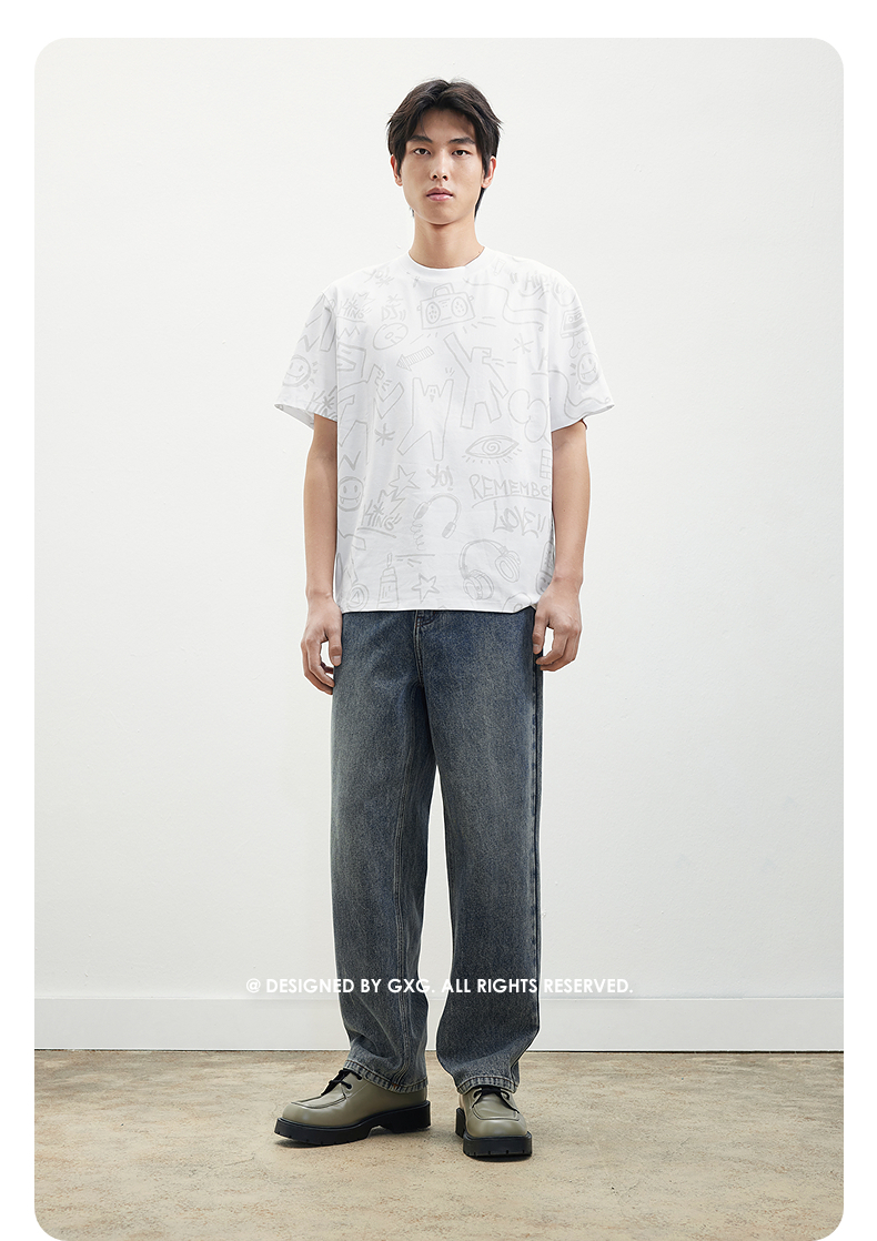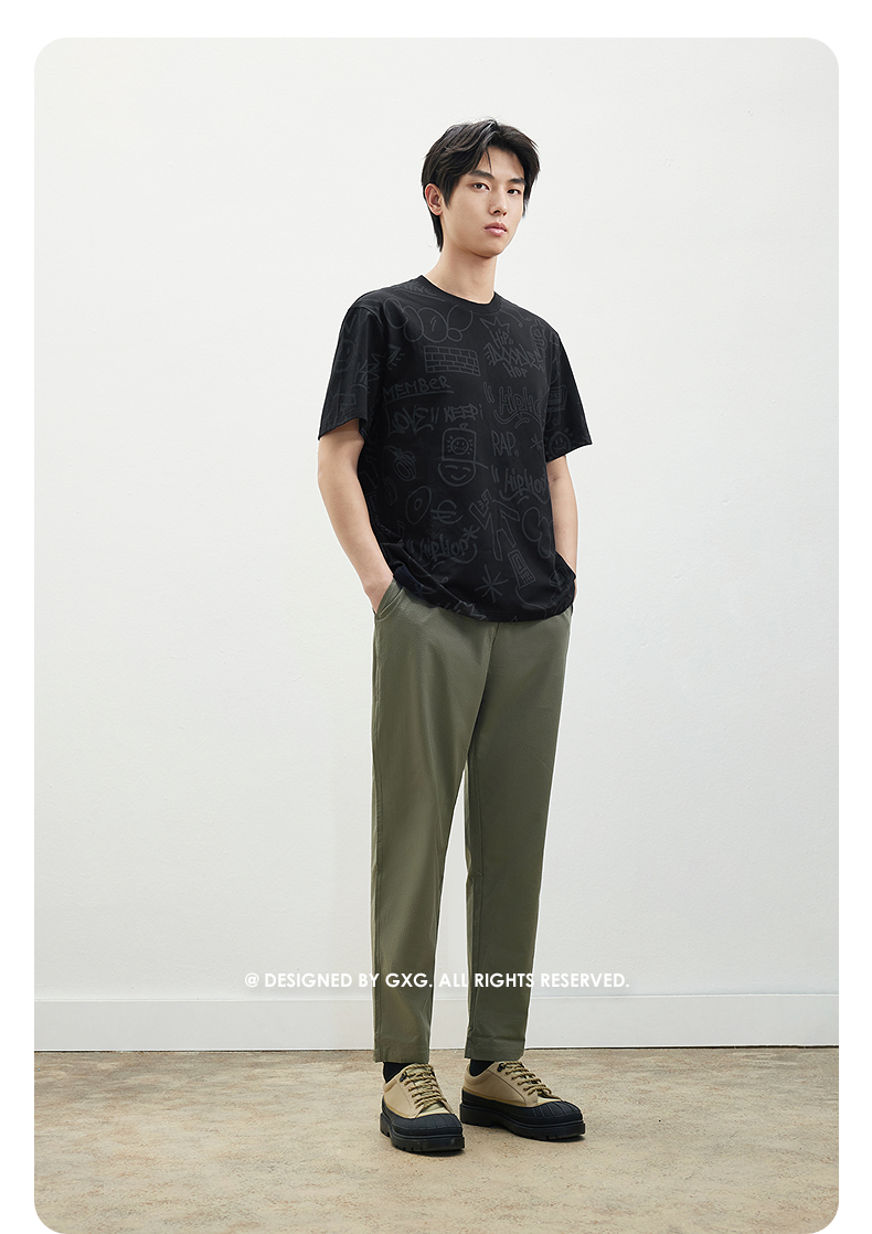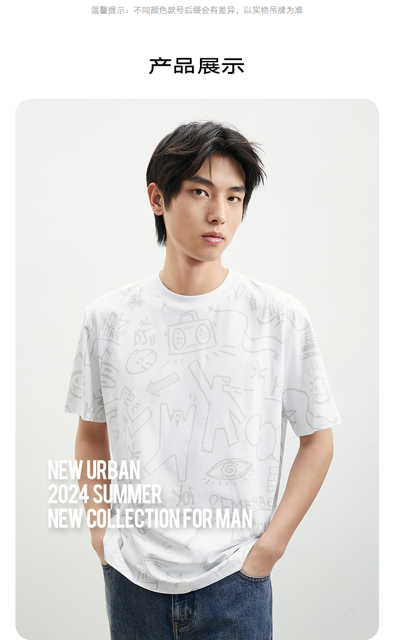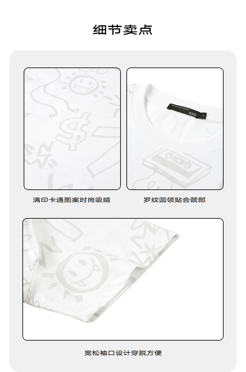 GXG男装 三色满身潮流印花短袖T恤2024夏季热卖#G24D442486