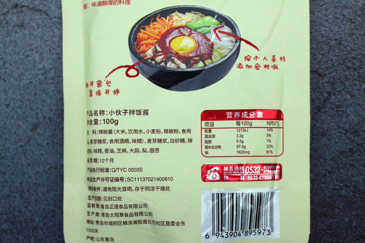 小伙子韩式拌饭酱100g 韩国料理石锅拌饭 袋装辣酱甜辣酱