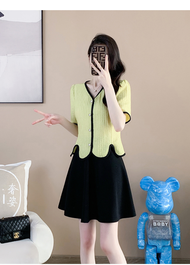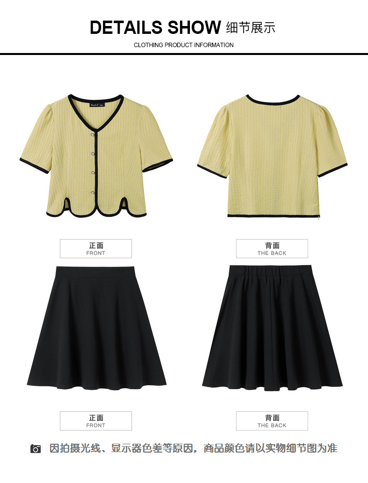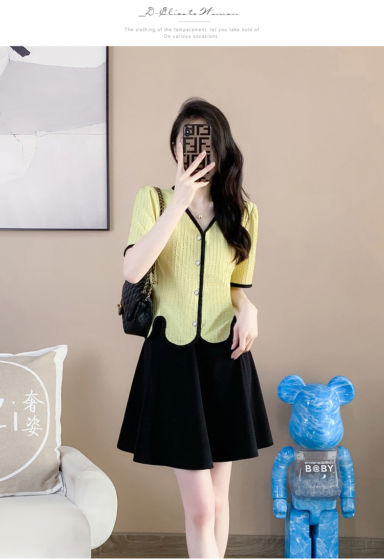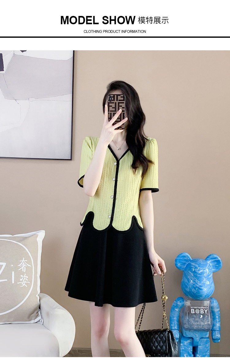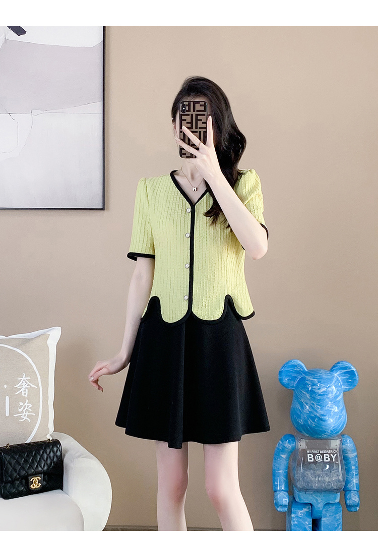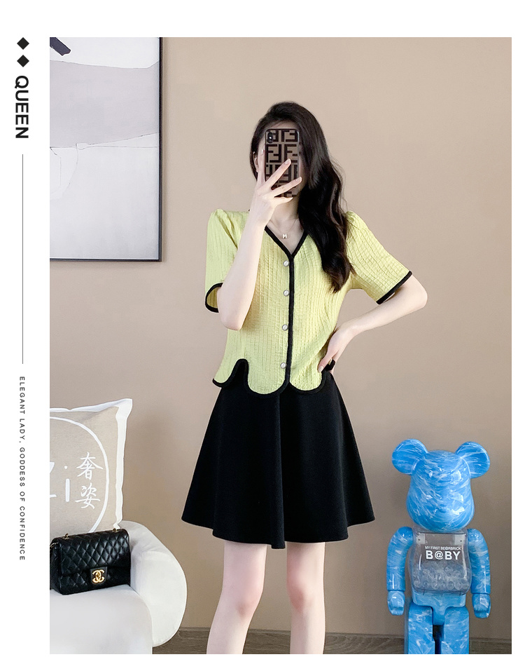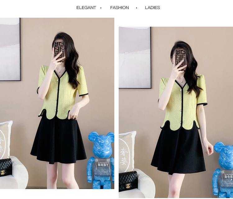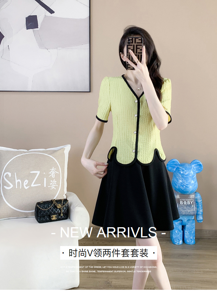 奢姿2025年夏季新款大码女装V领气质两件套胖妹妹甜美时尚套装9932966868