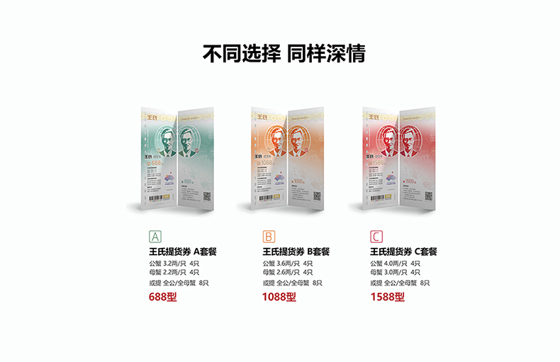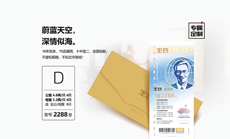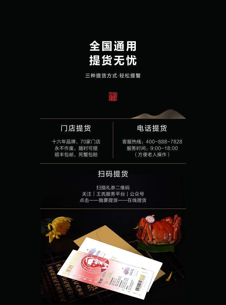 【礼券】王氏大闸蟹礼卡 4.6公3.2母中秋提货券螃蟹券8只装2688型