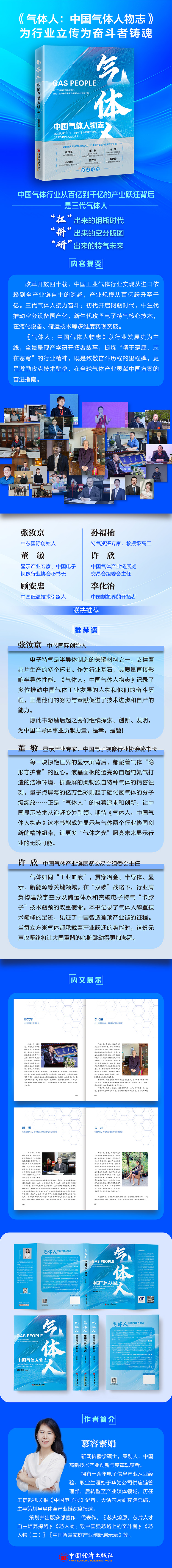 电子特气是半导体制造的关键材料之一,支撑着芯片生产的多个环节。作为行业基石,其质量直接影响半导体性能。《气体人:中国气体人物志》记录了多位推动中国气体工业发展的人物和他们的奋斗历程,正是他们的努力与奉献促进了技术进步和自产的能力。