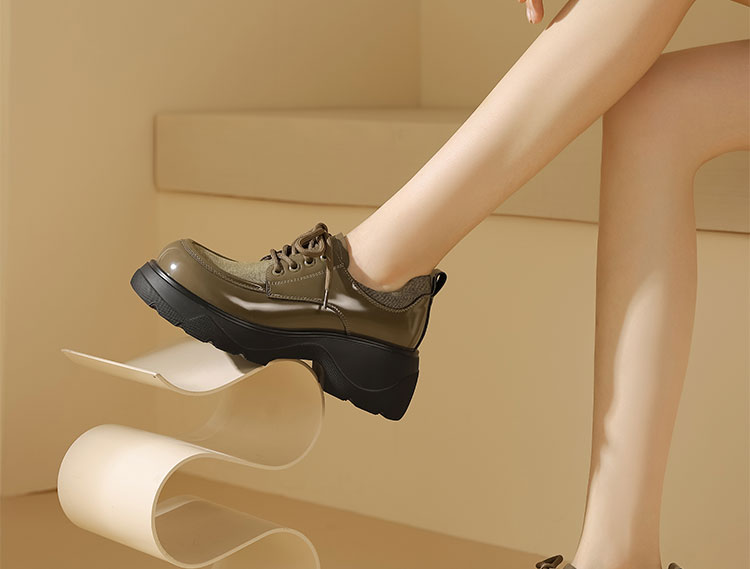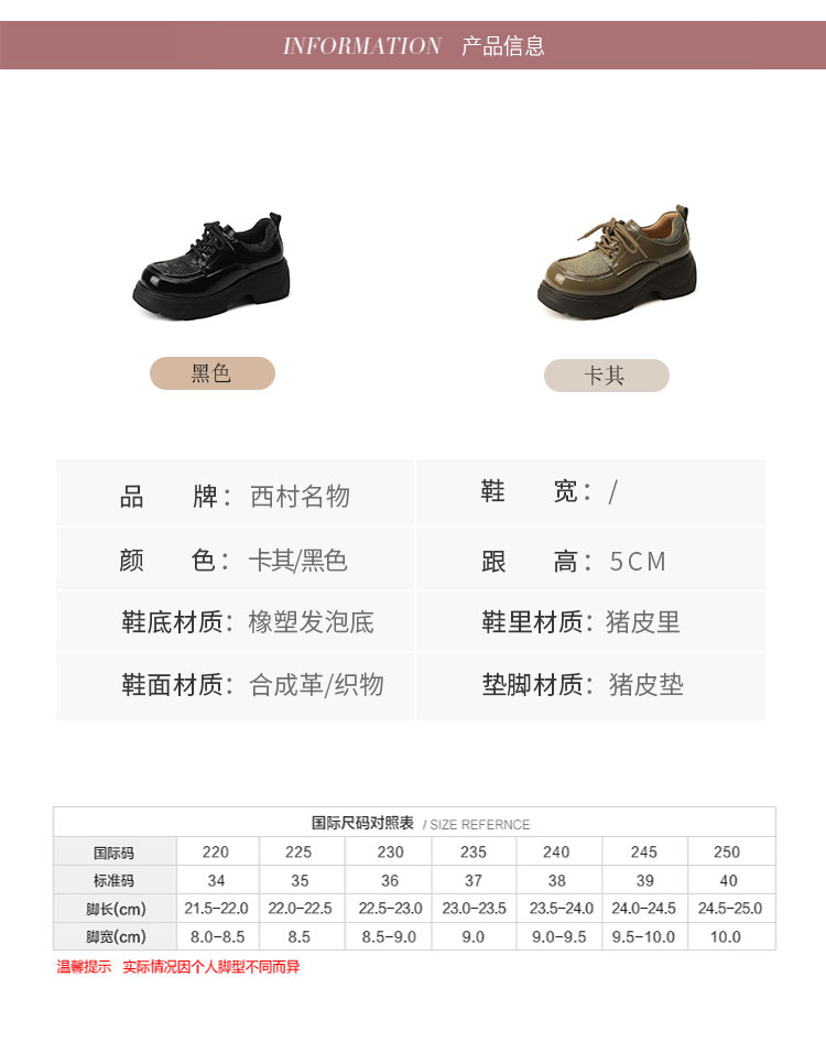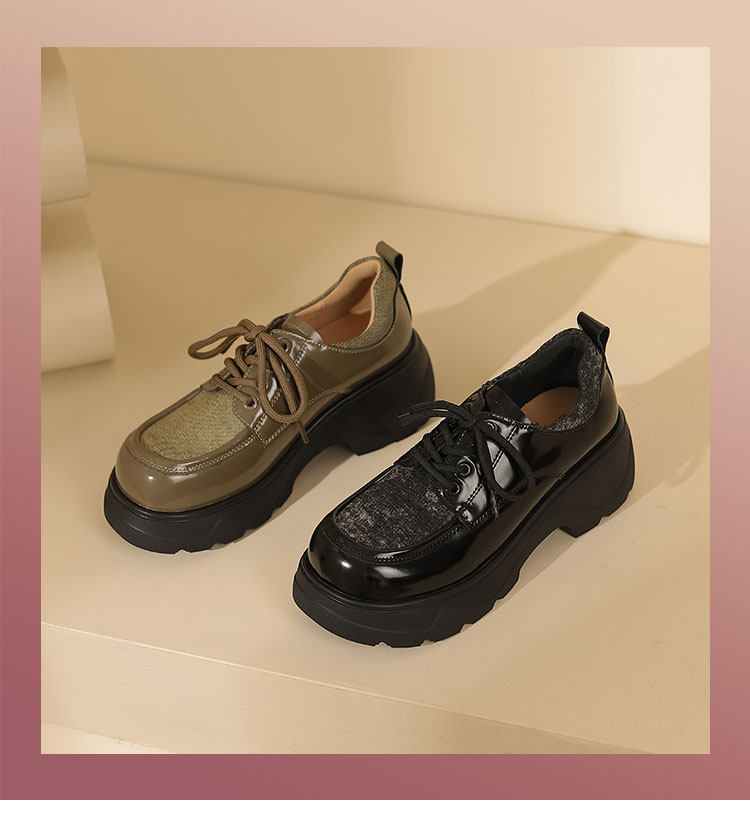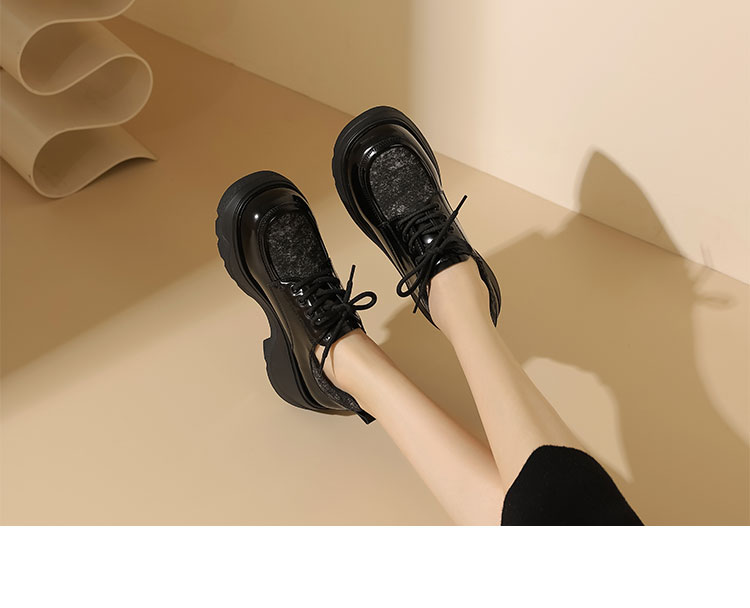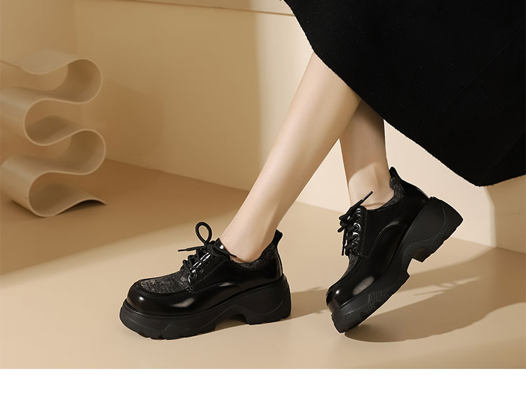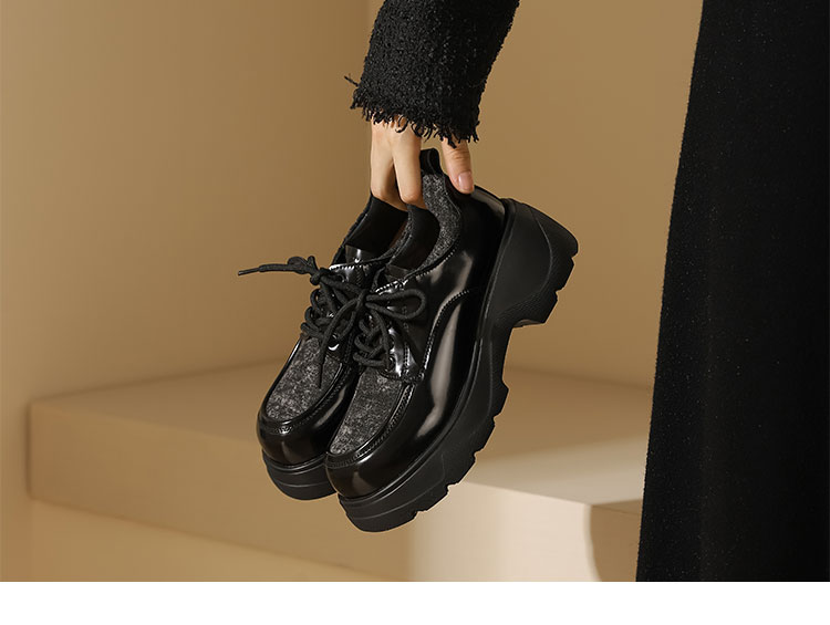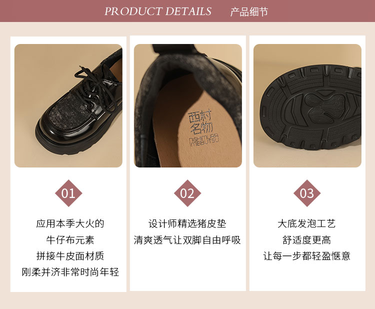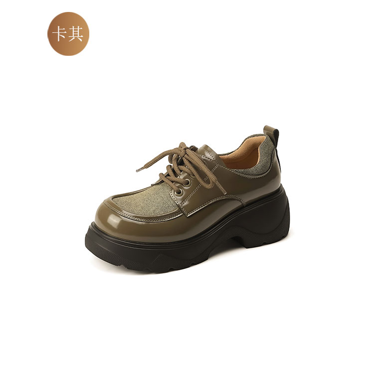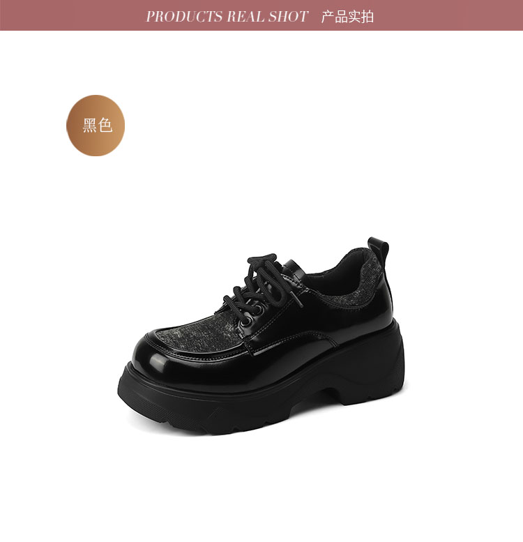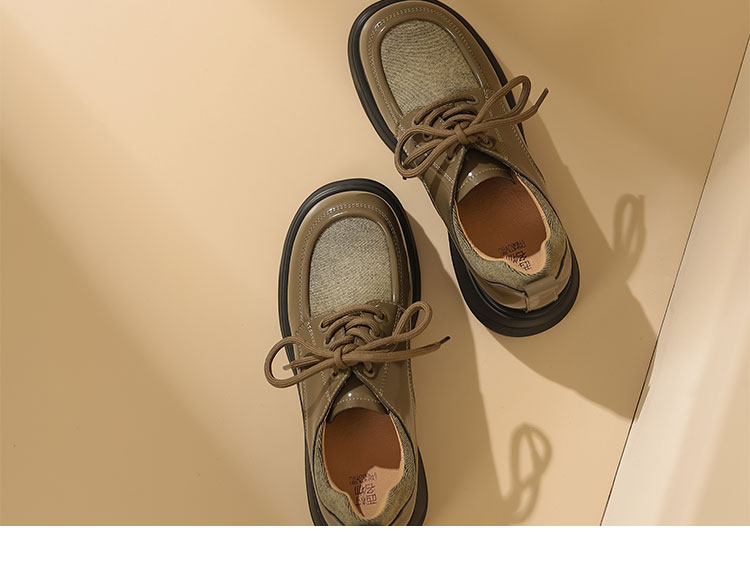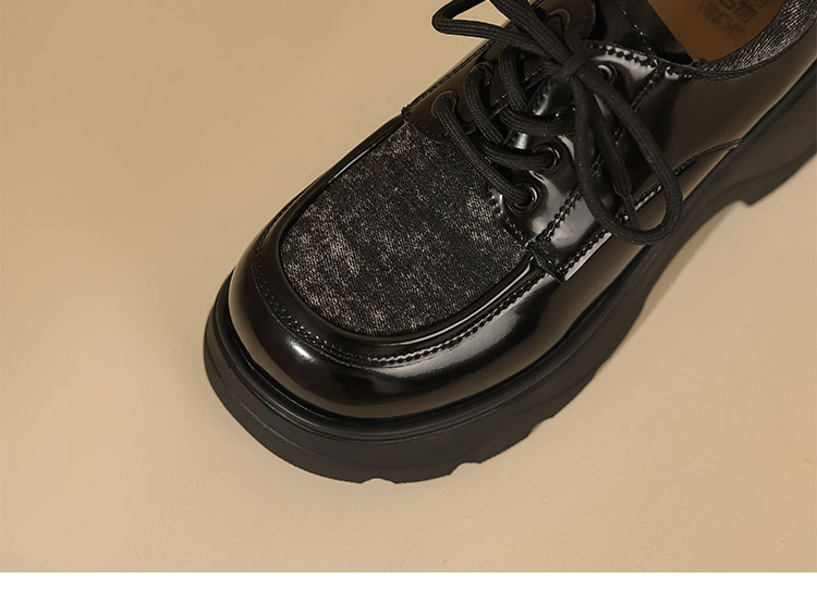 23年秋冬新款欧美风牛仔拼接系带乐福鞋超轻厚底JK制服鞋T23CM34401