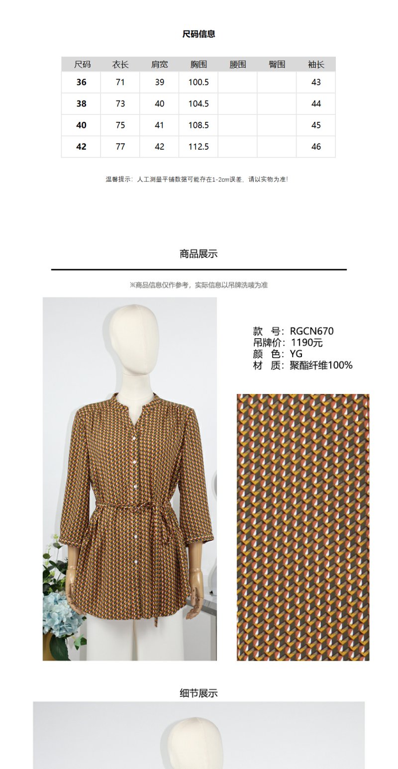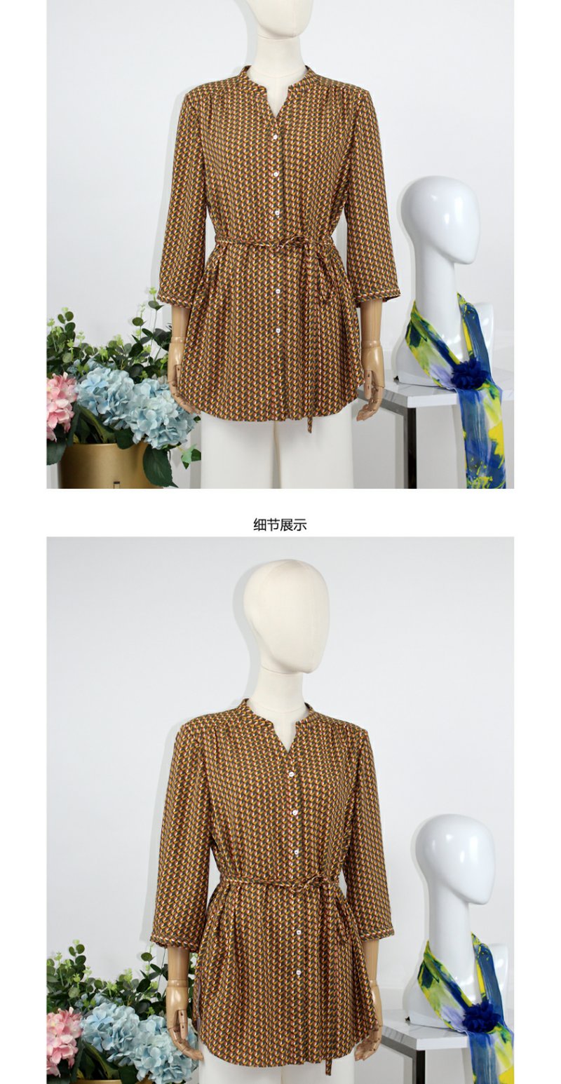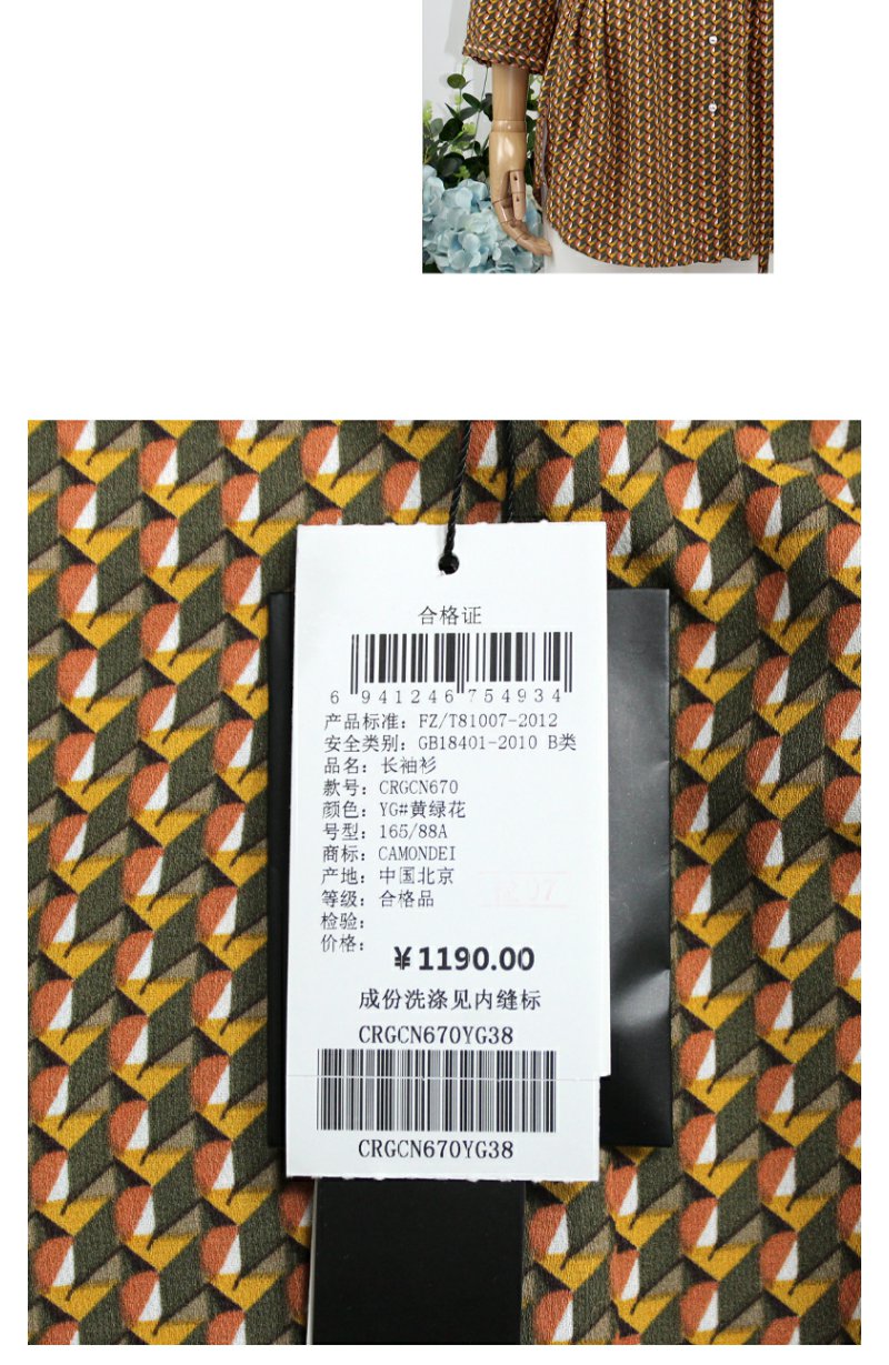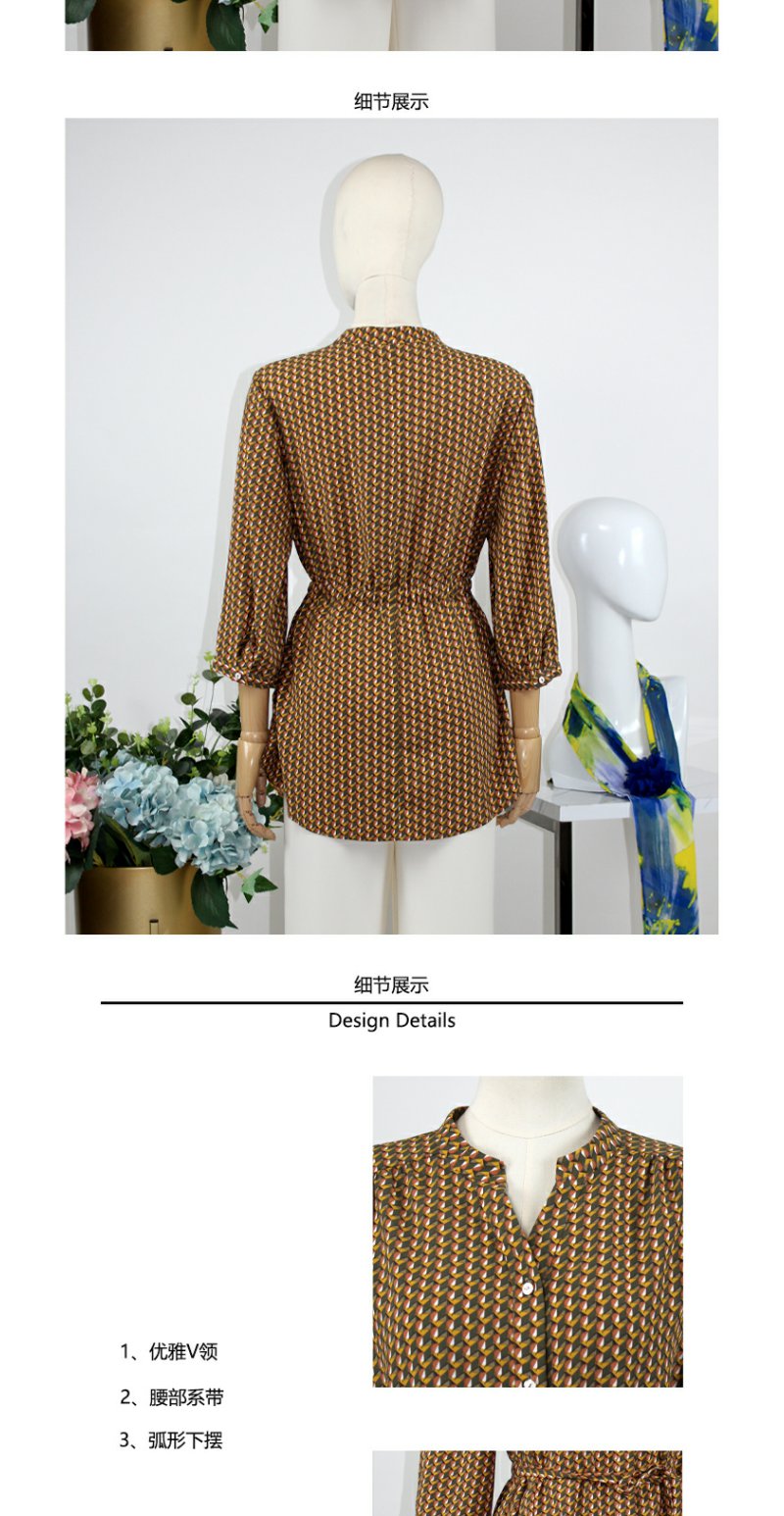 FOCALS福柯斯女装秋季新款圆领七分袖中长款印花衬衫FRGCN670YG