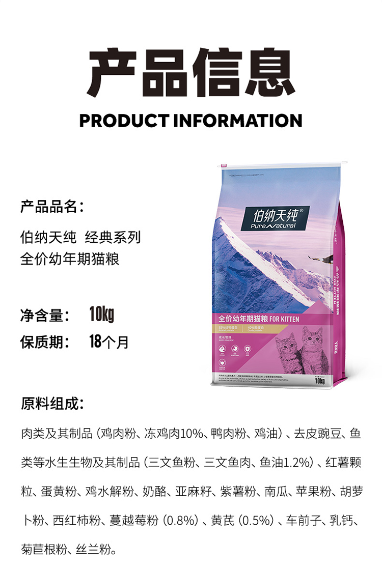 伯纳天纯无谷低敏幼猫粮10kg孕猫离乳期增糕粮猫粮