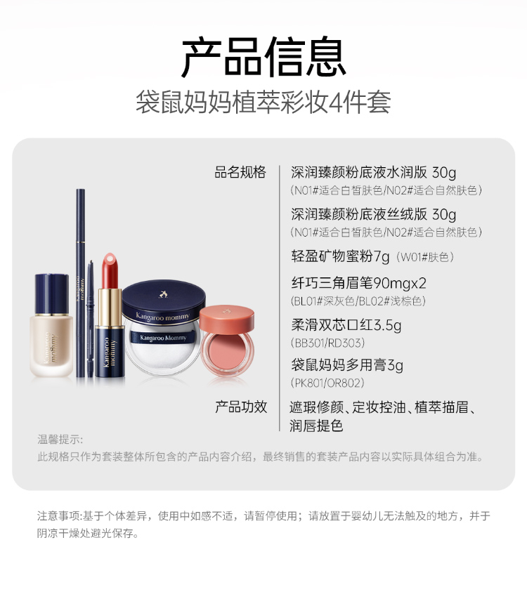 【彩妆4件套】养肤精华入妆 清透无暇肌准孕期专研彩妆 植萃彩妆4件套