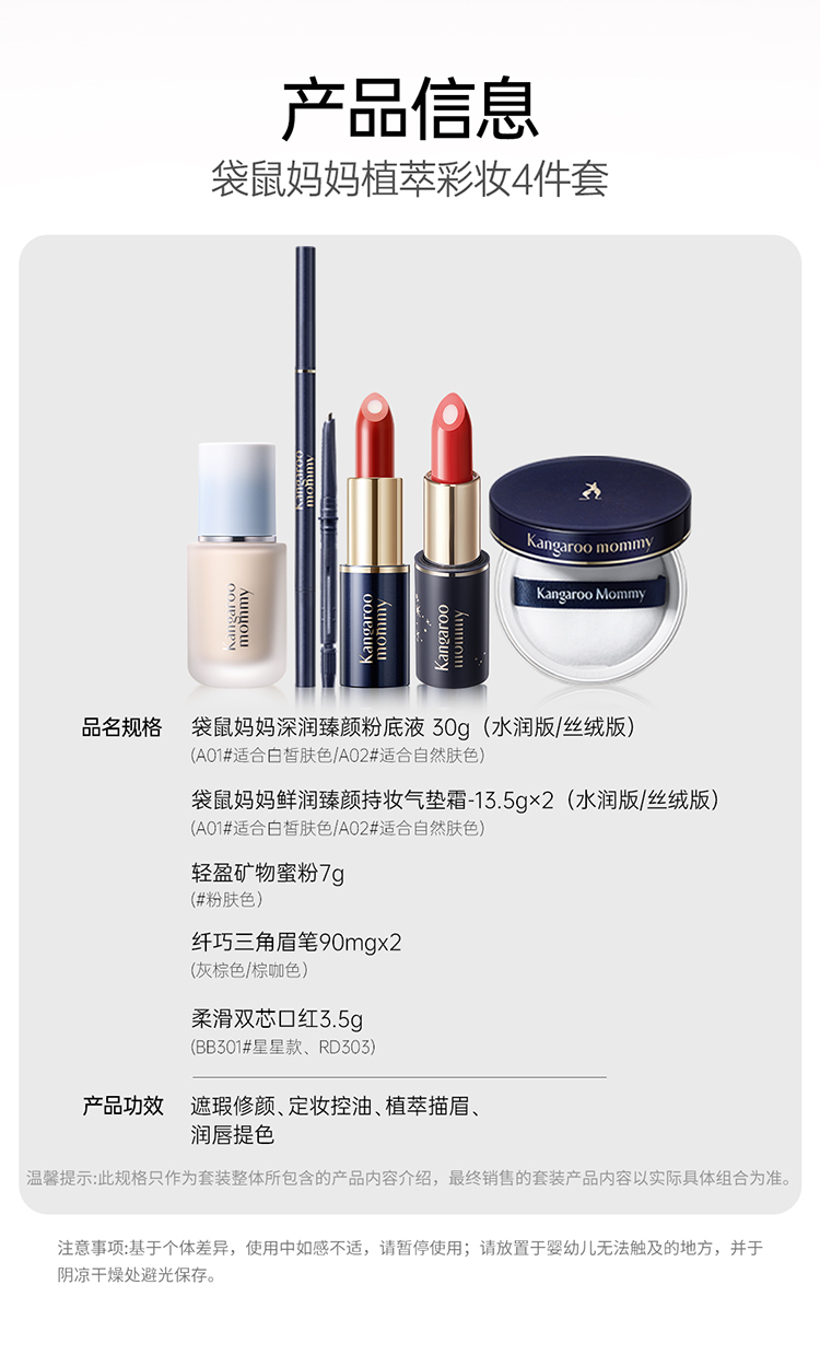 【彩妆4件套】养肤精华入妆 清透无暇肌 植萃彩妆4件套