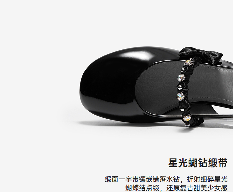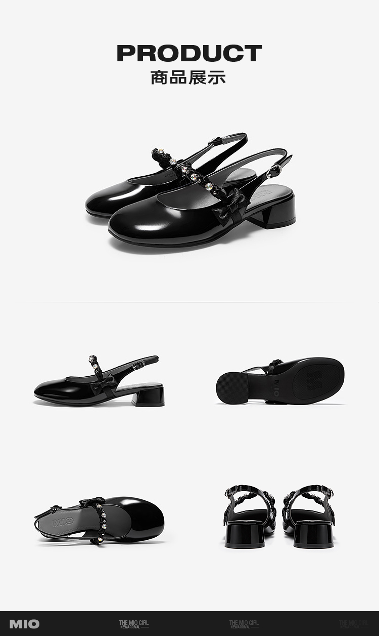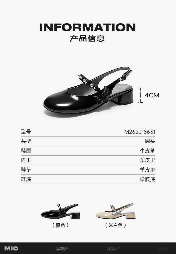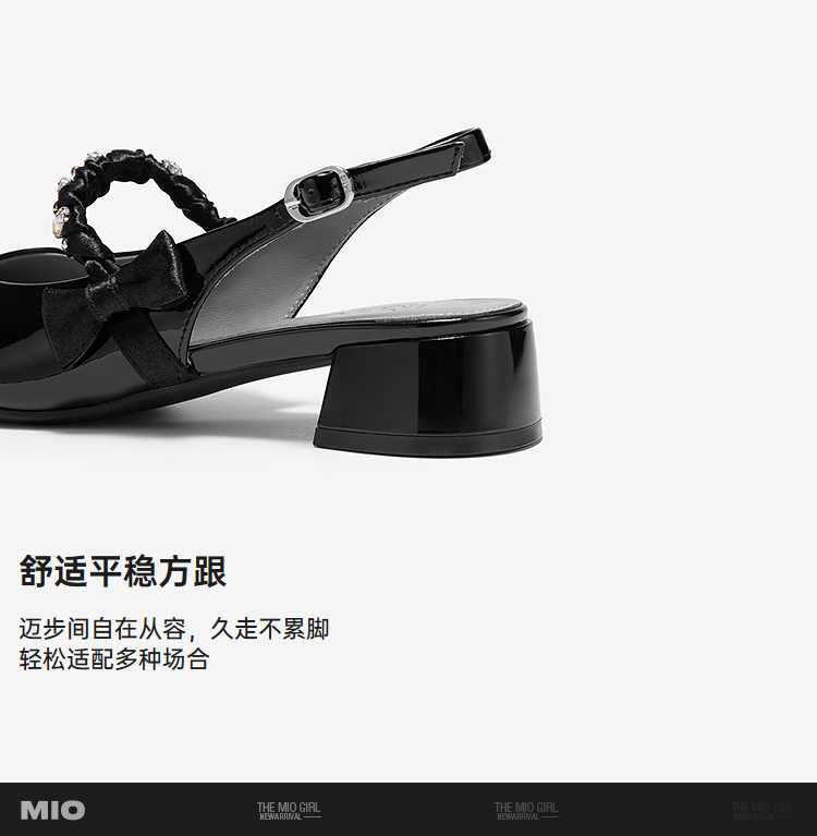 【上新】MIO米奥时装凉鞋女2026夏季新款蝴蝶结水钻纽带圆头后空中跟单鞋M262218631