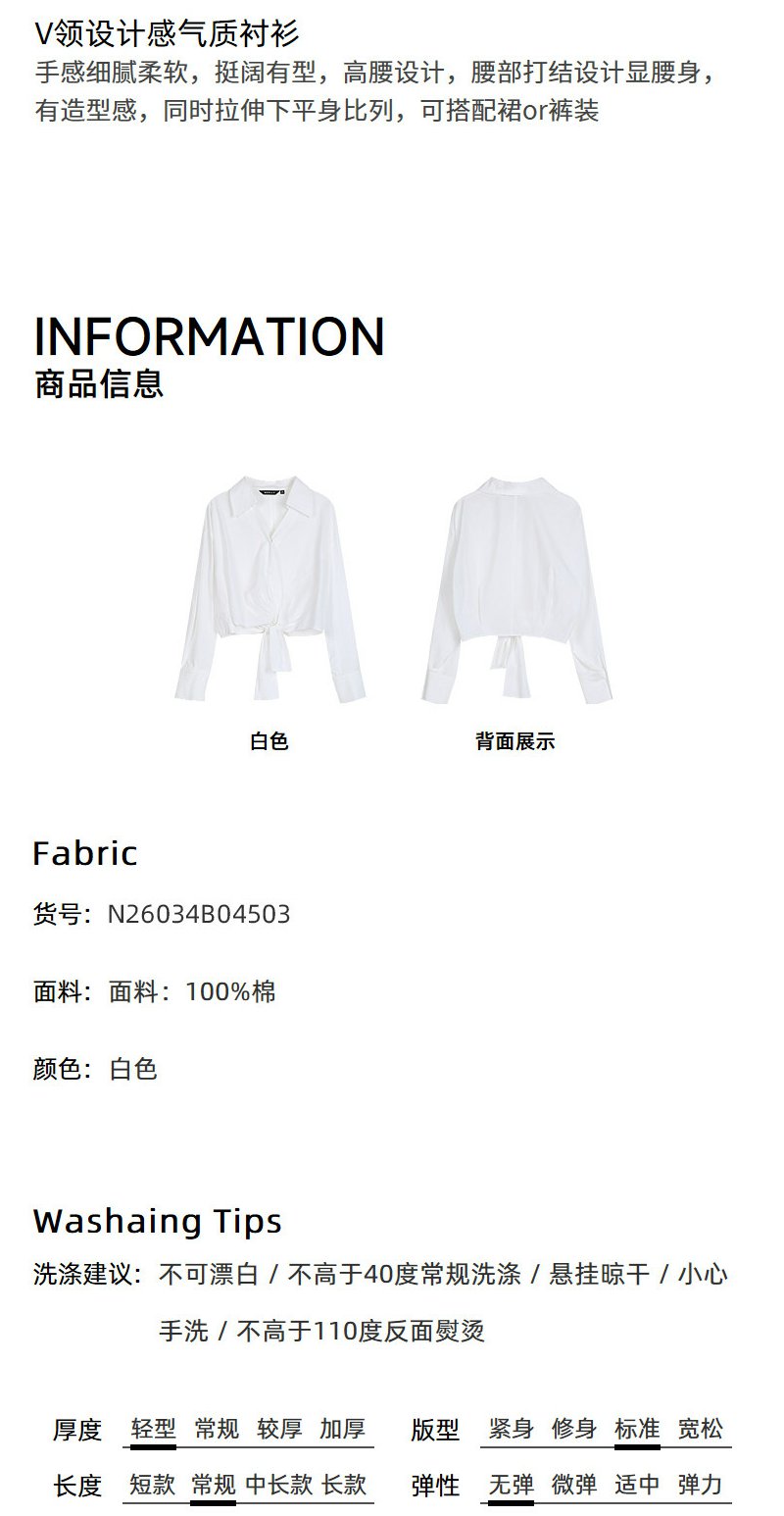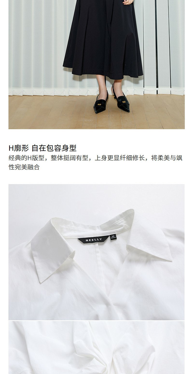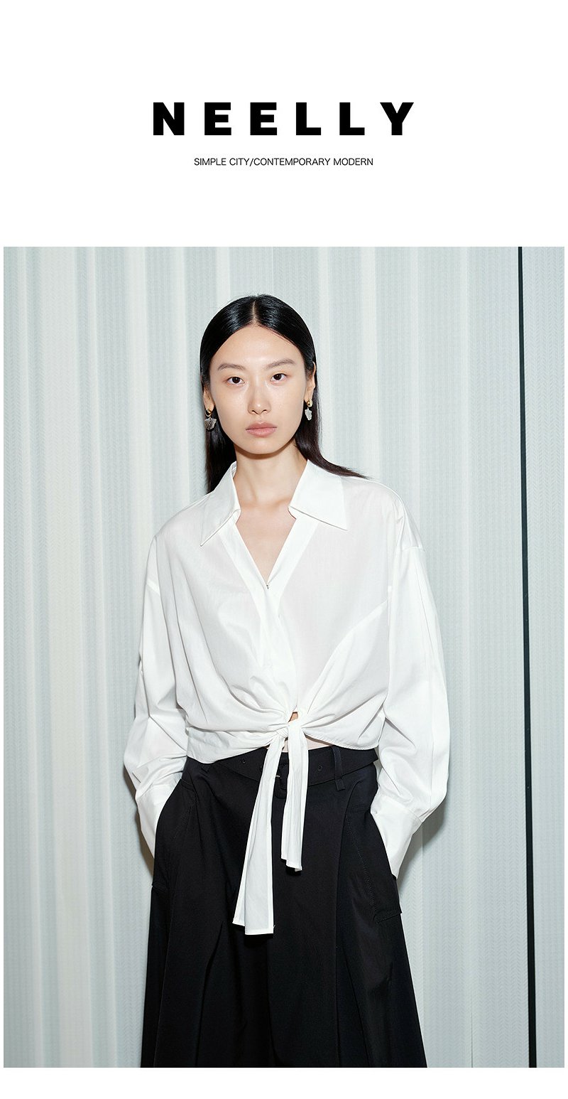 NEELLY纳俪商场同款春新款V领设计感气质长袖衬衫女收腰显瘦上衣N26034B04503