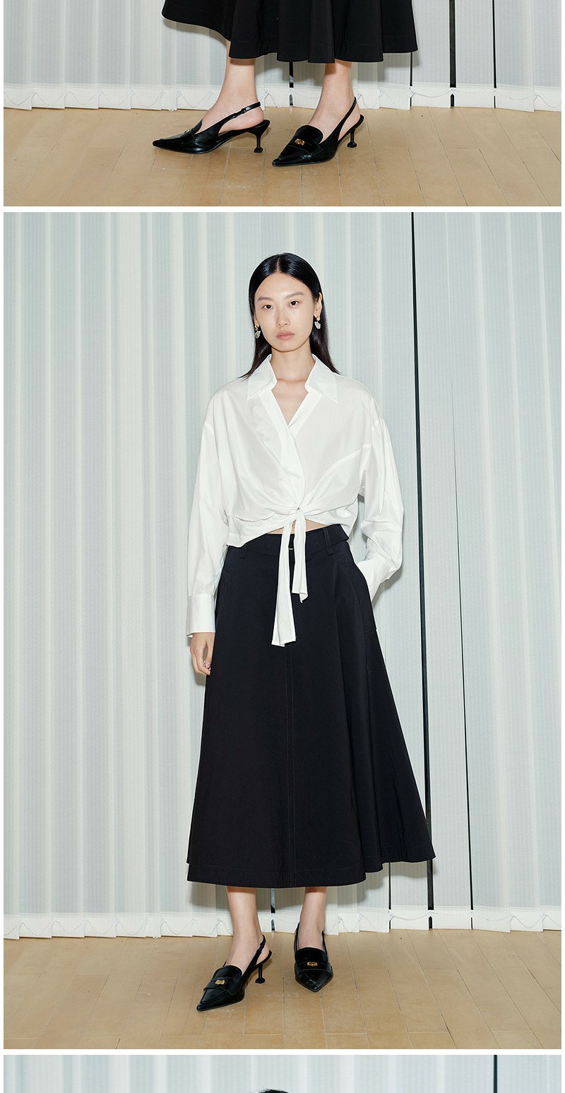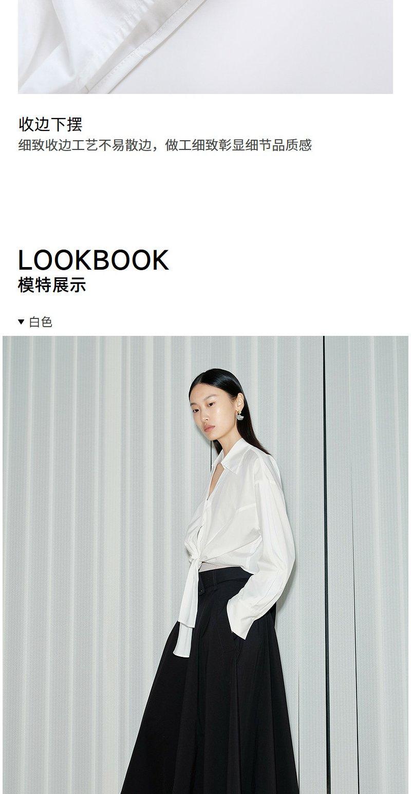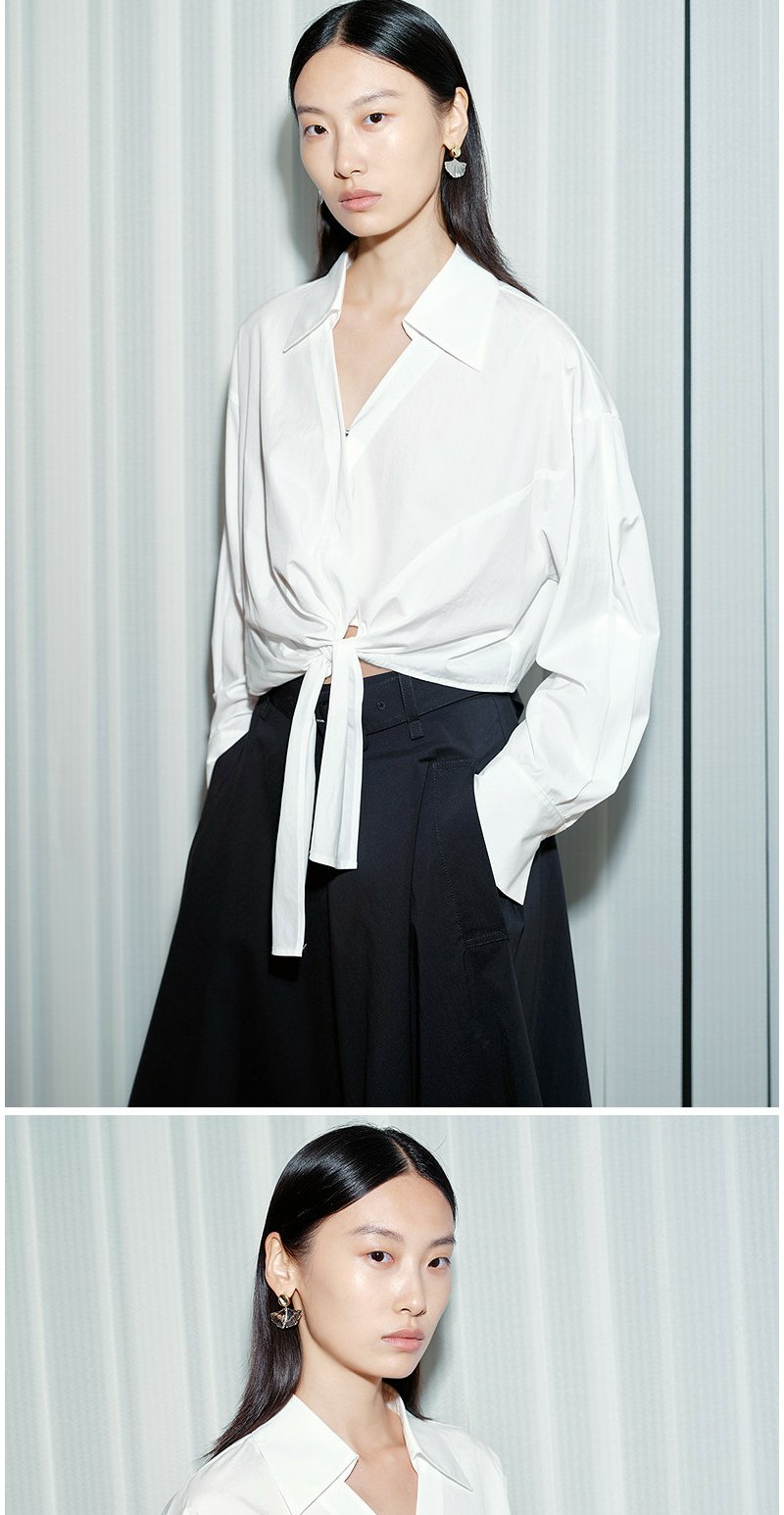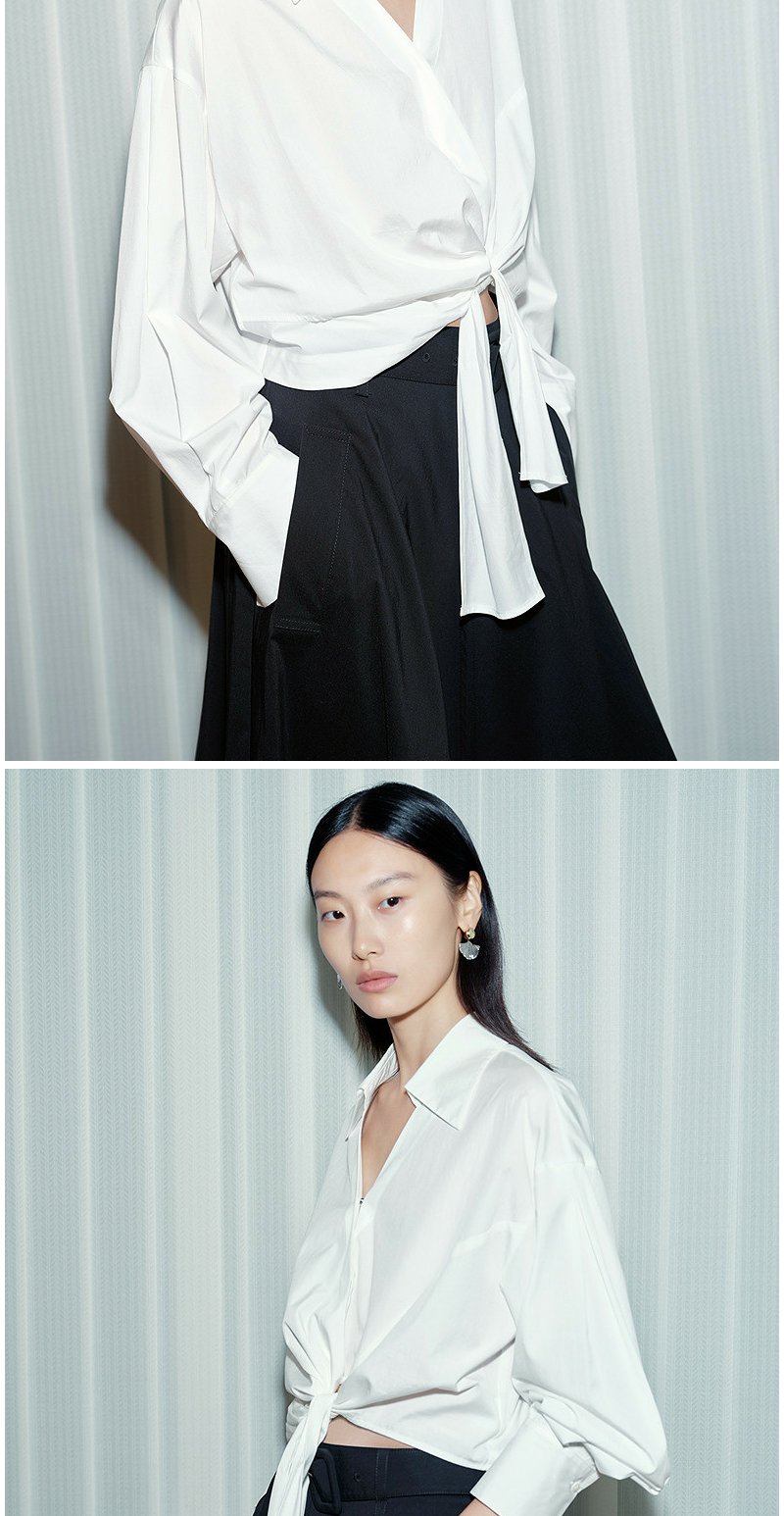 NEELLY纳俪商场同款春新款V领设计感气质长袖衬衫女收腰显瘦上衣N26034B04503