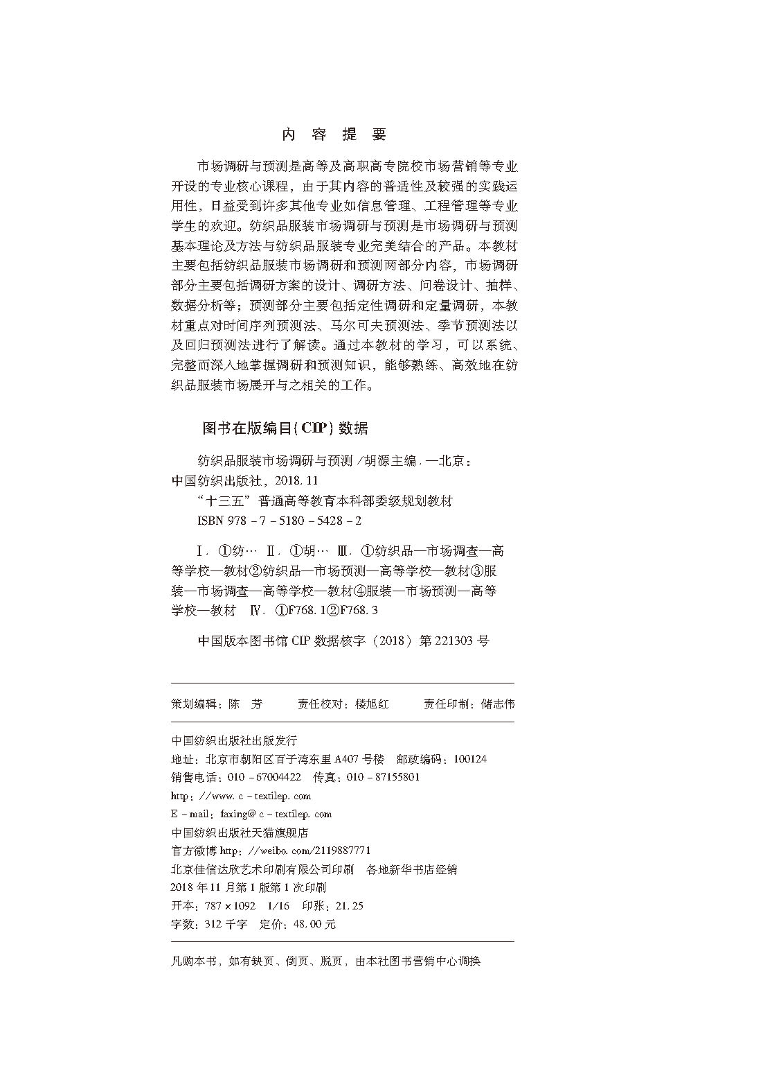 书名:纺织品服装市场调研与预测