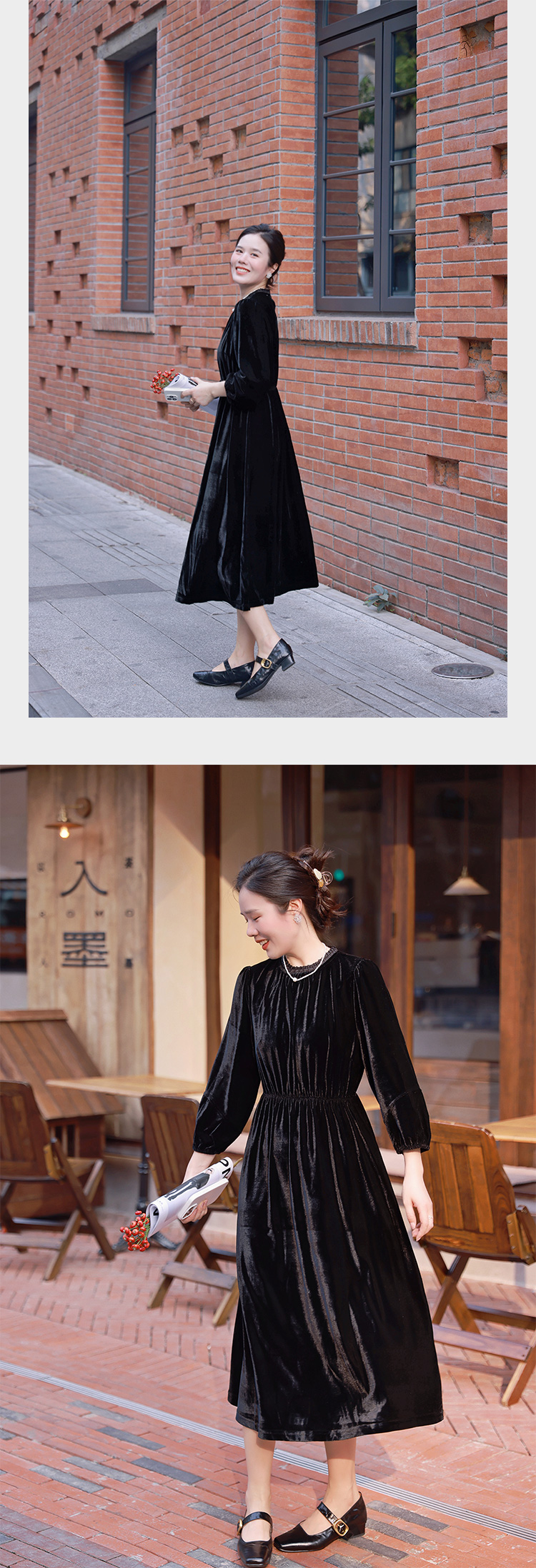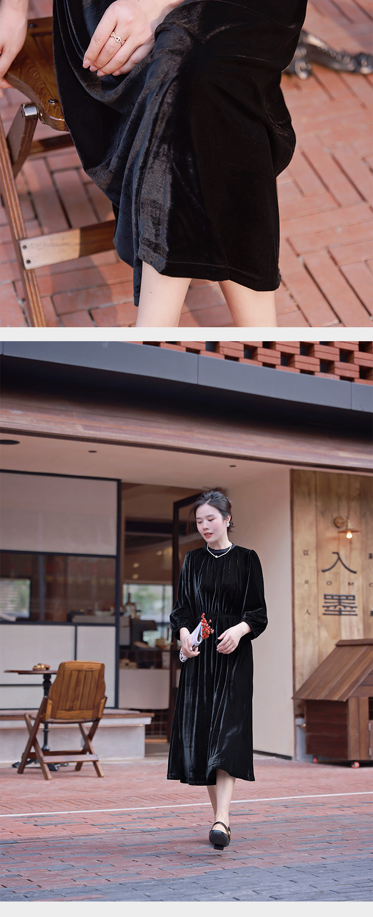 高级感 法式复古丝绒连衣裙