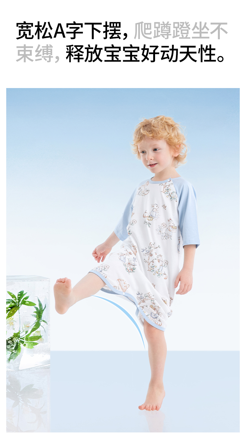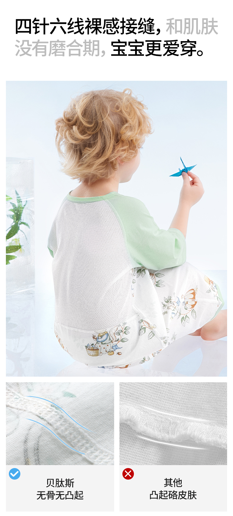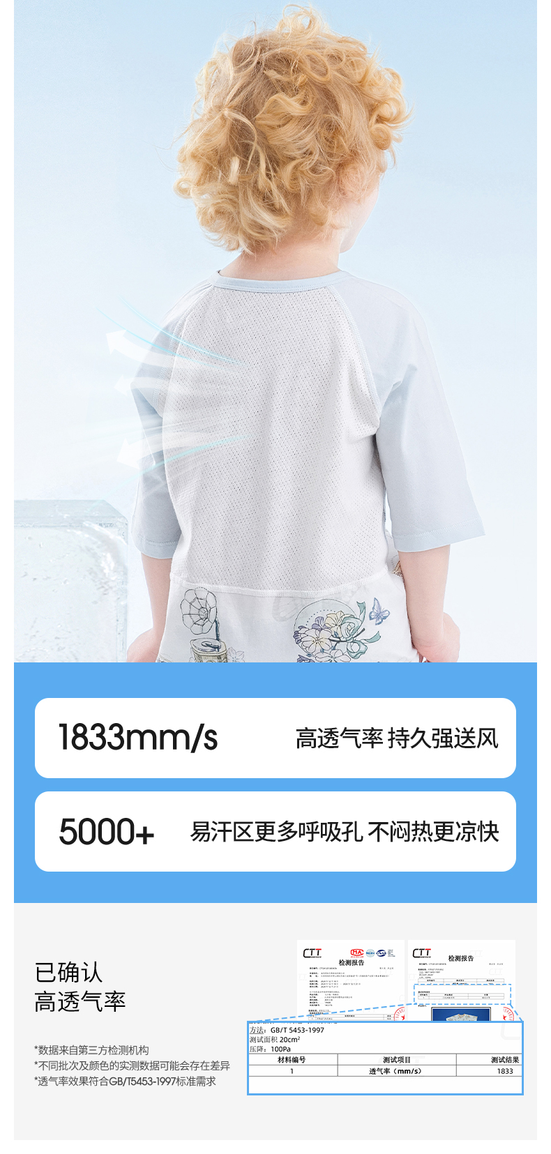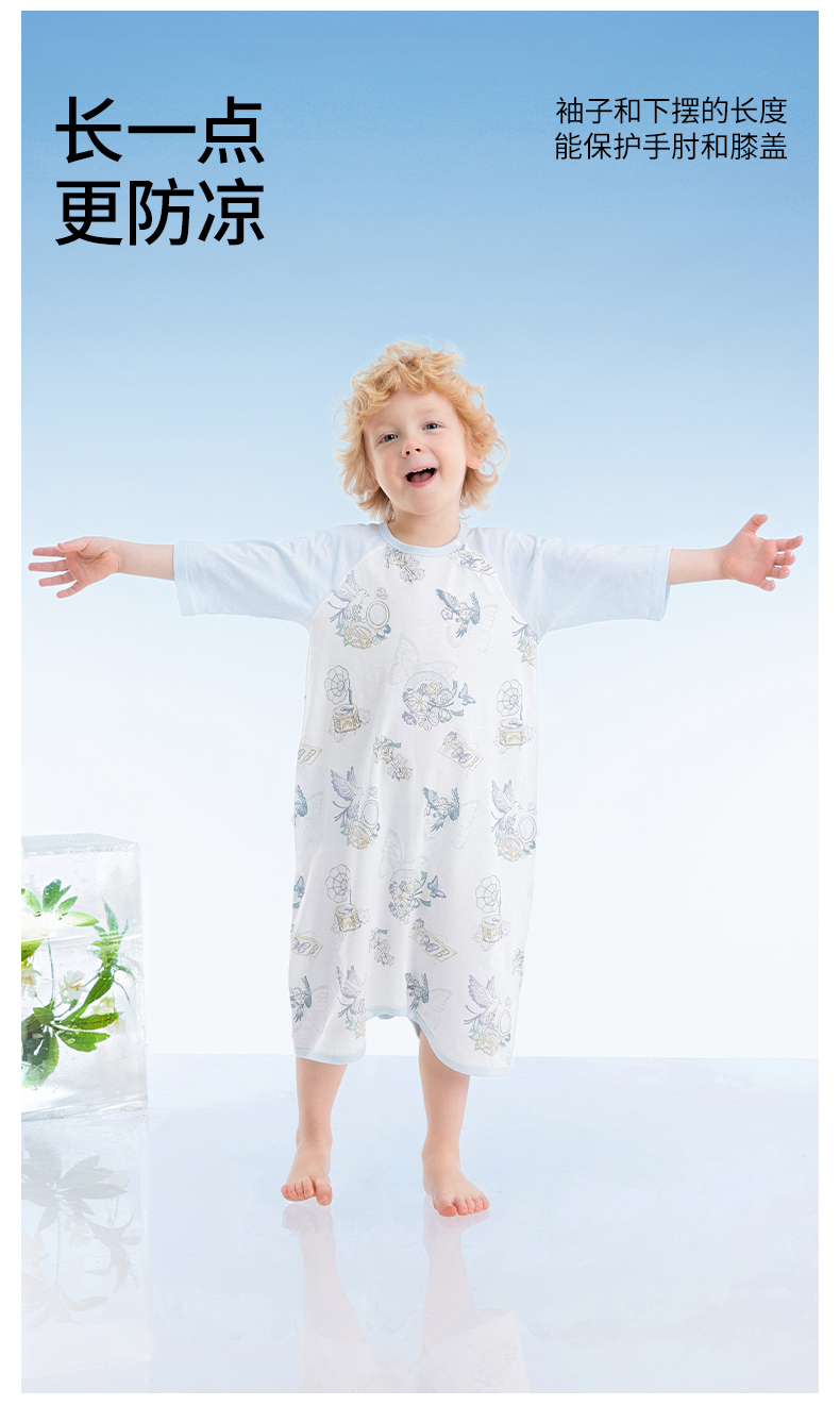 贝肽斯婴儿睡袍新款后背网眼睡袋透气儿童夏季纯棉睡衣宝宝睡裙