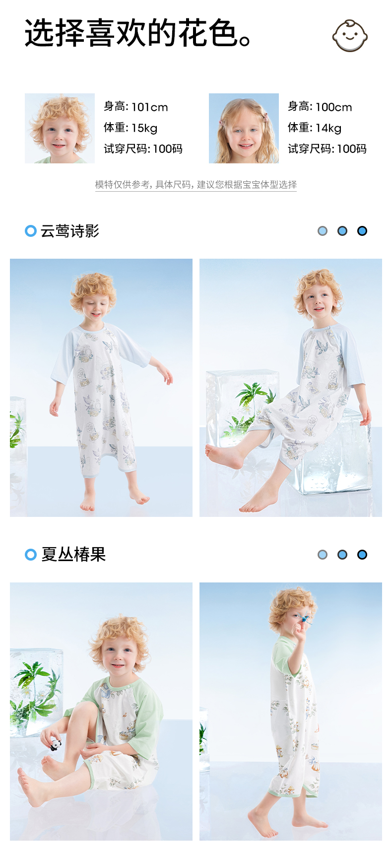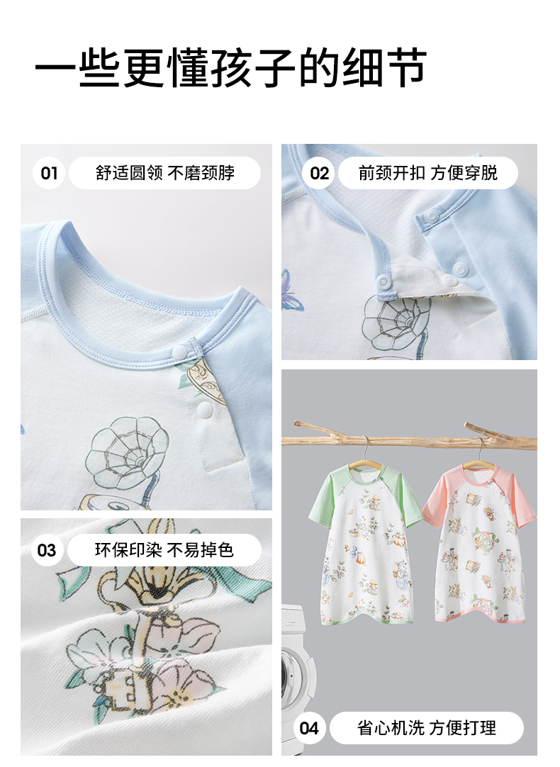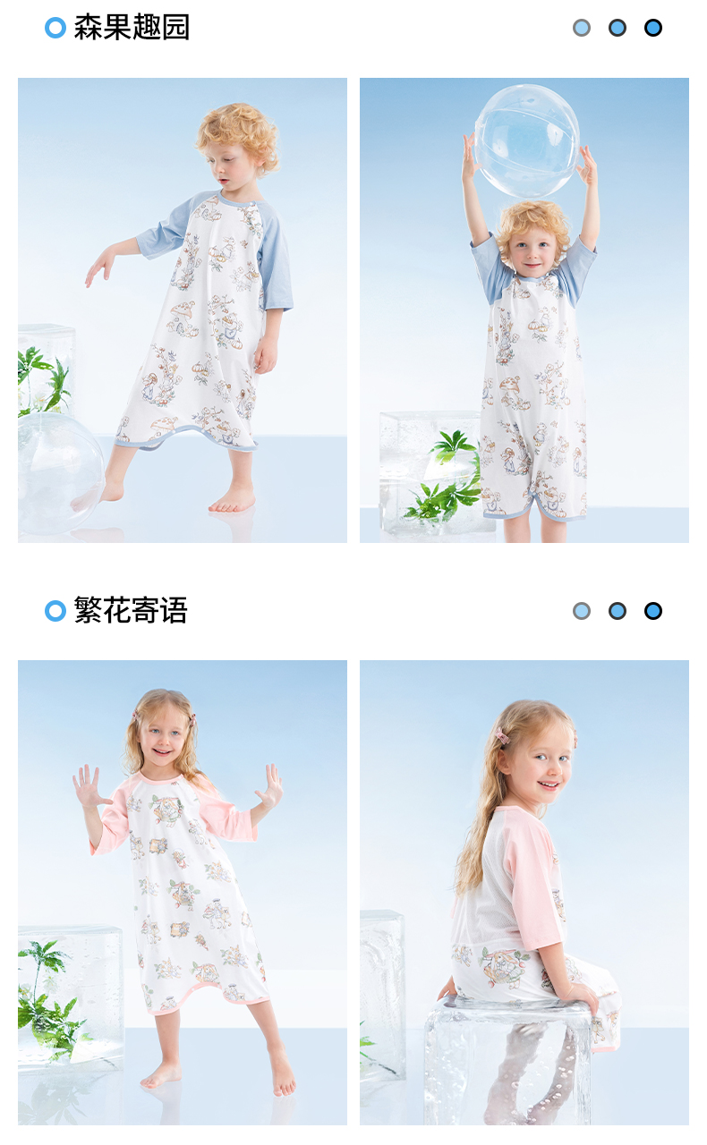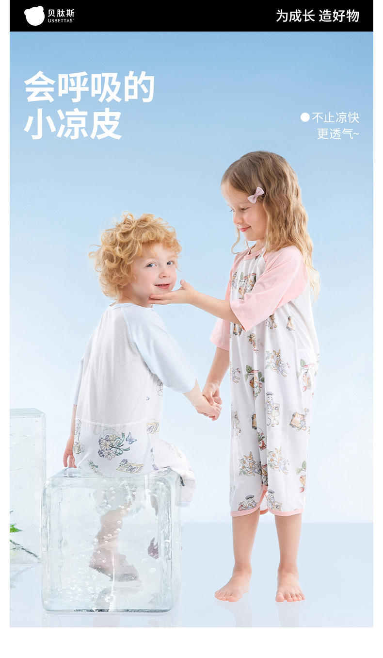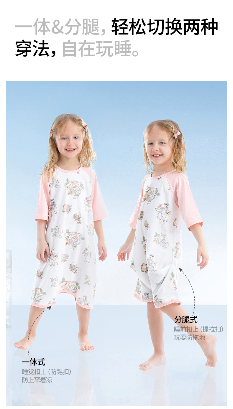 贝肽斯婴儿睡袍新款后背网眼睡袋透气儿童夏季纯棉睡衣宝宝睡裙