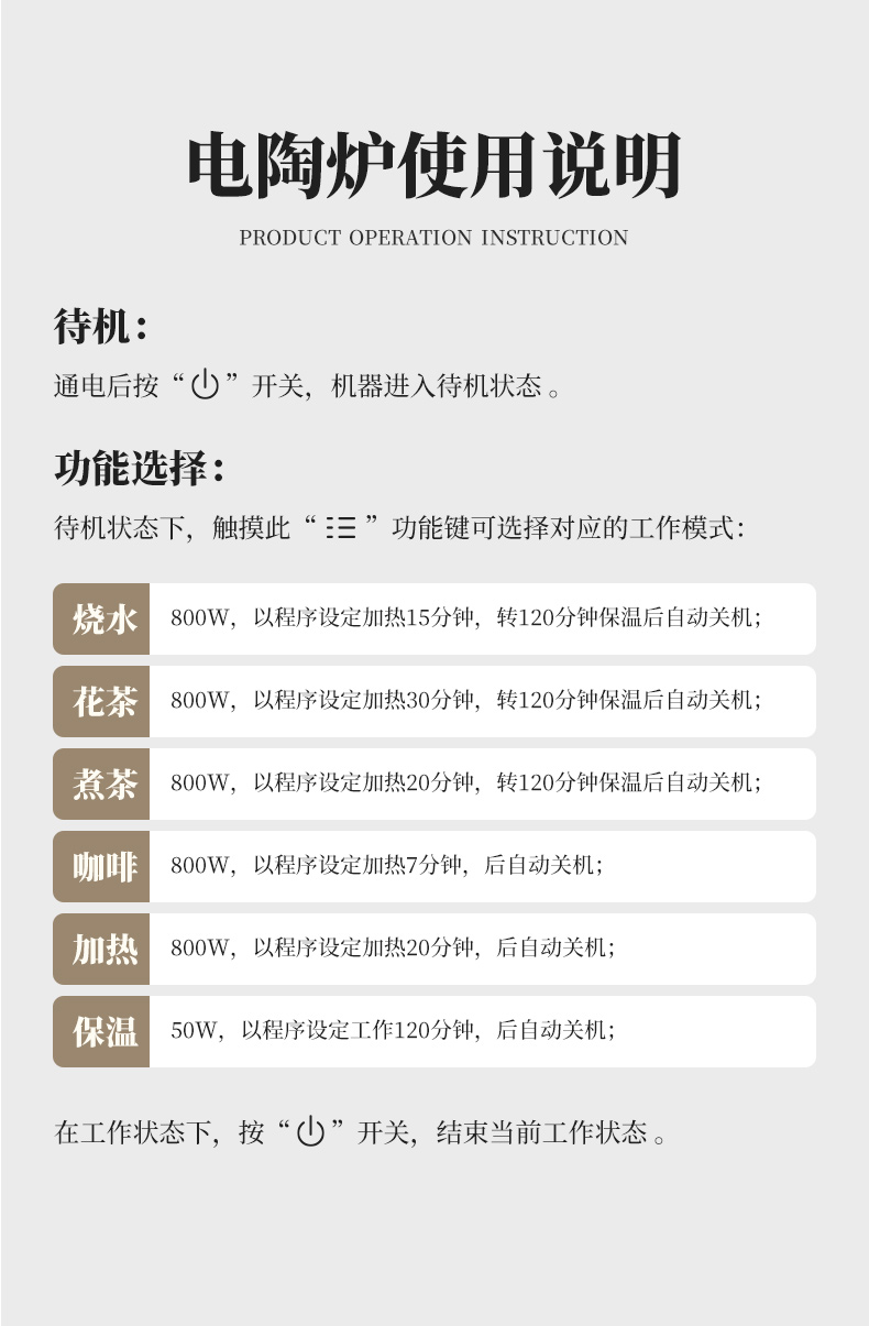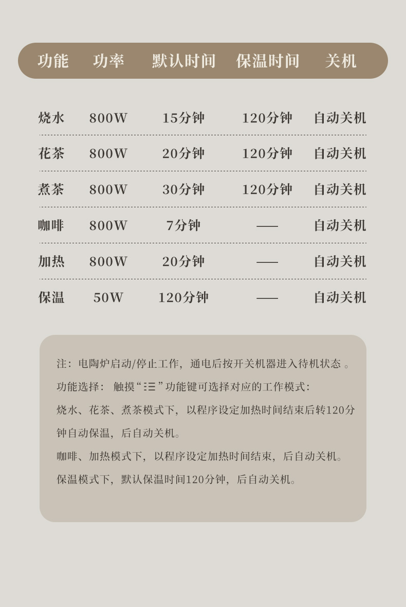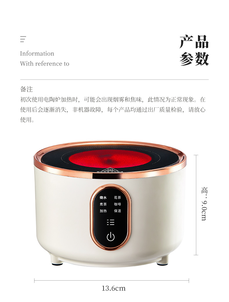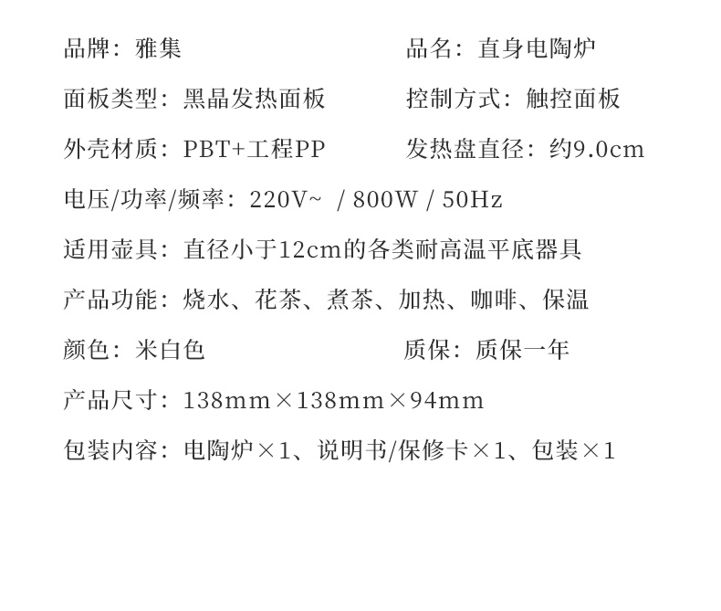 雅集电器直身电陶炉800W(迷你款-米白)