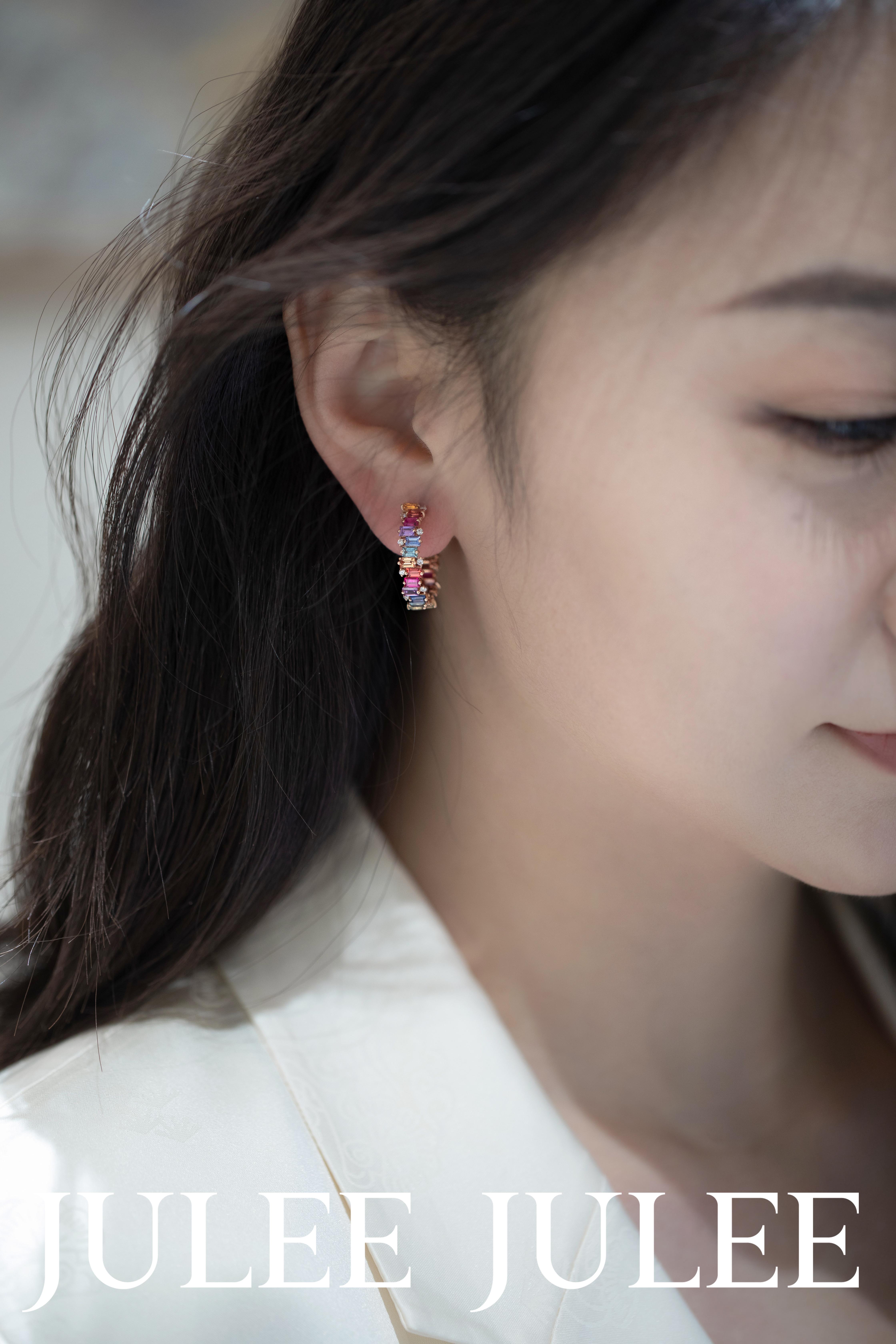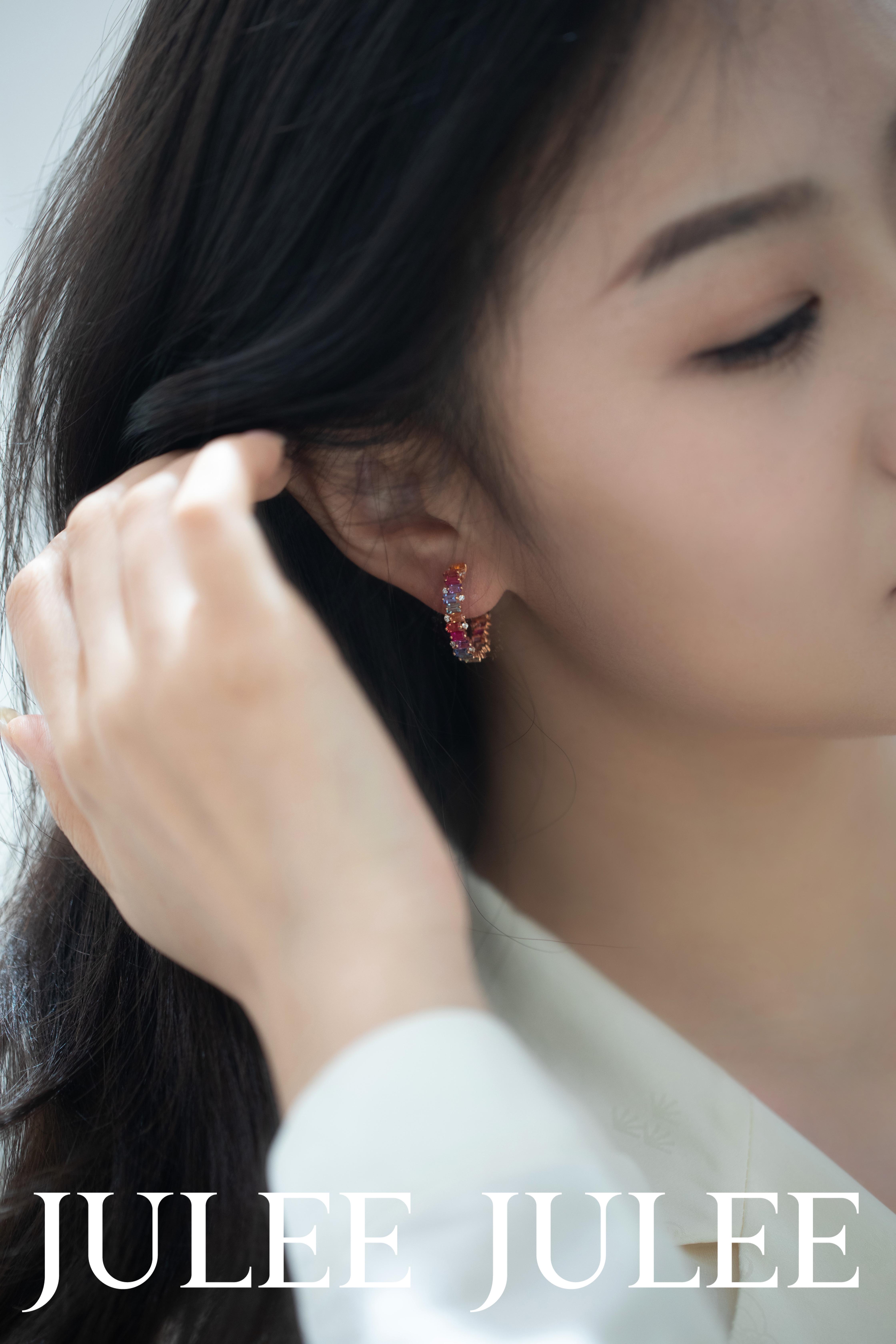 JULEE JULEE茱俪珠宝 18K玫瑰金彩蓝宝石耳饰