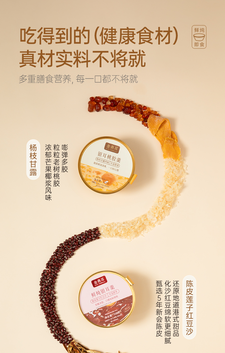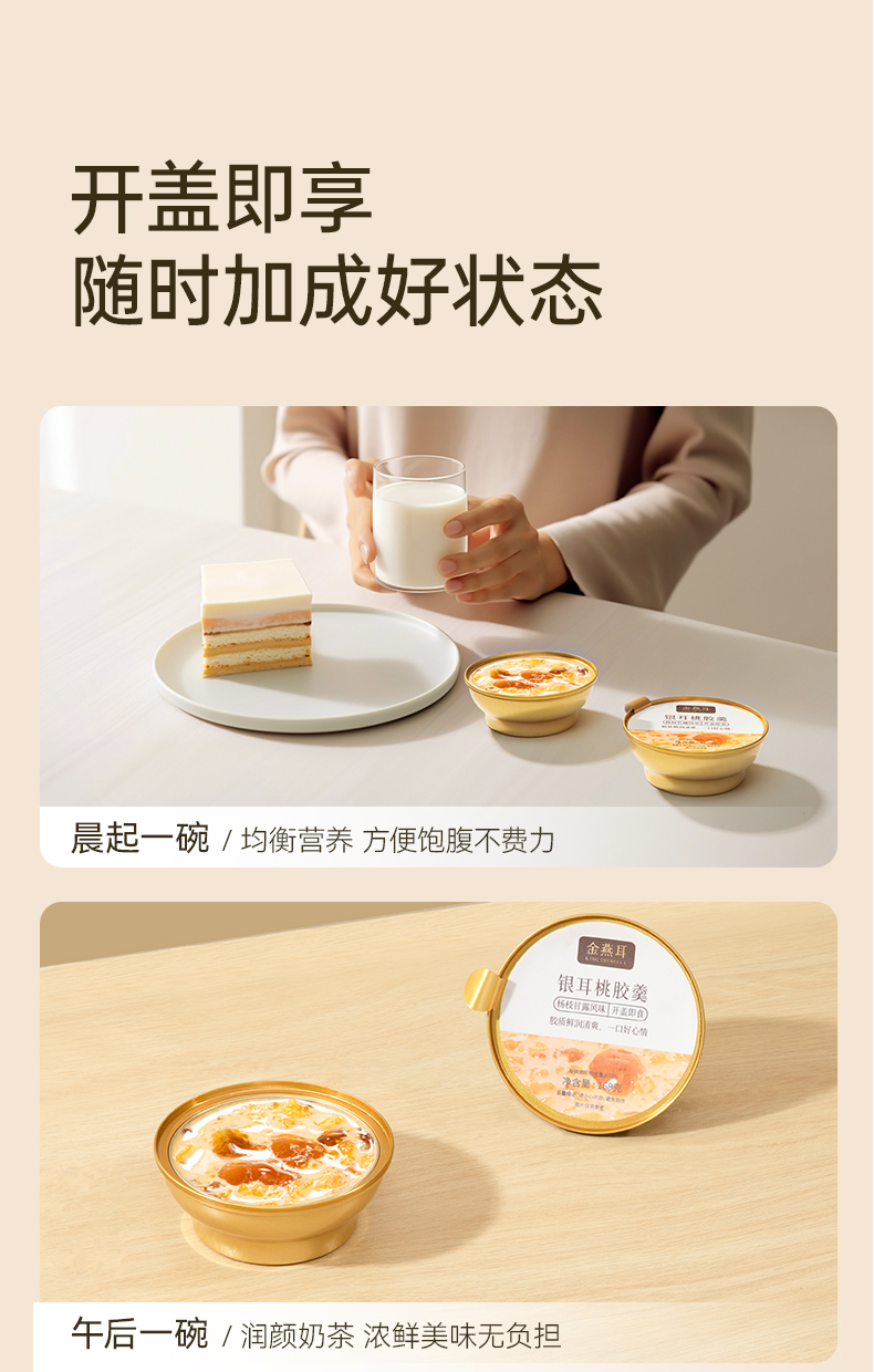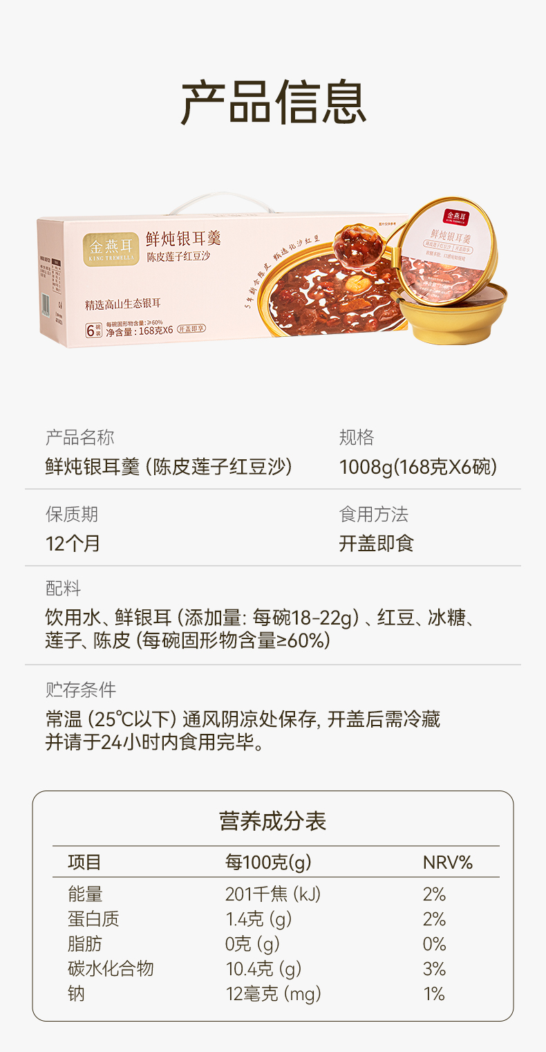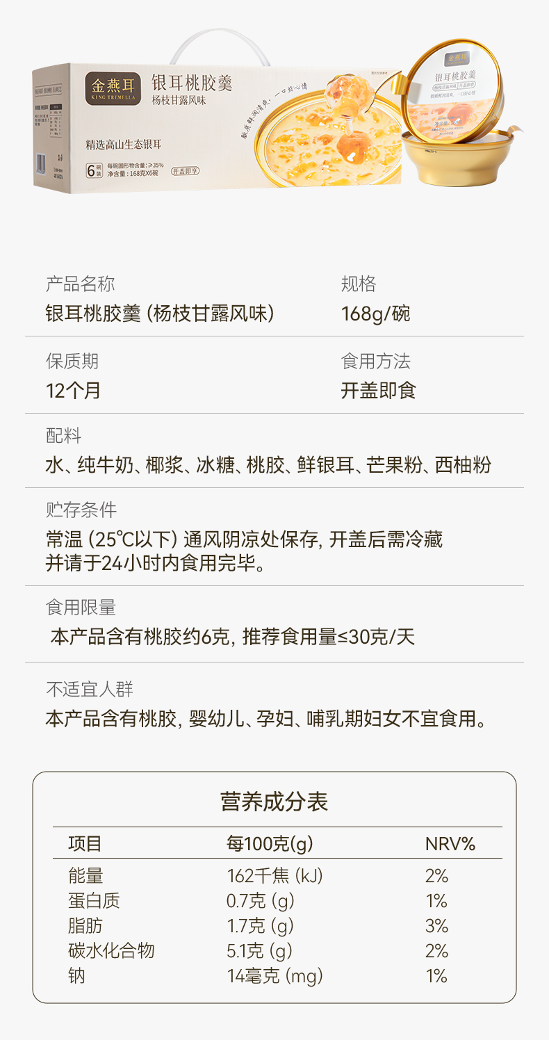 金燕耳 鲜炖银耳羹 五黑银耳羹/陈皮莲子红豆沙/绿豆沙银耳羹 /杨枝甘露桃胶银耳羹 3秒开盖即食 单碗鲜炖 营养不流失 168g*6碗(购买2箱以上的快递可能会分多个包裹发货 请注意查收)