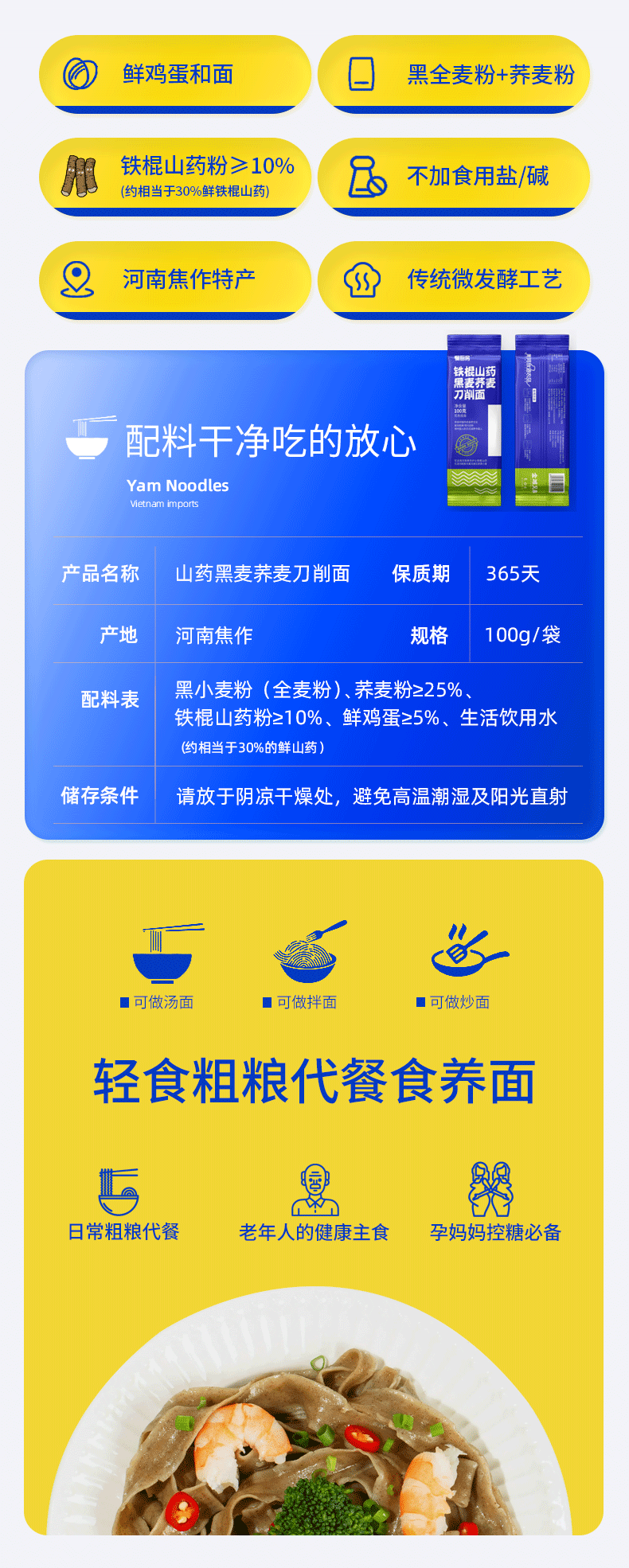 10袋 慢厨房铁棍山药黑麦荞麦刀削面100g A-2998(效期至26年9-10)