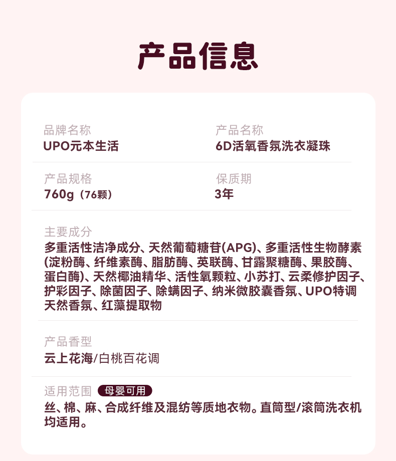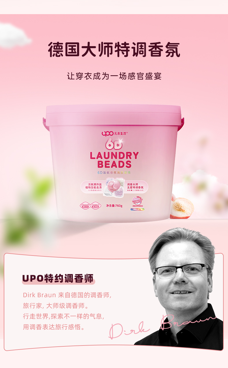 UPO元本生活新款6D洗衣凝珠 烂漫的白桃系列 仿佛置身云上花海,二次爆香长达30天
