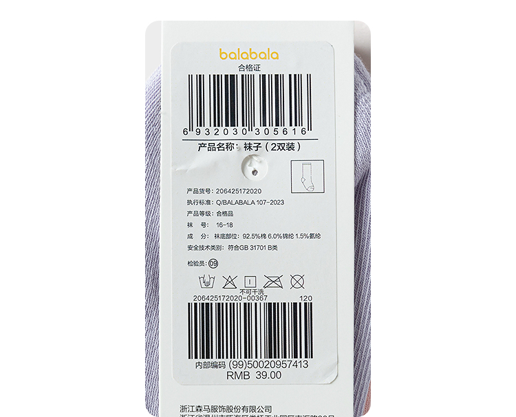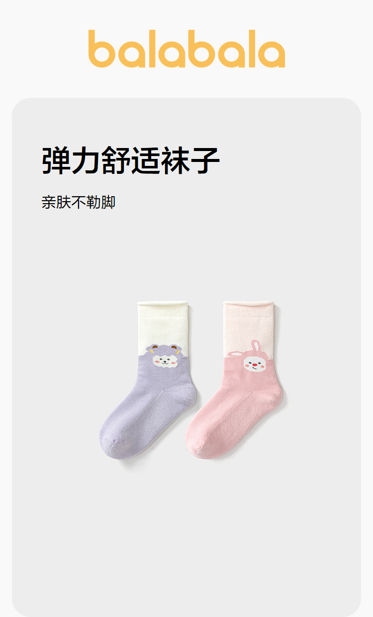 巴拉巴拉宝宝袜子冬季保暖袜婴幼儿短袜提花萌两双装