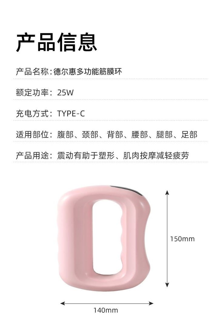 ✅ 多功能解锁|全身可用,一台搞定全家需求 不同于单一功能的按摩设备,德尔惠筋膜环堪称“行走的移动按摩师”,可调节加长绑带设计,适配全身多个部位,想按哪里就按哪里: 腰腹部位:贴合腰腹曲线,震动按摩缓解腰肌劳损,促进肠道蠕动,久坐党再也不用怕“大肚腩”堆积,辅助收紧腰腹线条; 肩颈部位:适配颈椎曲线,轻柔震动松解肩颈结节,低头族、上班族每天10分钟,告别“富贵包”和颈椎酸痛; 腿部部位:包裹大腿、小腿,缓解运动后肌肉紧绷和久站浮肿,改善腿部线条,健身党恢复更快,女生再也不用怕“肌肉腿; 手臂部位:轻松包裹手臂,震动放松拜拜肉部位,促进循环,搭配拉伸,线条更纤细
