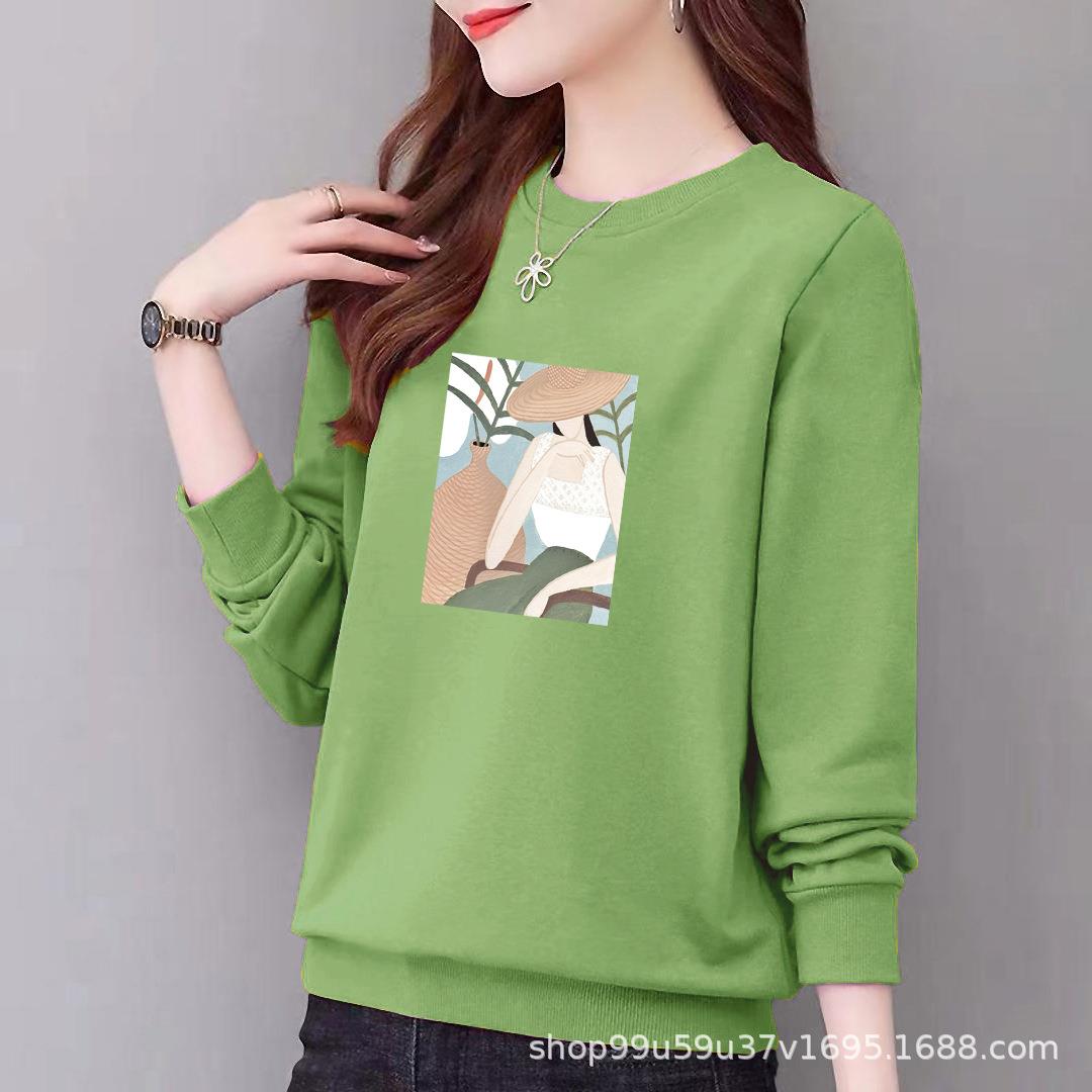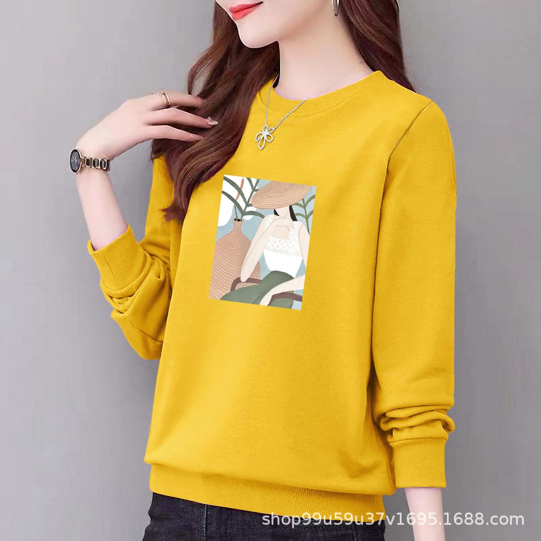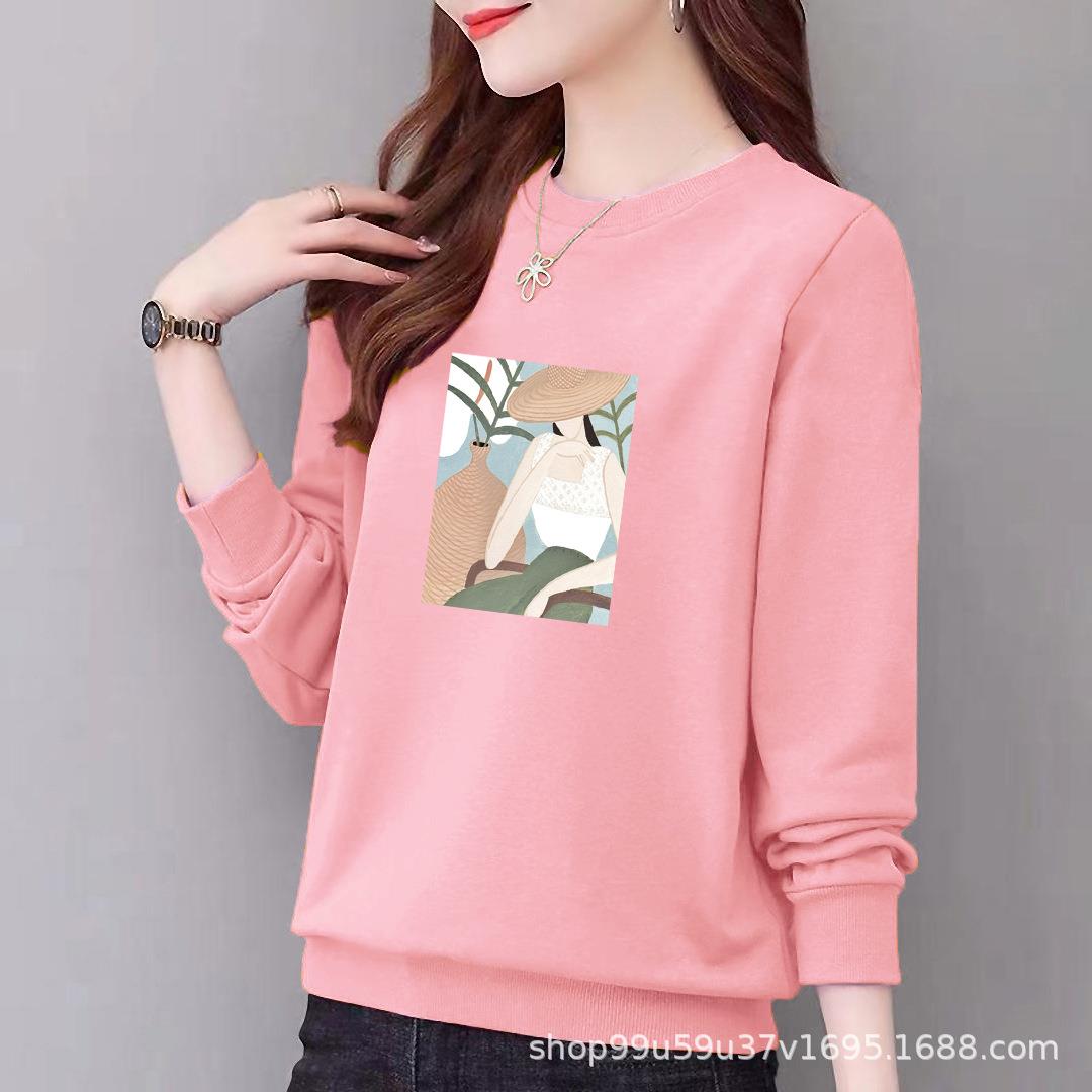 圆领卫衣97%棉小毛圈女式休闲时尚宽松外套上衣字母印花运动显瘦
