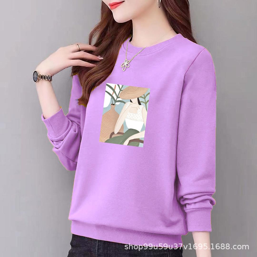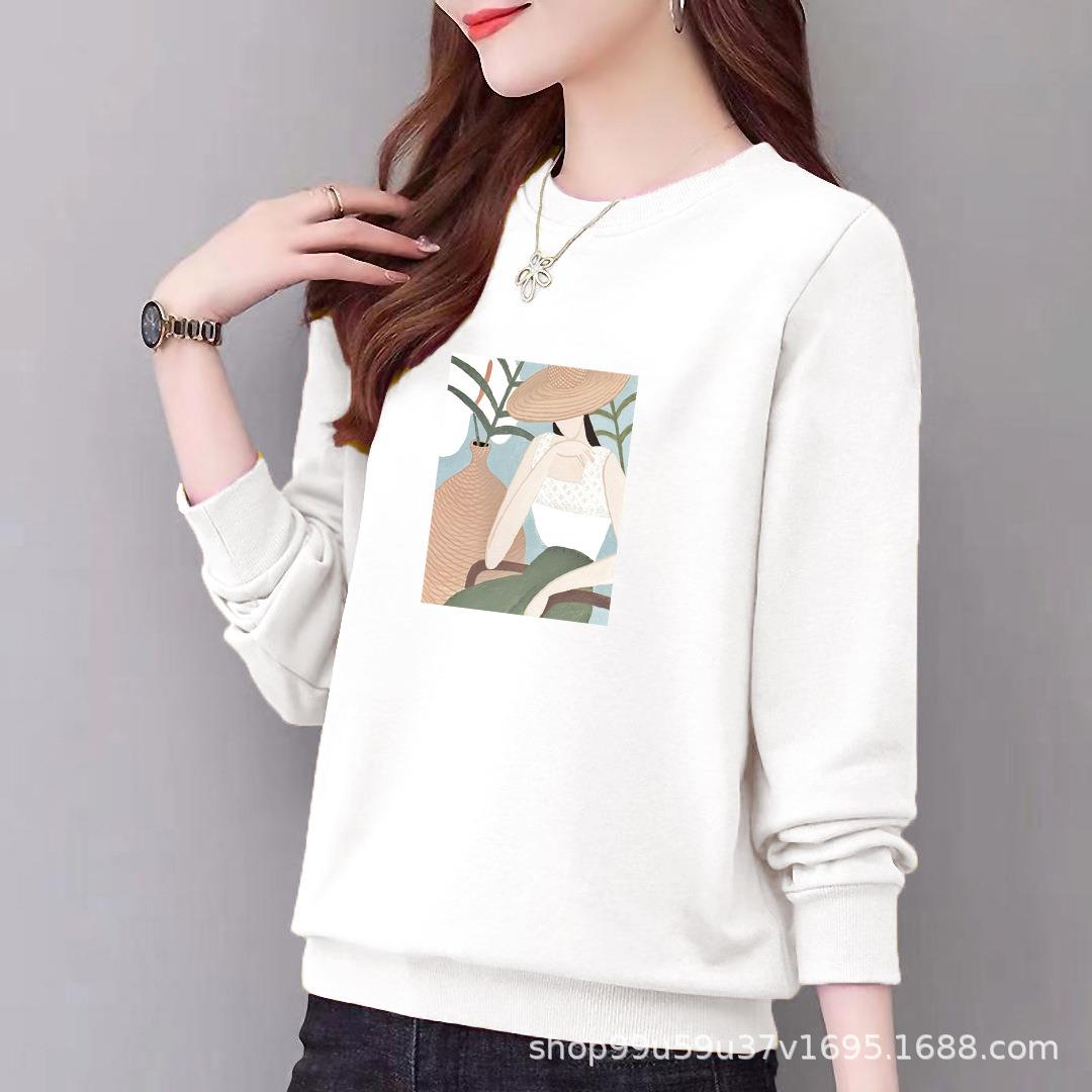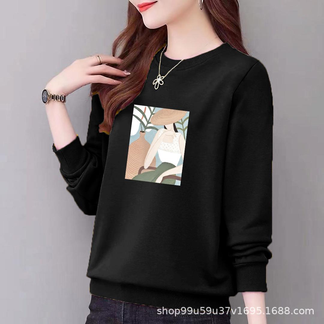 圆领卫衣97%棉小毛圈女式休闲时尚宽松外套上衣字母印花运动显瘦
