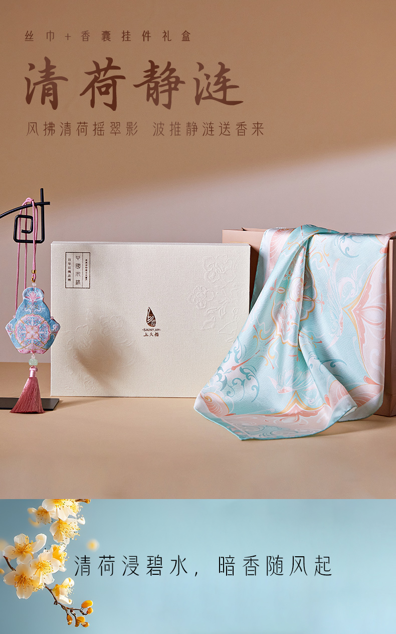 SAINTJOY/上久楷礼盒 清荷静涟 宋锦香囊SPS24J09 真丝方巾FJS24054