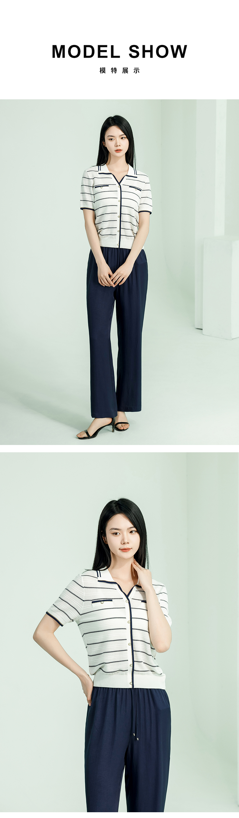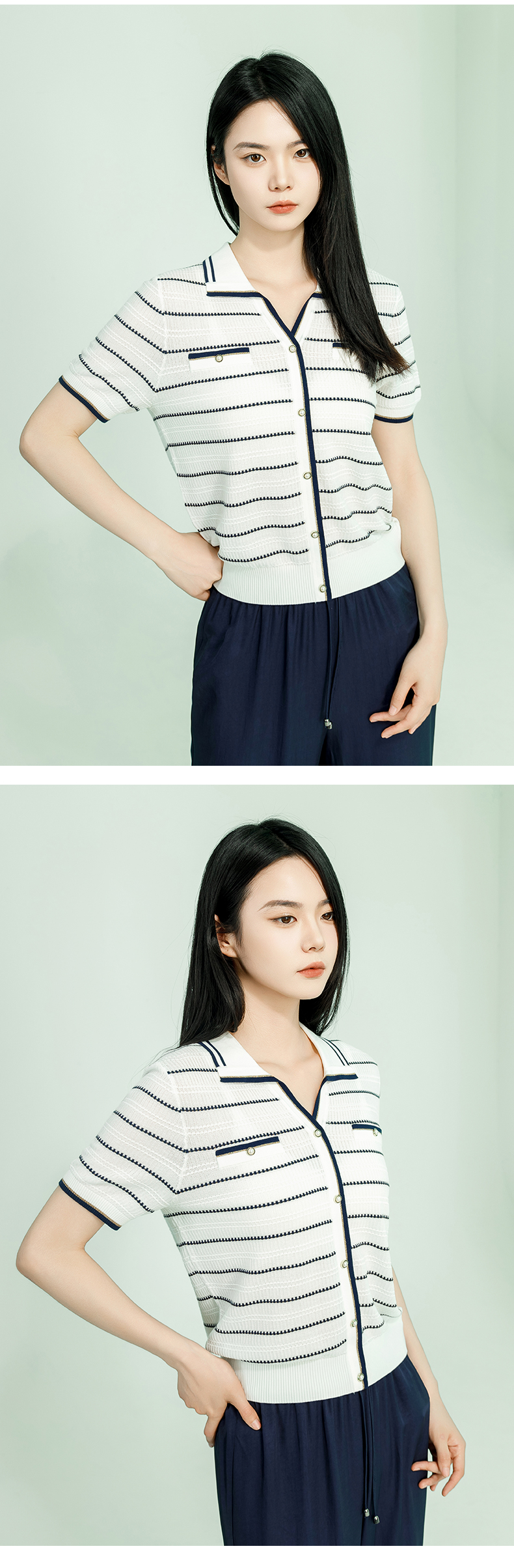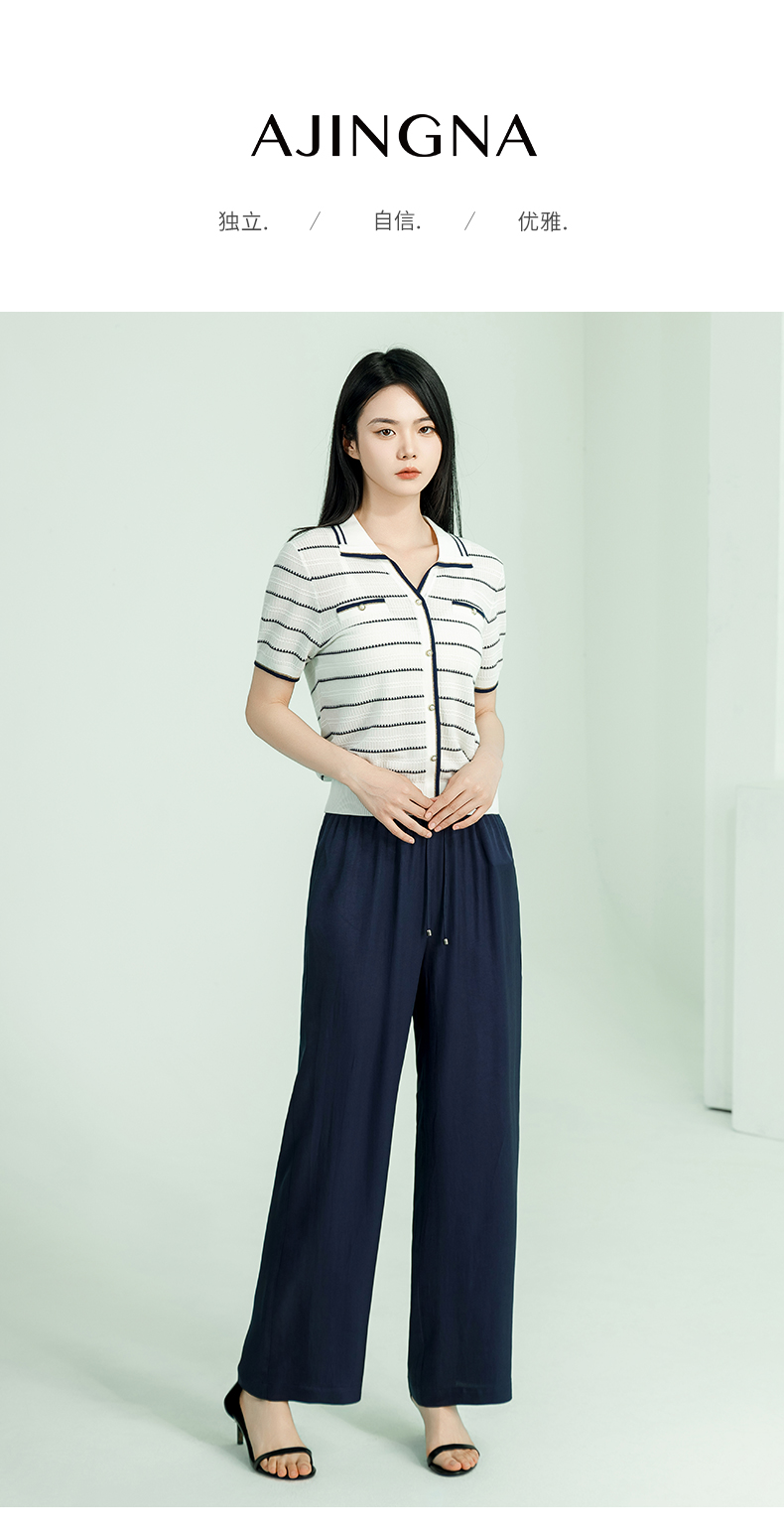 【商场同款】阿菁娜夏季新款修身翻领条纹毛衫A29X301063