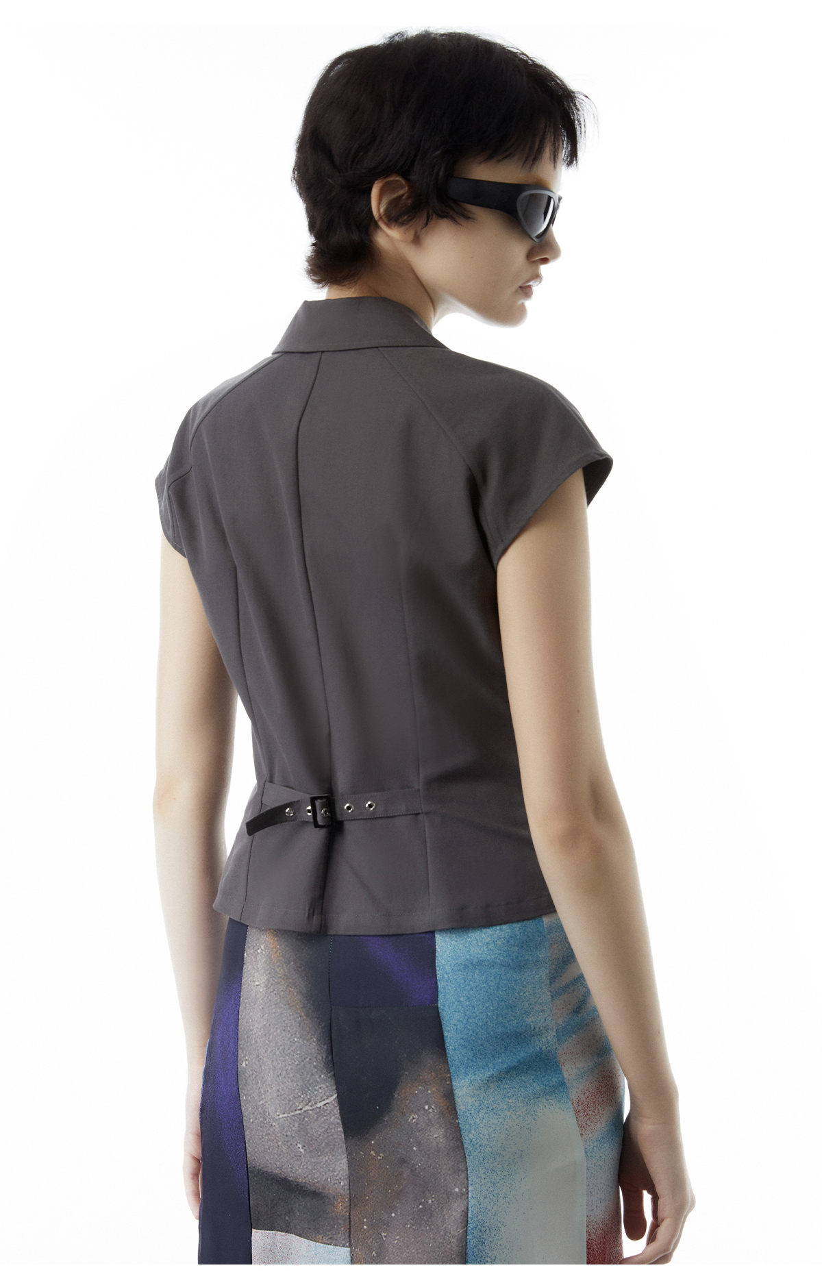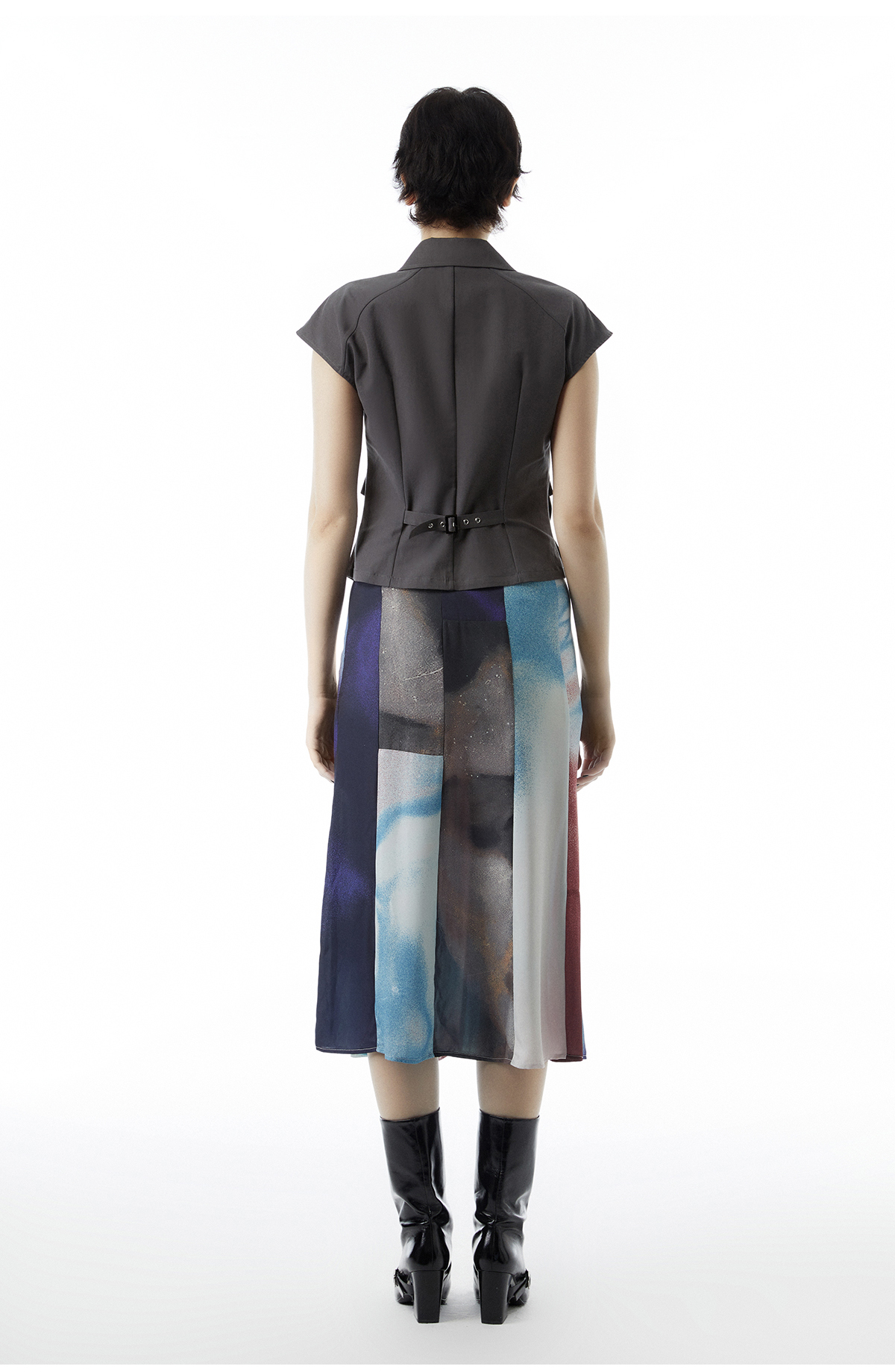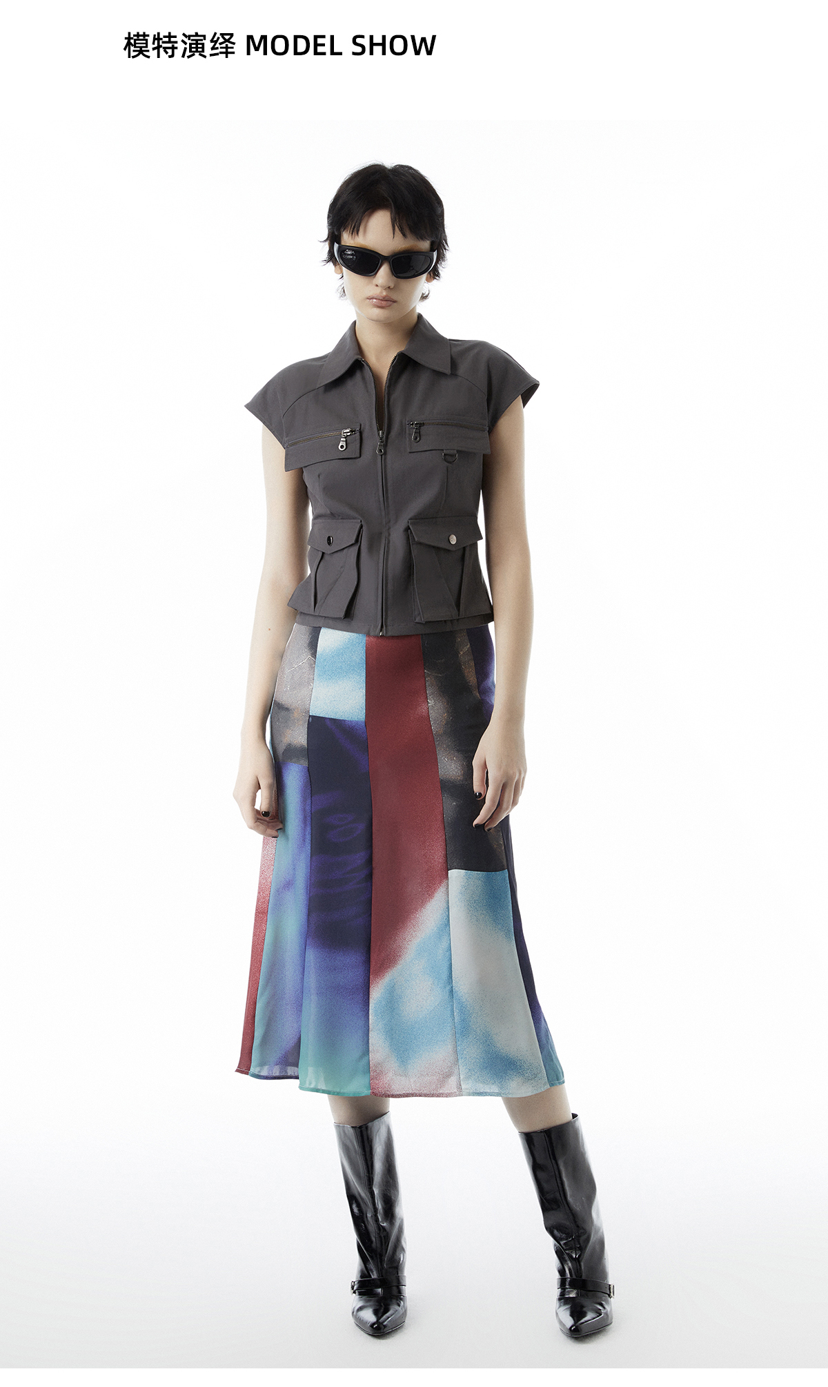 lost in echo设计师品牌多口袋插肩袖落肩工装马甲印花修身直筒半裙套装