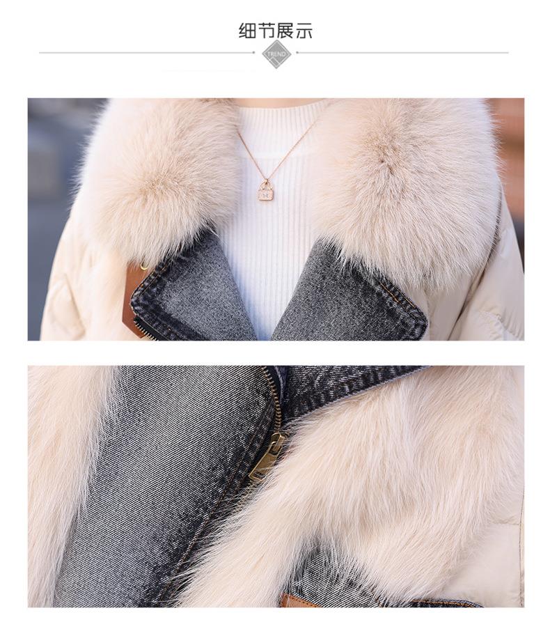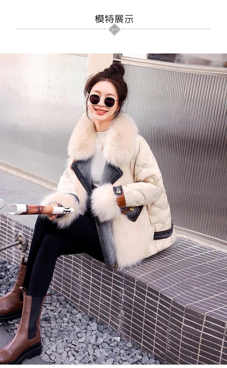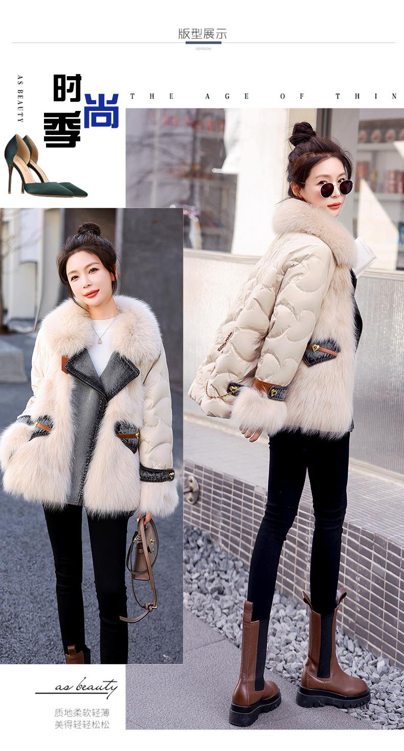 版型好看的羽绒服女款2023今年新款时尚短款牛仔拼接皮草外套冬季