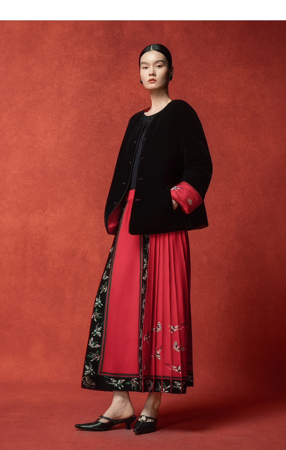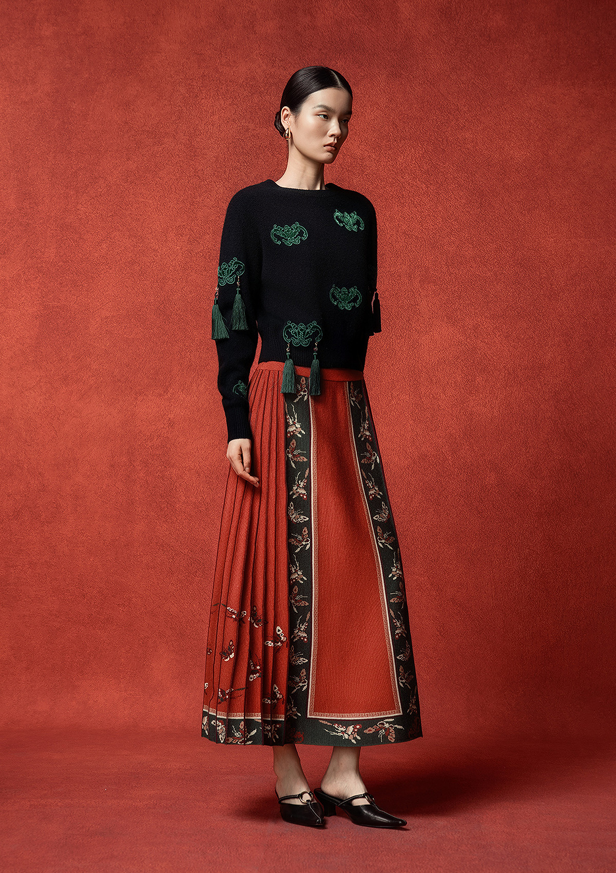 【林栖设计小店】福蝶鸣春|恭王府联名马面裙2026早春新款羊毛秋色毛织半身裙1961274