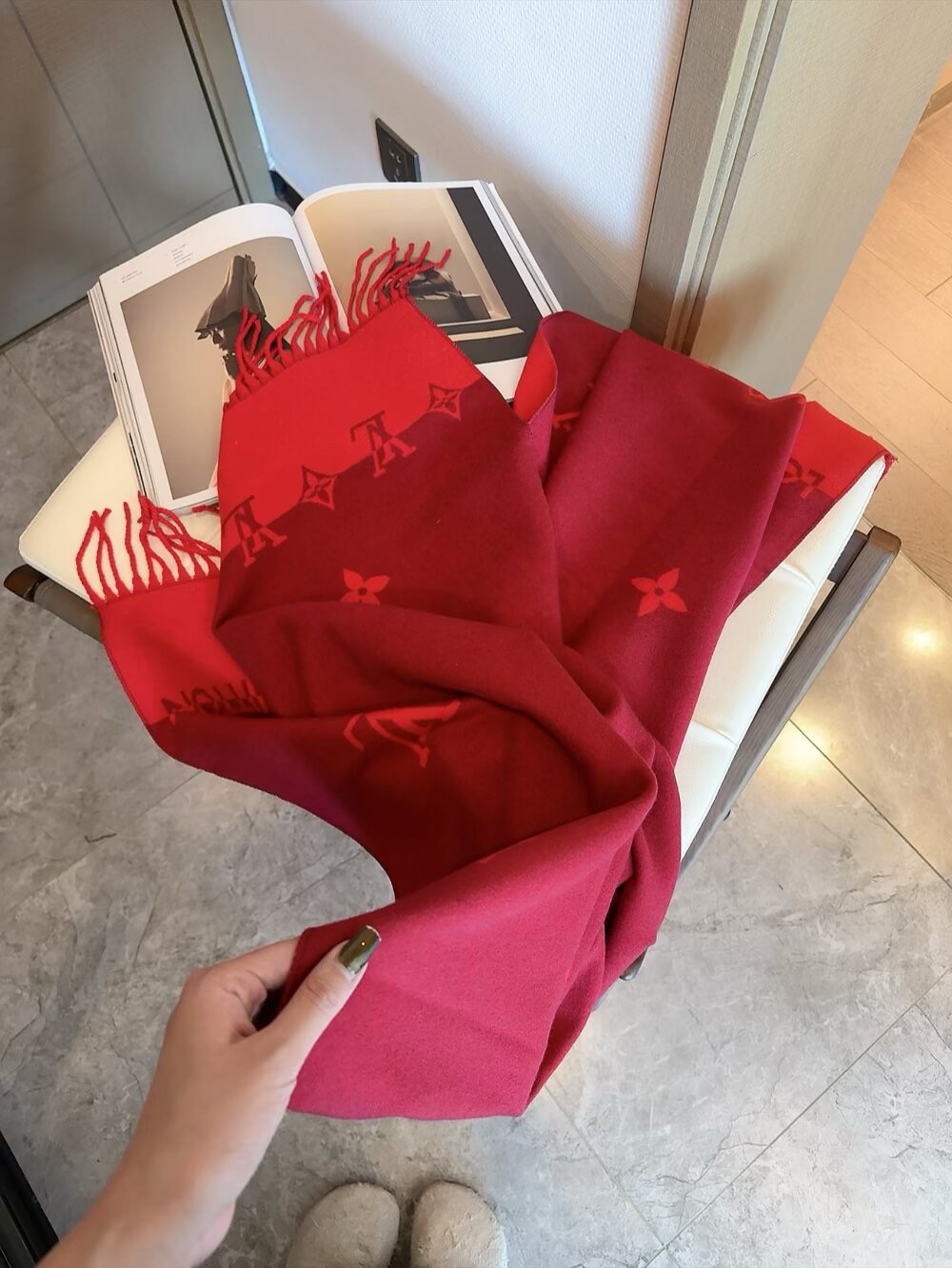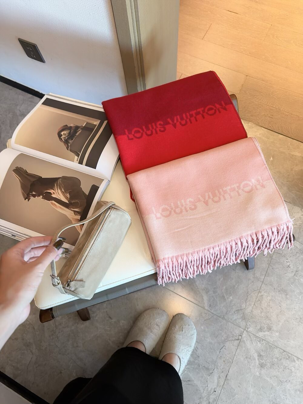 秋冬特惠💰150 LV男女围巾 提花经典设计,若隐若现的lv标志,尺寸:200*65cm 大长巾 羊绒款