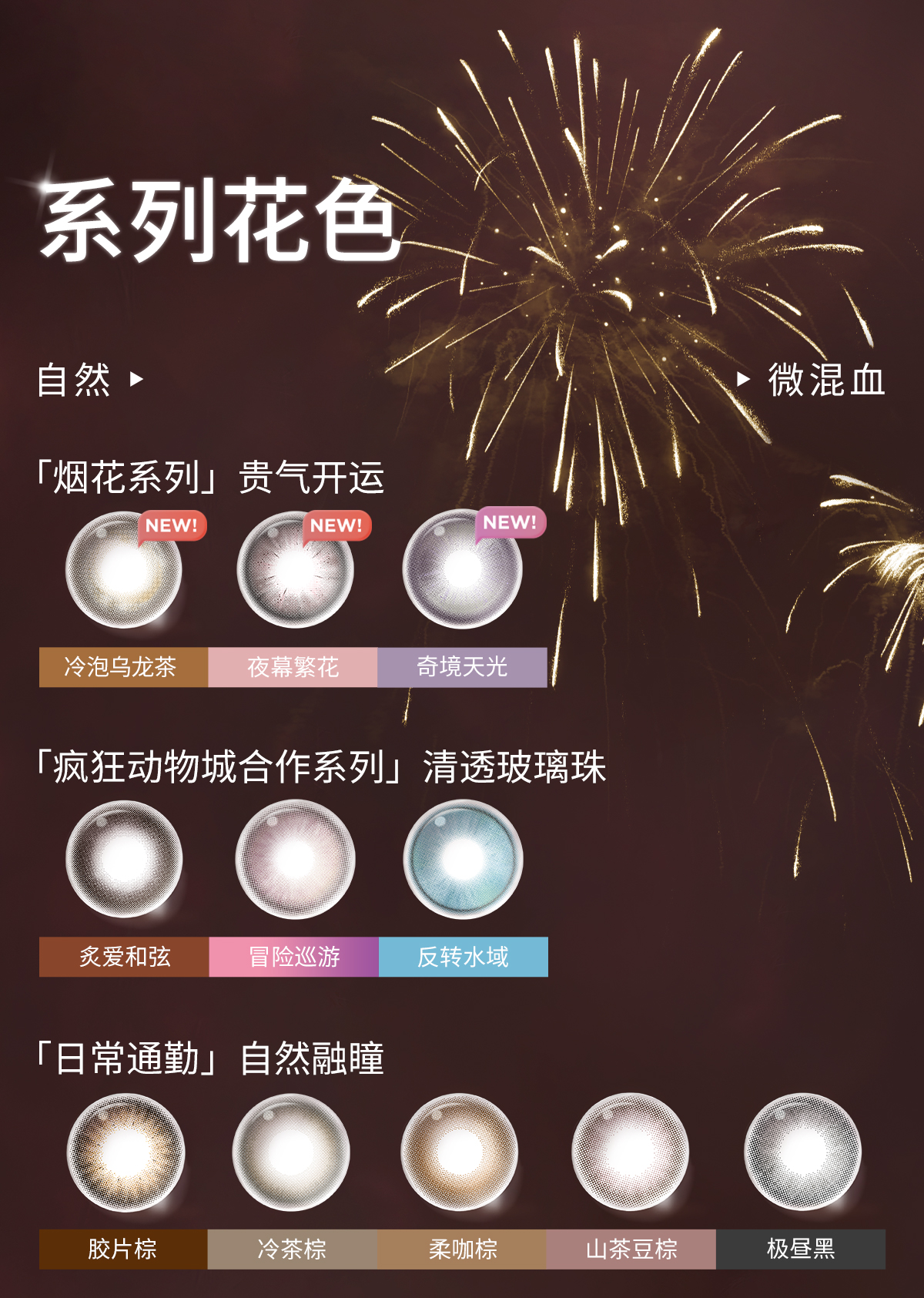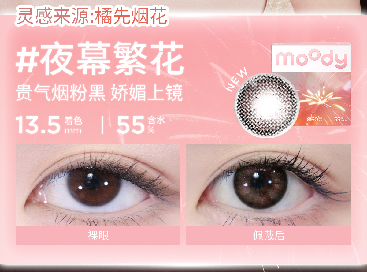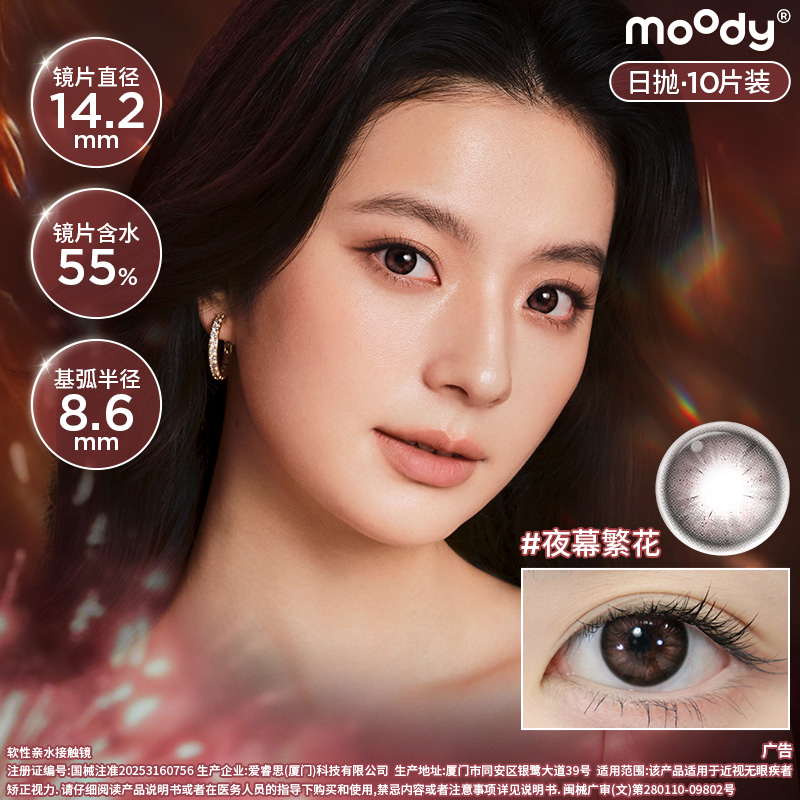 【38会员节秒杀专场】moody经典系列美瞳日抛10片烟花系列夜幕繁花彩色隐形眼镜