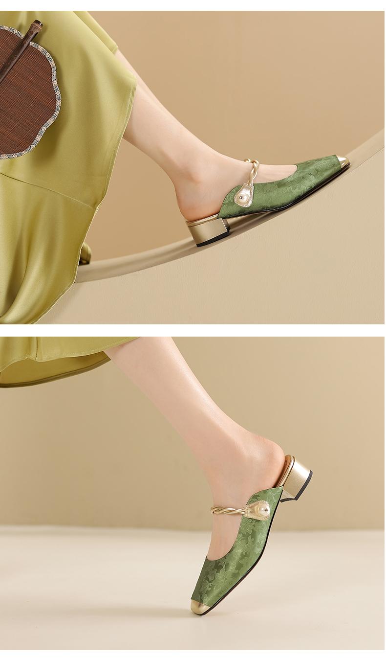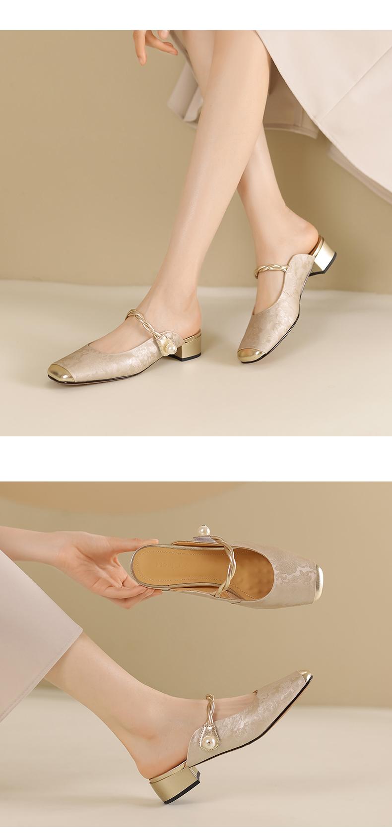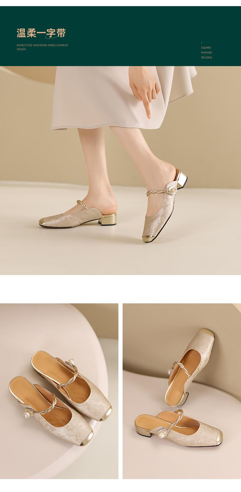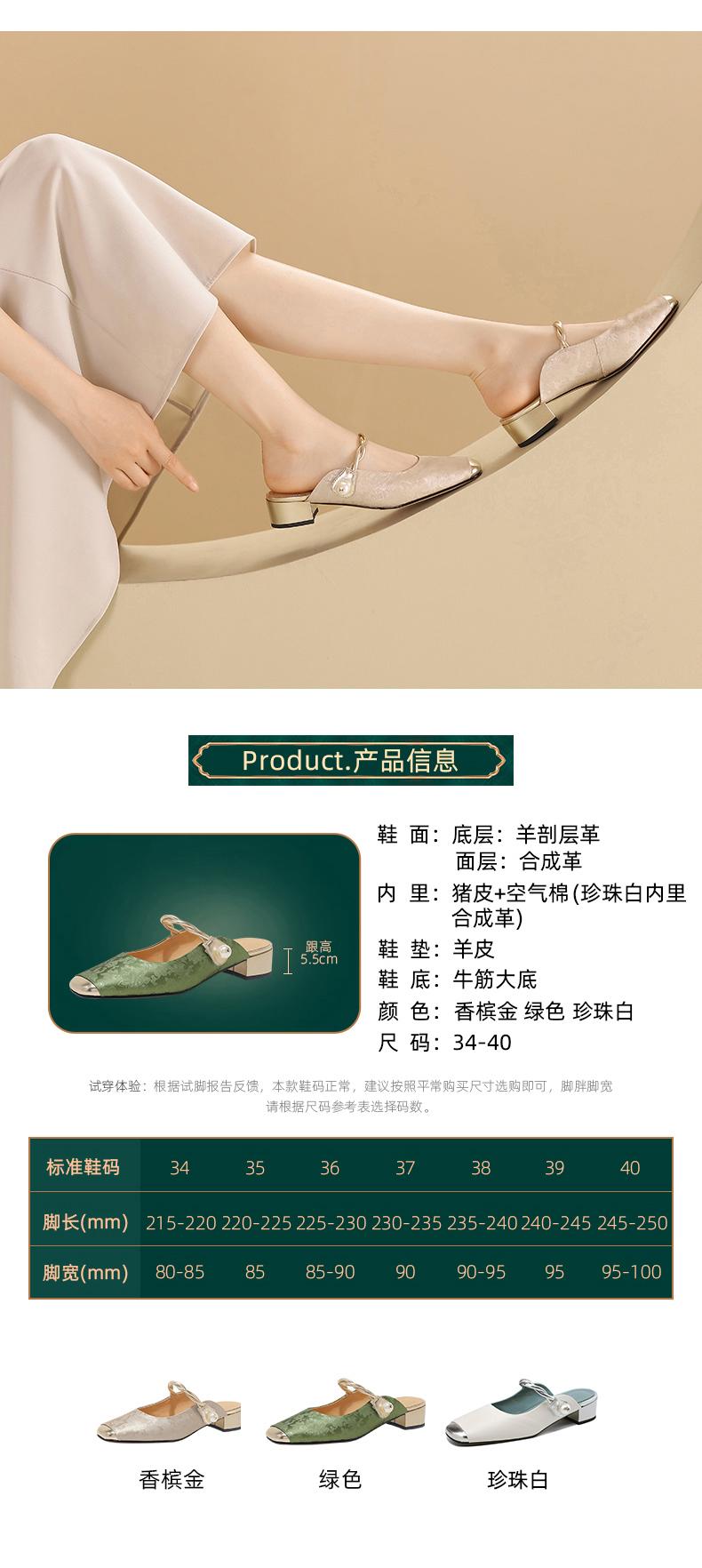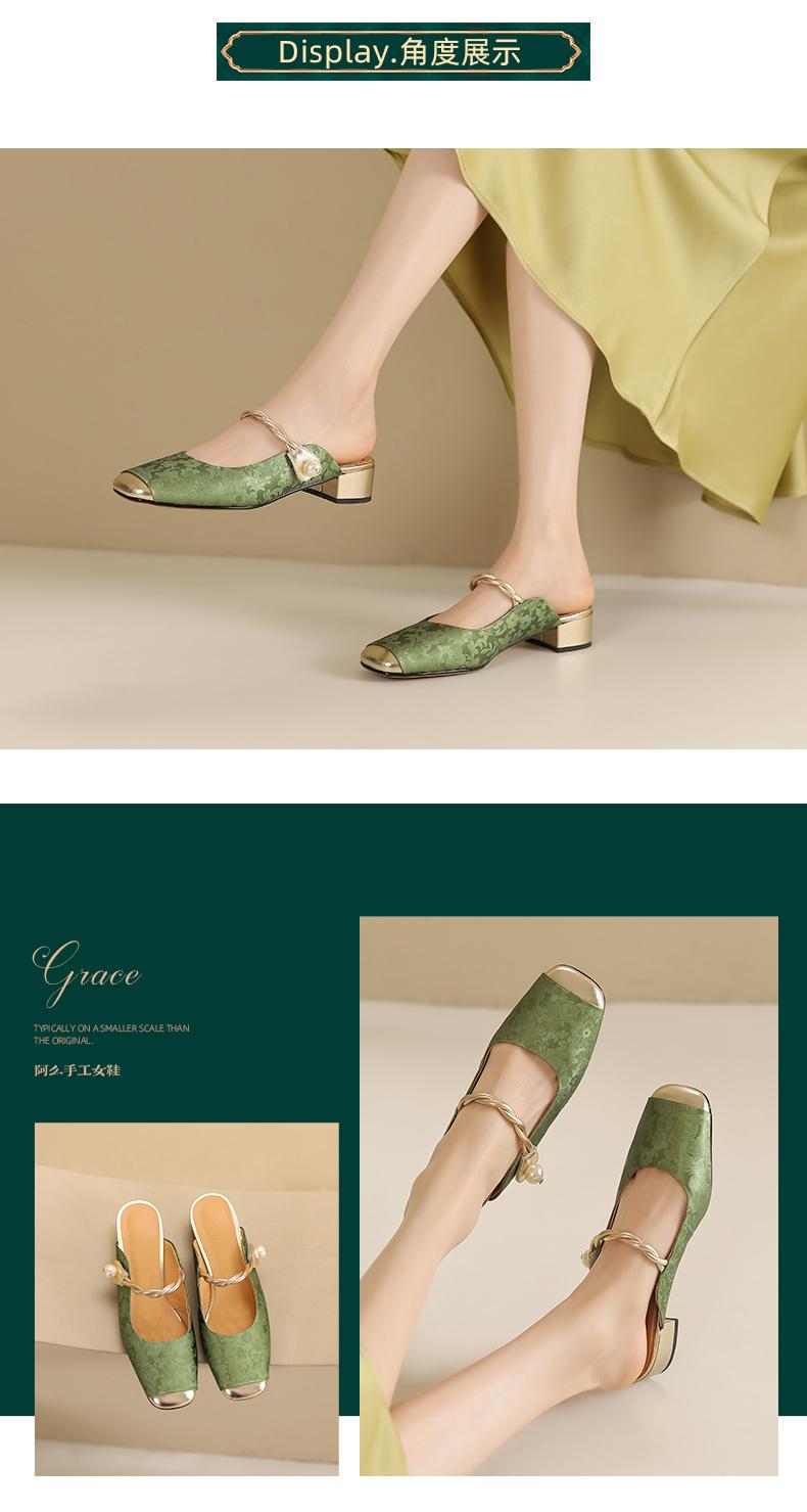 阿么手工女鞋新中式国风真皮穆勒拖2025新款夏季外穿粗跟包头拖3CM