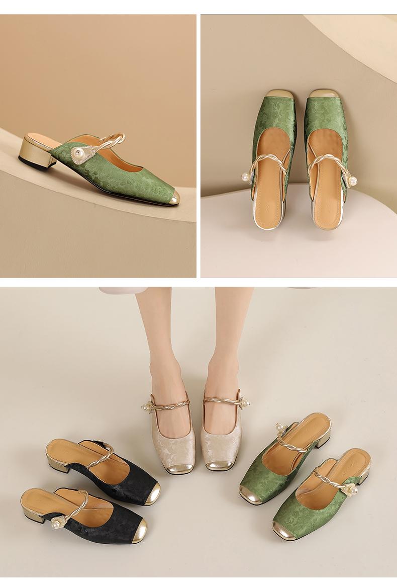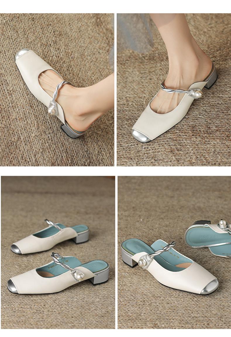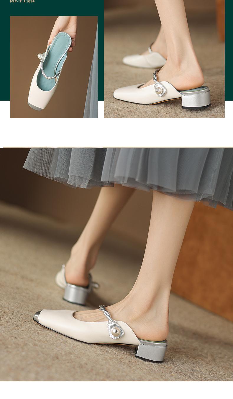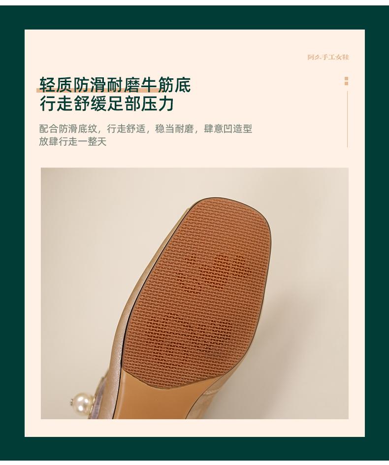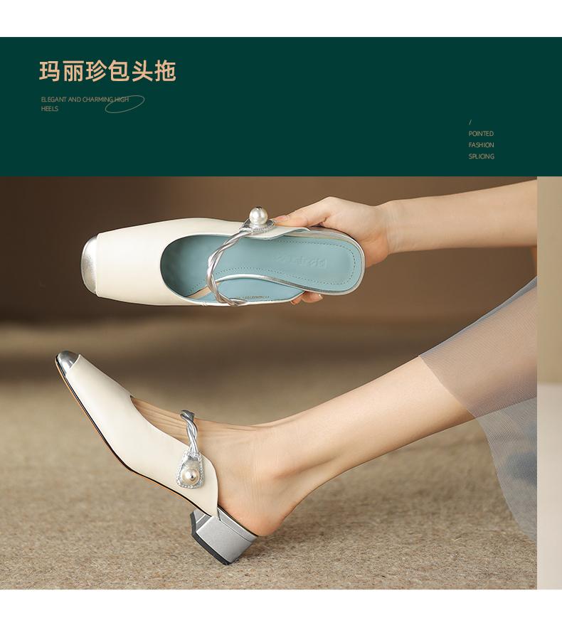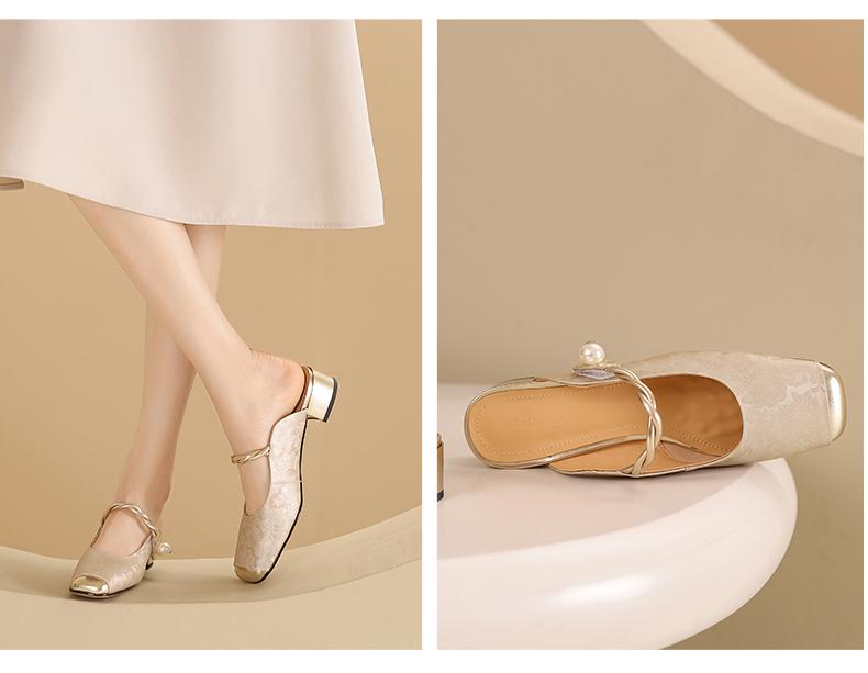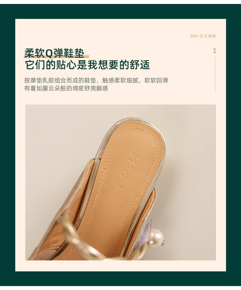 阿么手工女鞋新中式国风真皮穆勒拖2025新款夏季外穿粗跟包头拖3CM