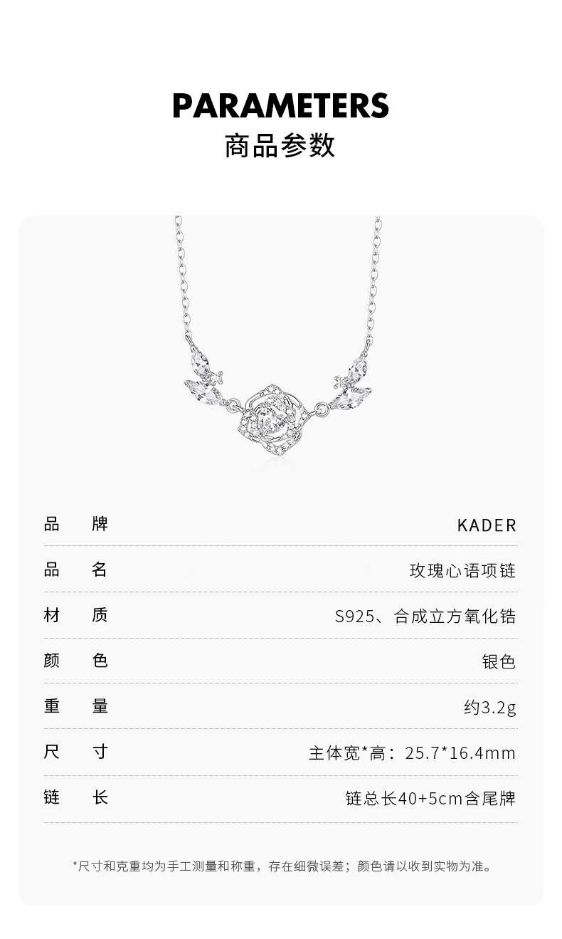 卡蒂罗/KADER 玫瑰心语项链 在逃公主浪漫童话风满钻优雅可调节拼接链 夏日氛围感穿搭仙气锁骨链 925银 七夕礼物
